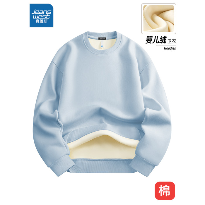 真維斯圓領衛衣男款冬季寬松大碼長袖外套情侶款重磅上衣加絨加厚
