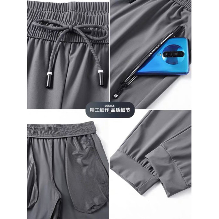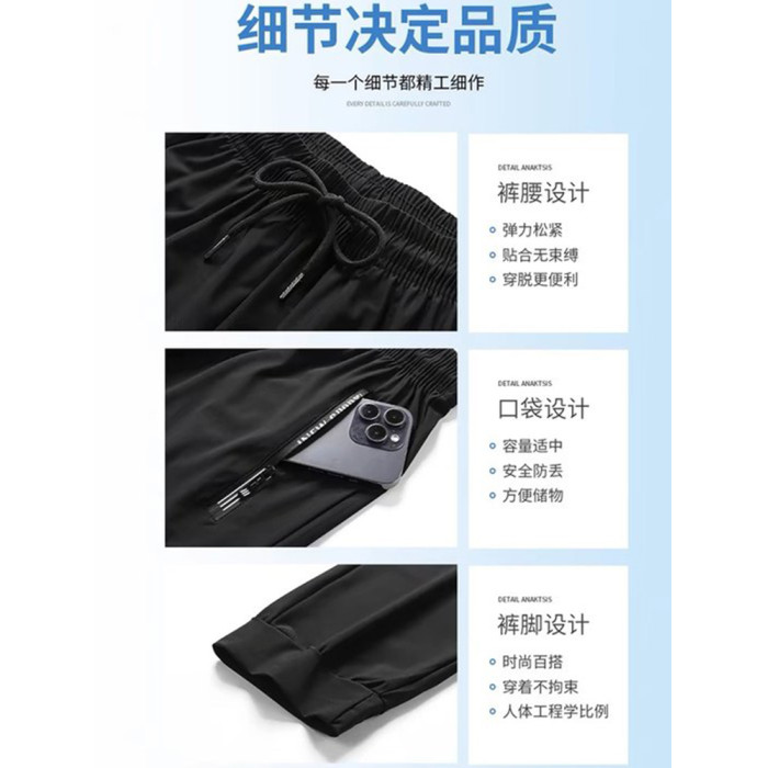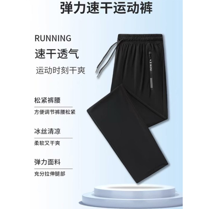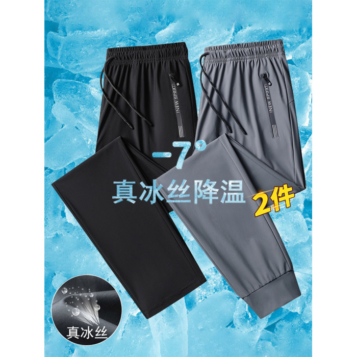 冰絲衛褲男夏季薄款男生運動褲夏天潮牌寬松休閒褲男士束腳褲褲子