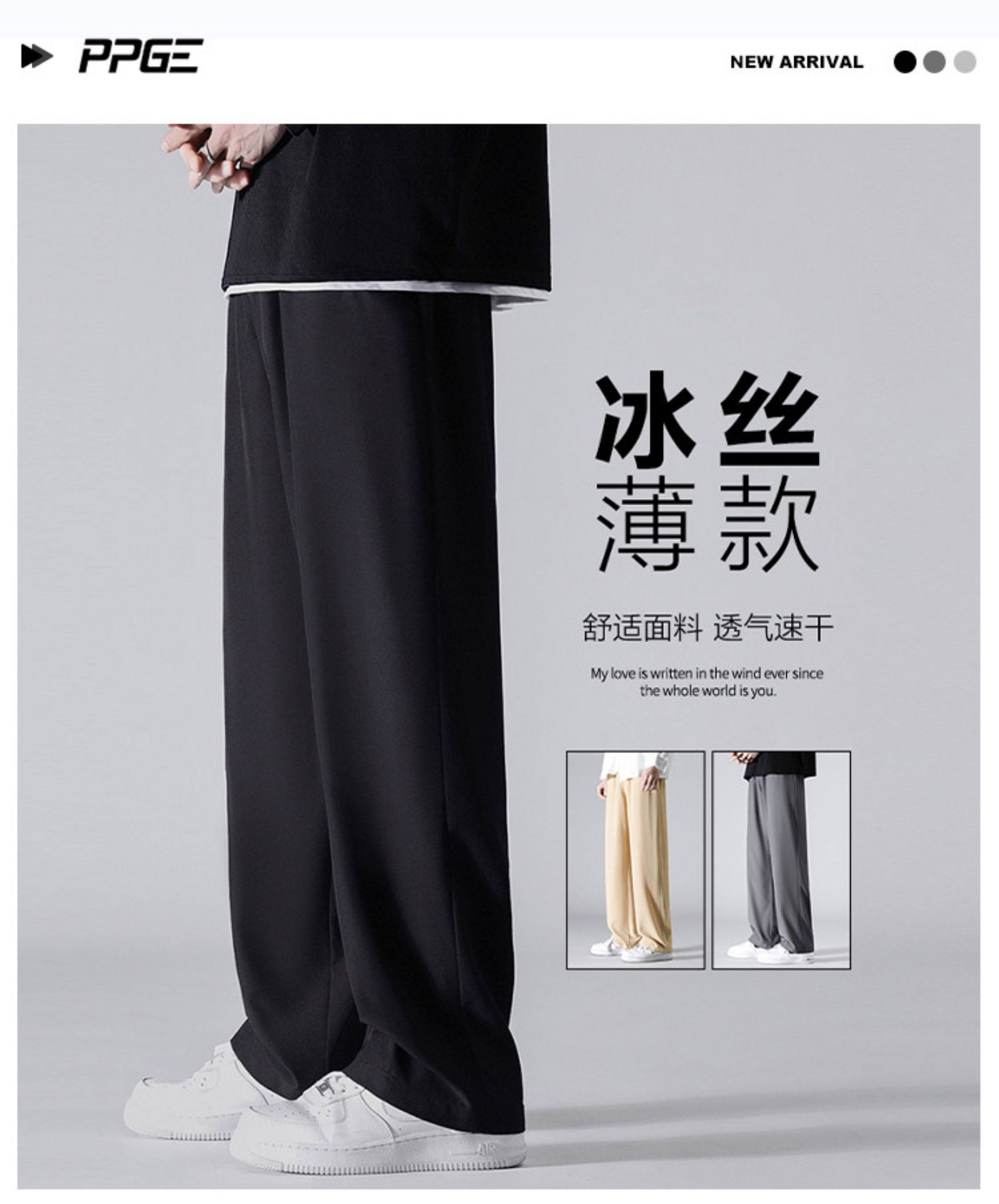 胖胖哥春季垂感冰絲褲子男士新款潮牌寬鬆大碼高級感直筒薄款西褲