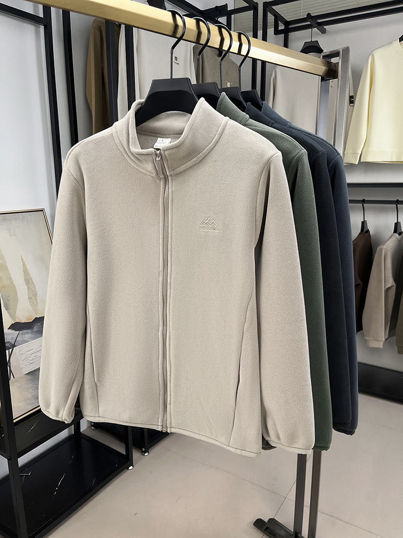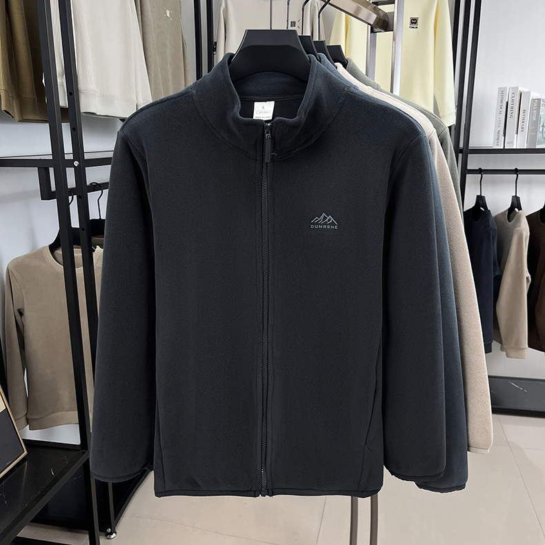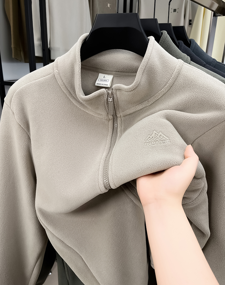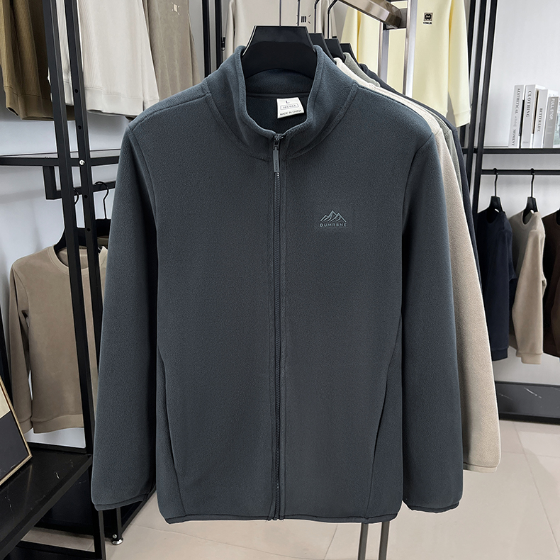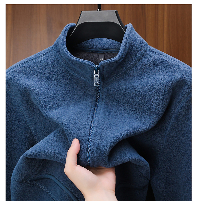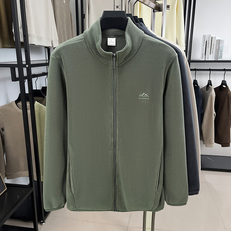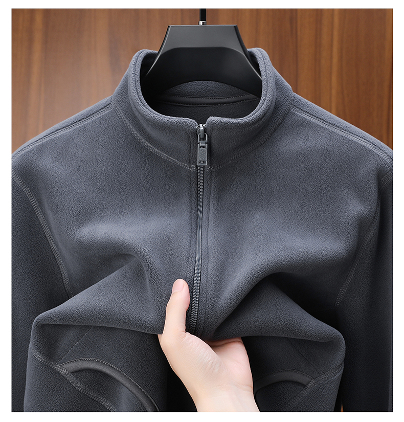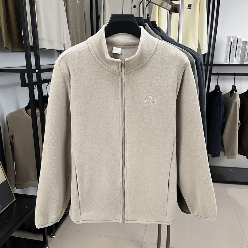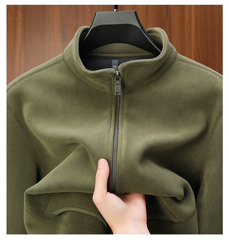 奧粒絨衛衣男立領拉鍊開衫外套秋冬季男裝加厚保暖搖粒絨純色夾克