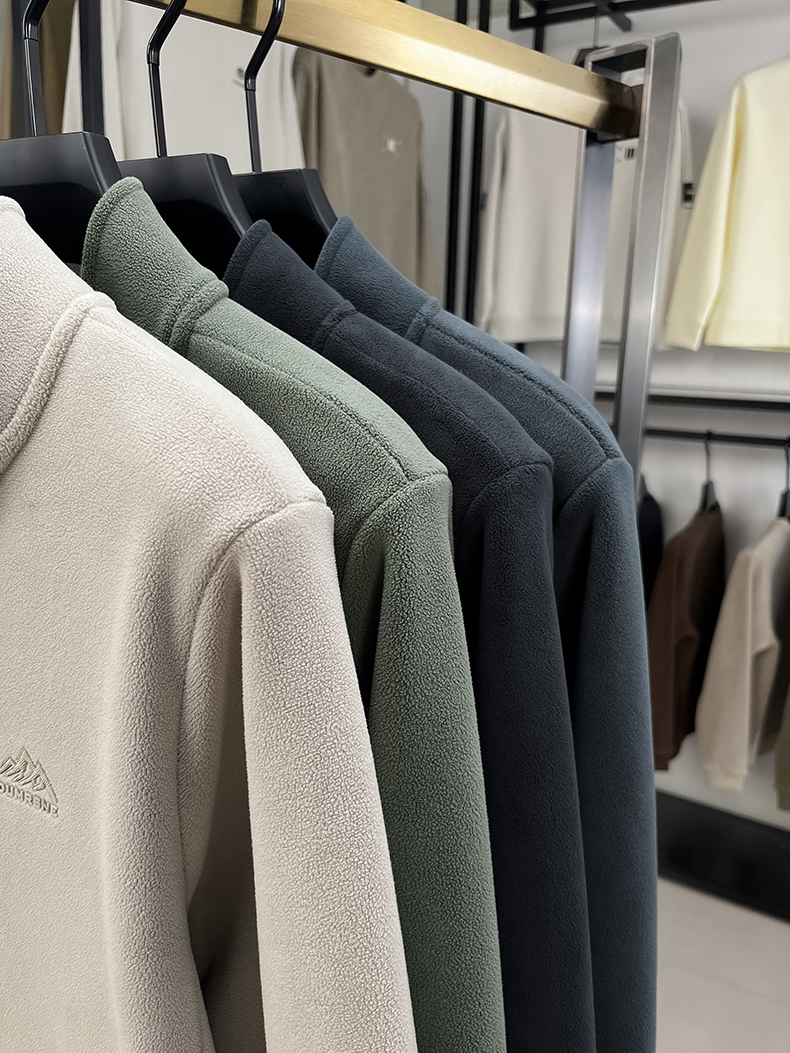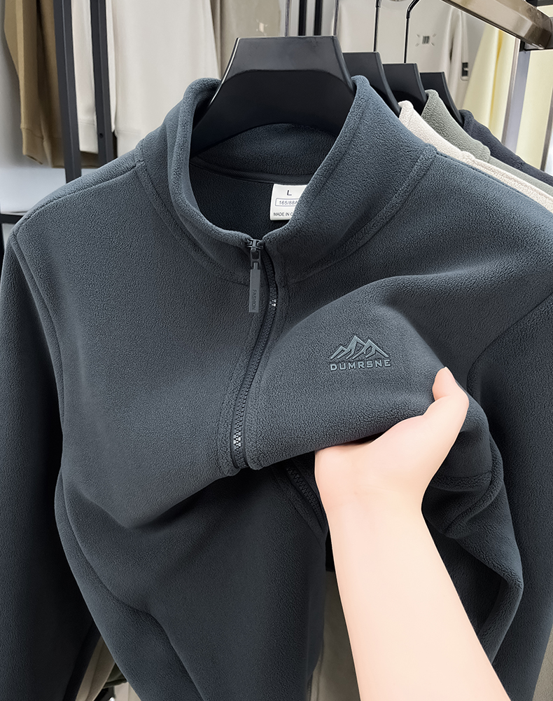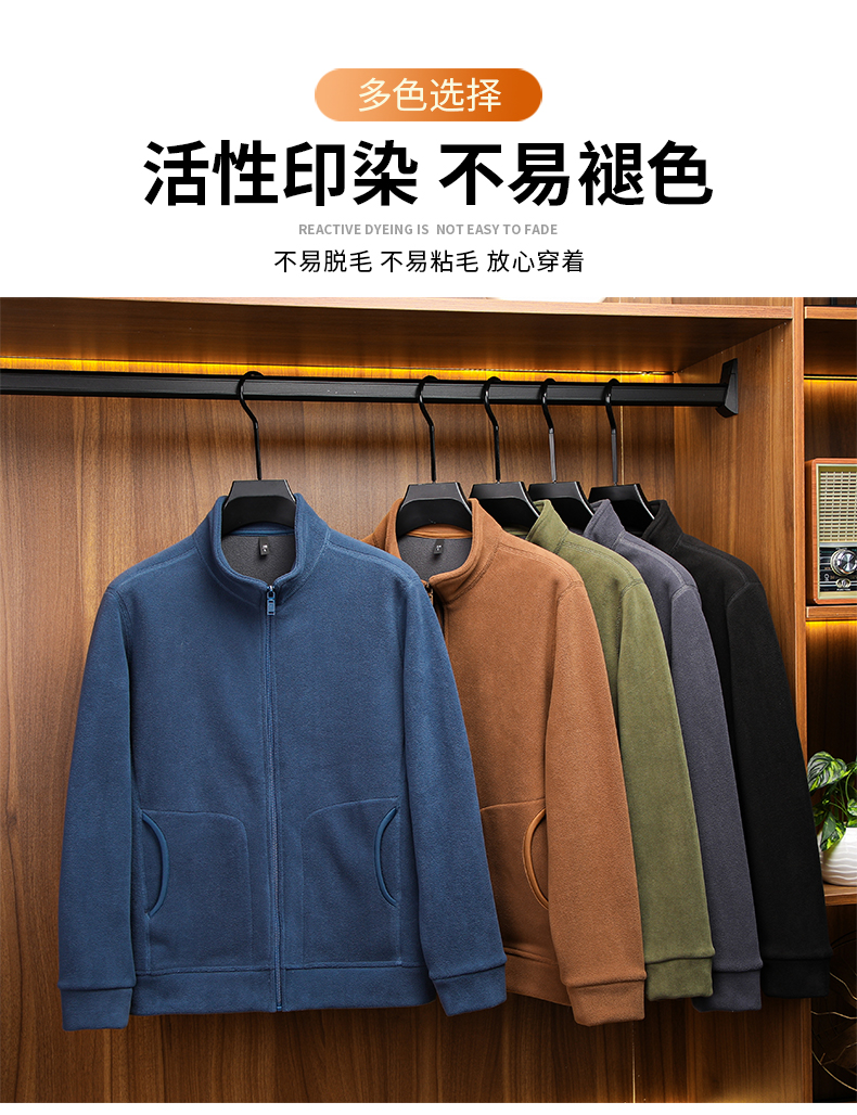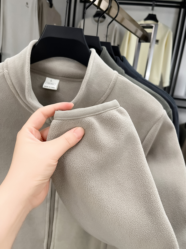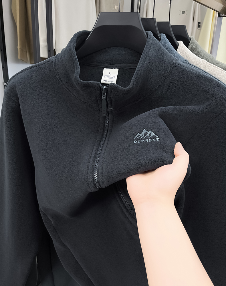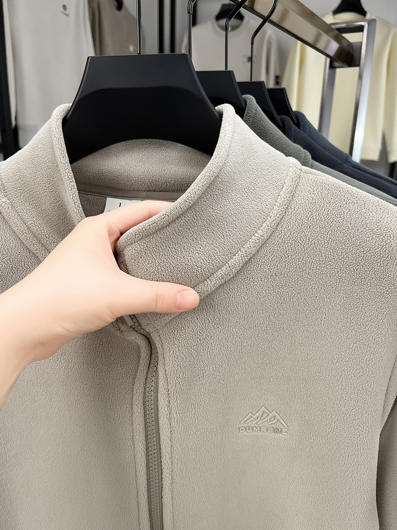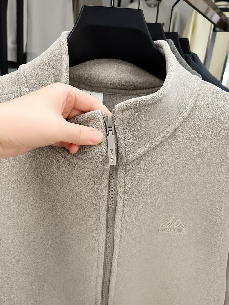 奧粒絨衛衣男立領拉鍊開衫外套秋冬季男裝加厚保暖搖粒絨純色夾克