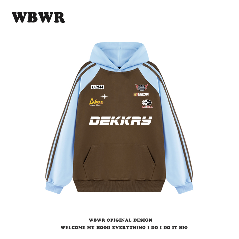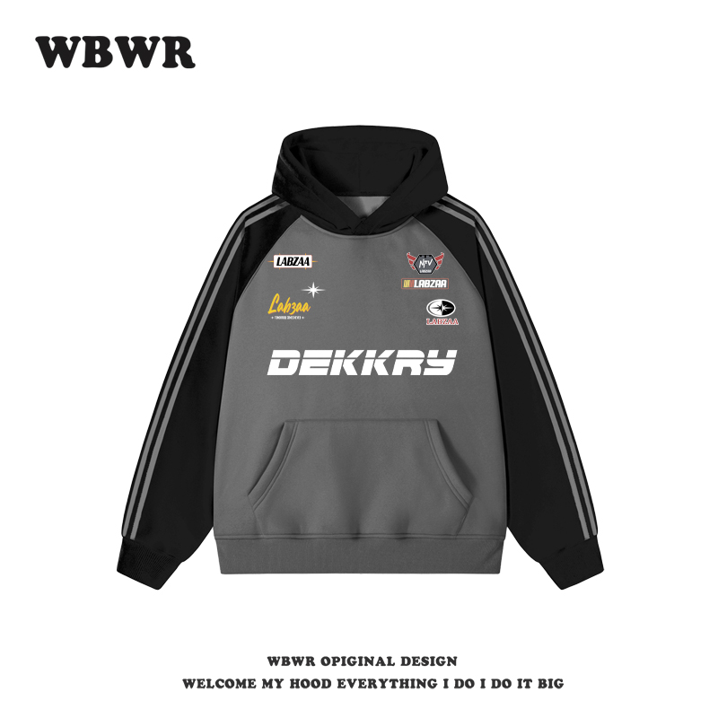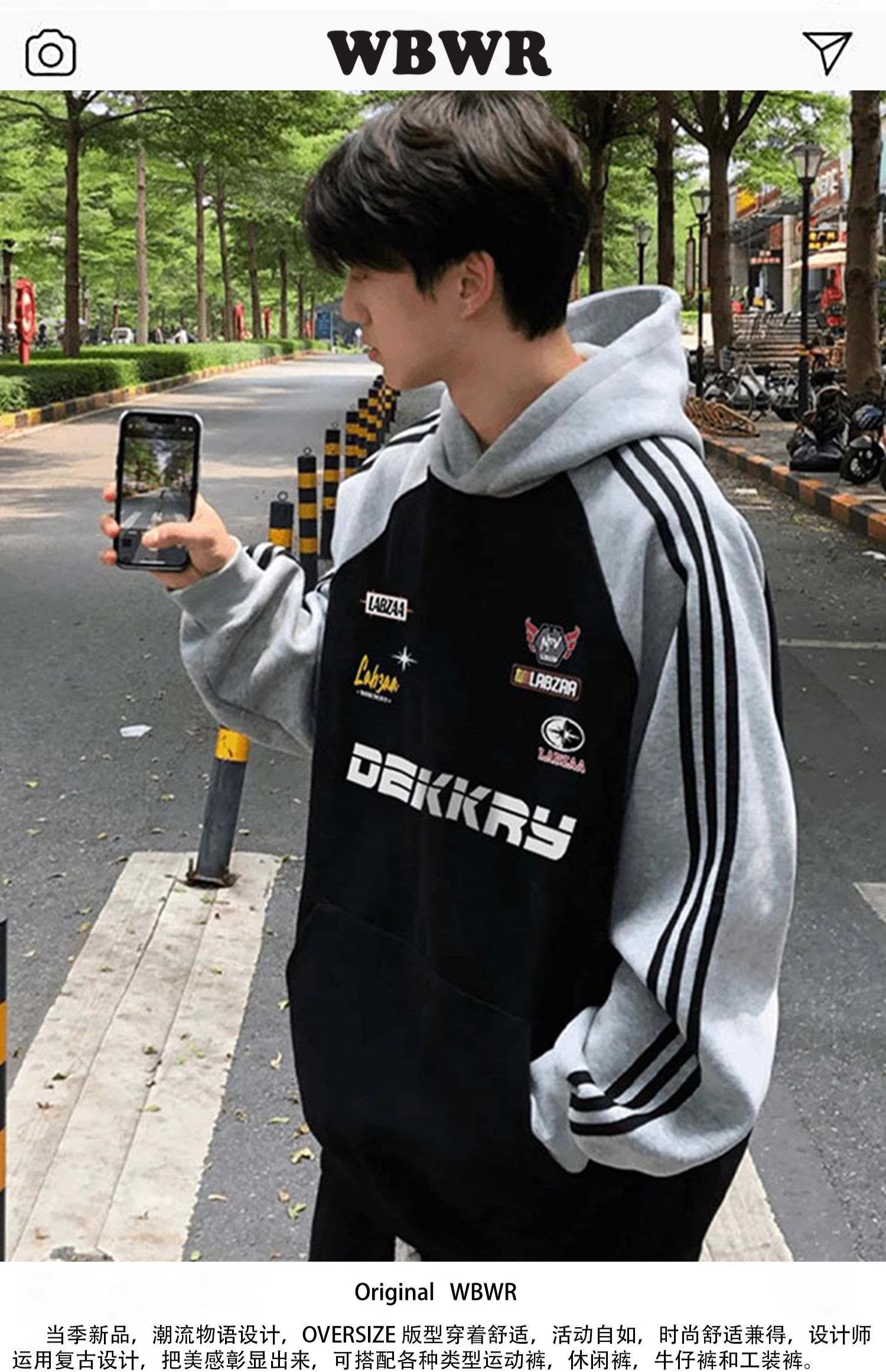 美式vibe高街字母印花連帽衛衣男秋季潮牌寬松插肩三條杠外套上衣