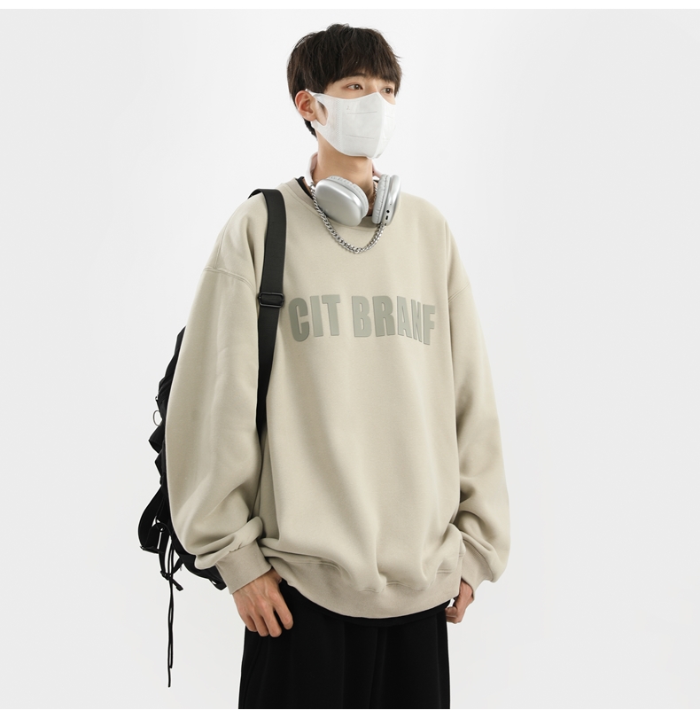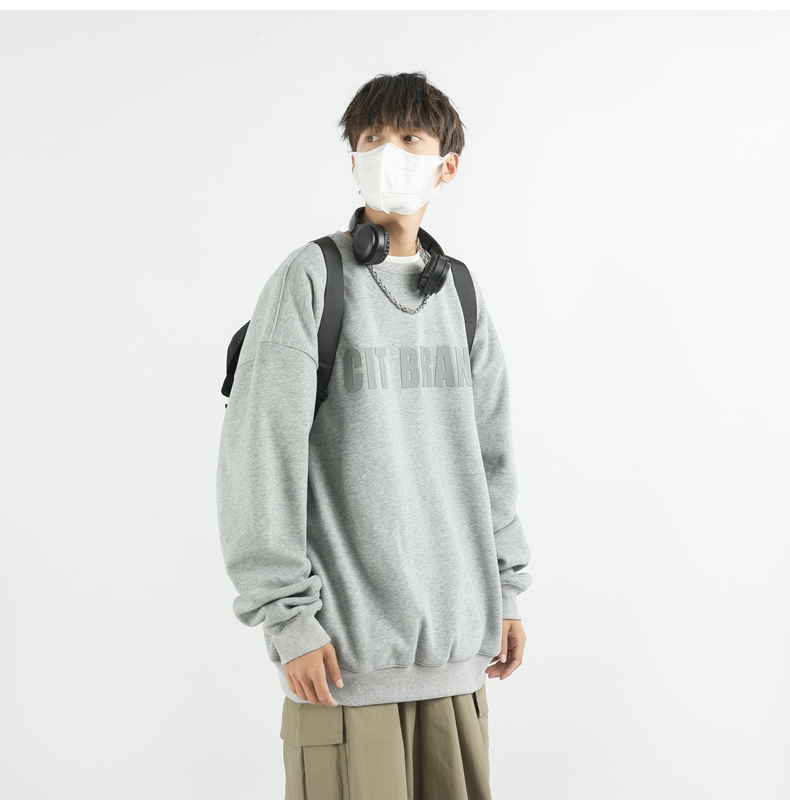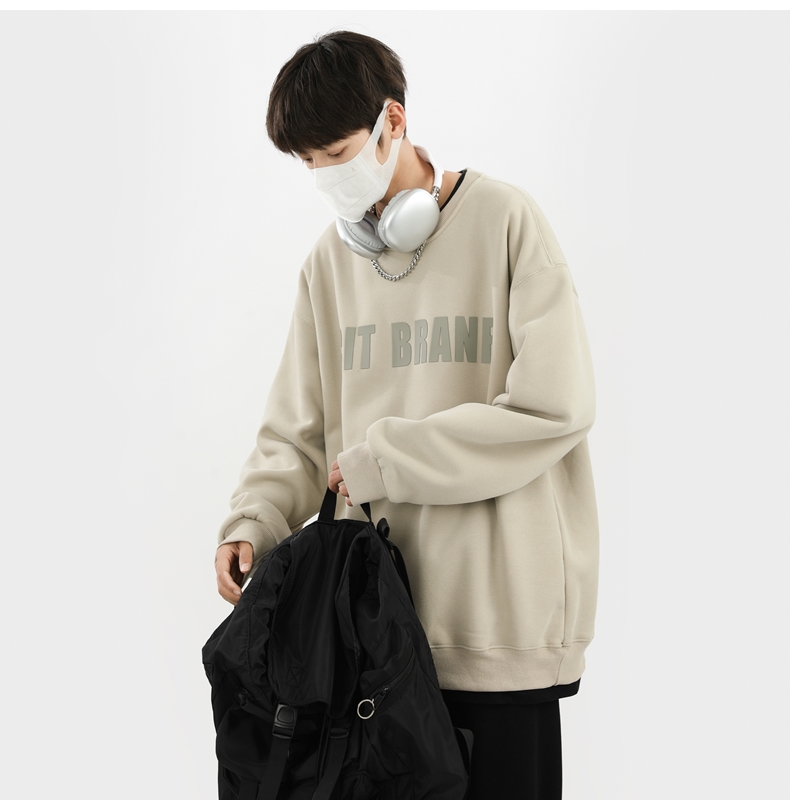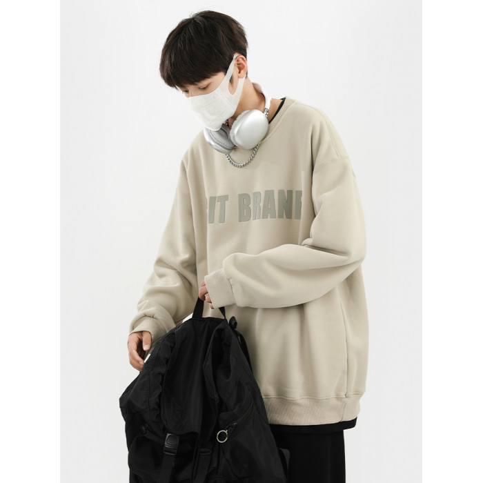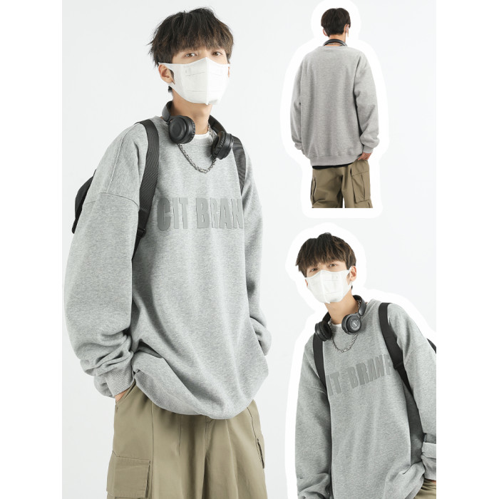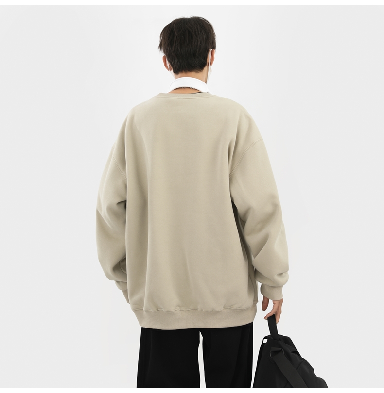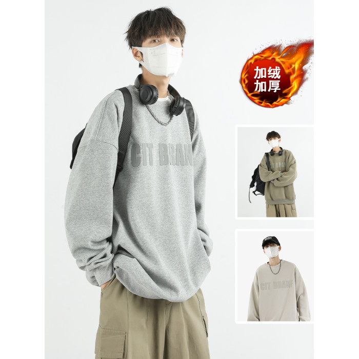 圓領衛衣男生寬松秋冬款無帽上衣潮牌重磅內搭套頭衫外套加絨加厚