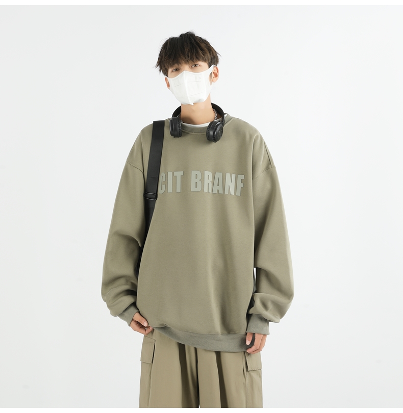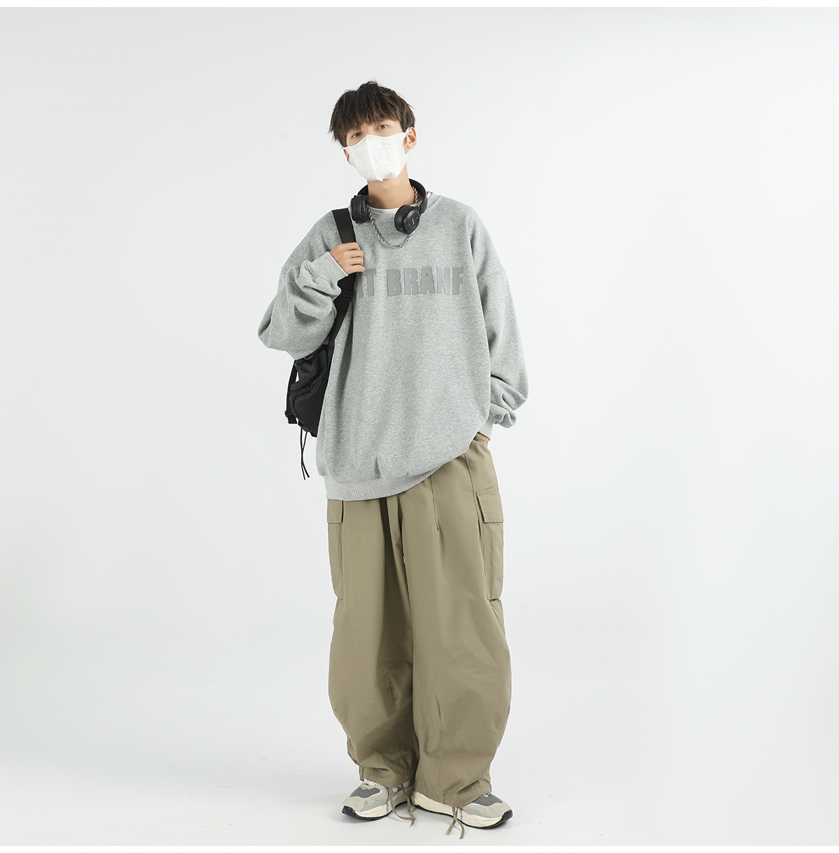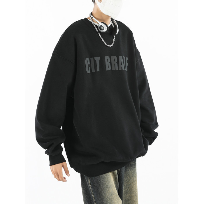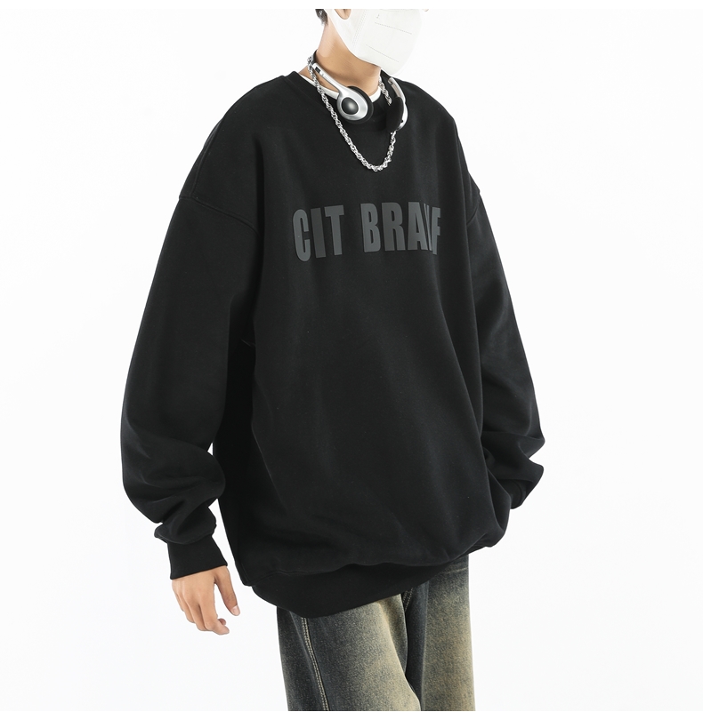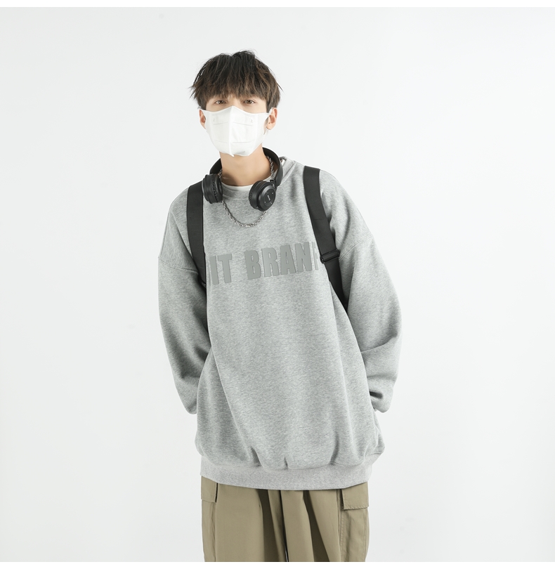 圓領衛衣男生寬松秋冬款無帽上衣潮牌重磅內搭套頭衫外套加絨加厚