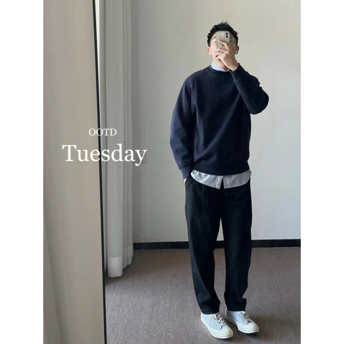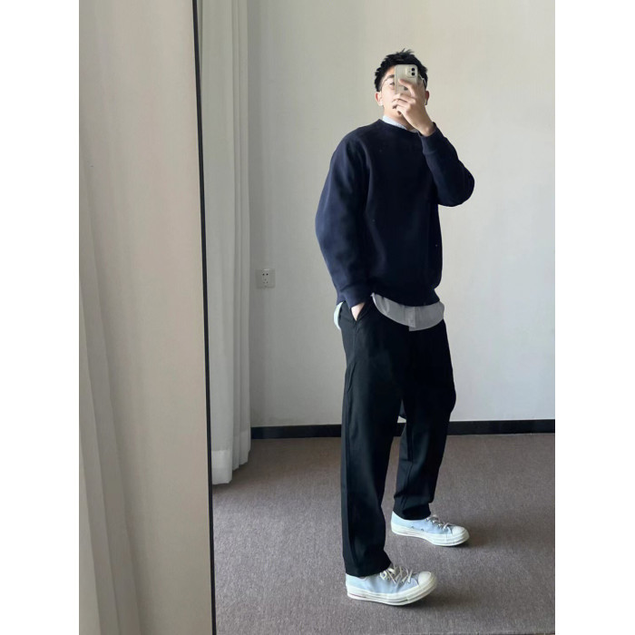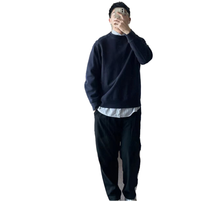 美式高街oversize純色簡約圓領衛衣男秋冬季重磅潮牌ins港味上衣