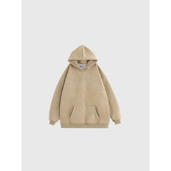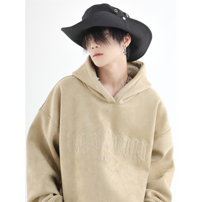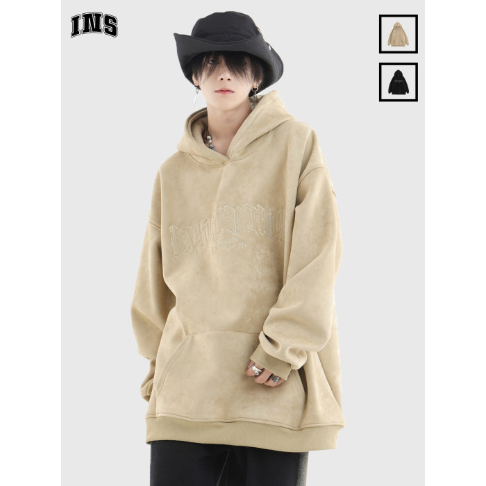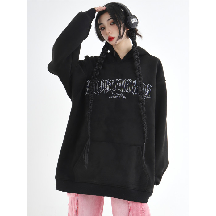 INSstudios 國潮牌情侶美式哥特字體刺綉麂皮絨加絨連帽衛衣