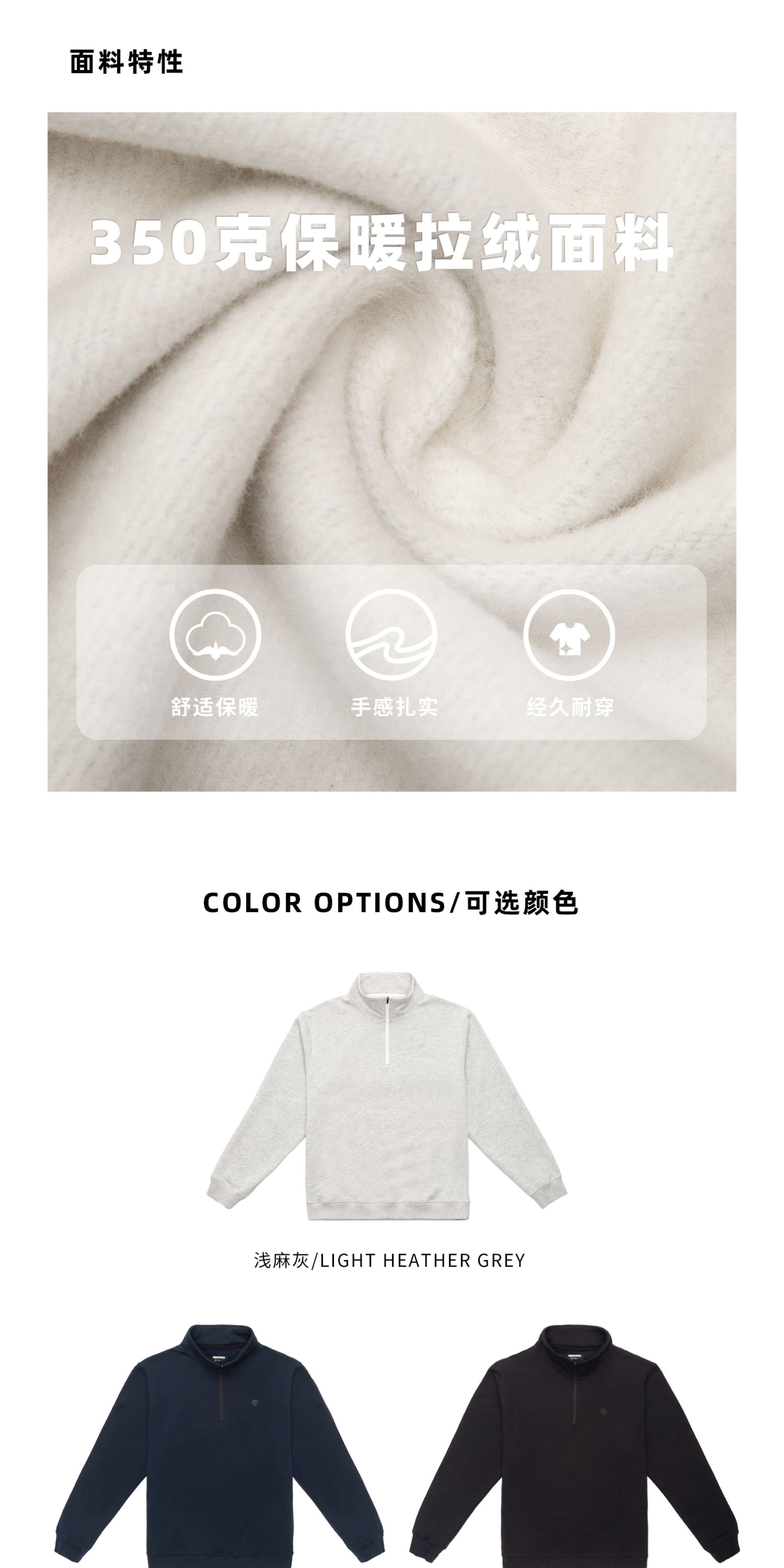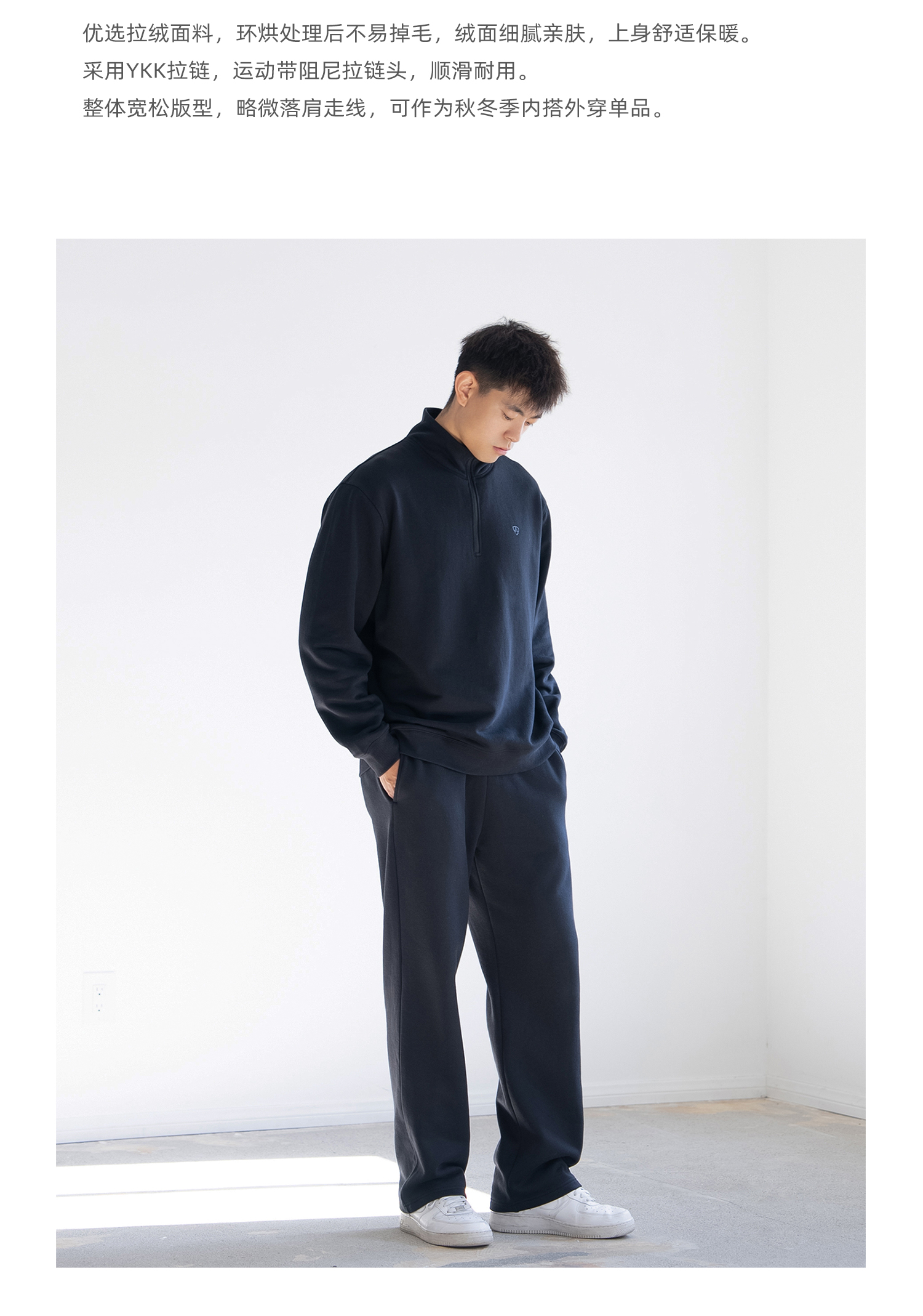 DRIOTOPIA秋冬新品拉絨半開衛衣男重磅運動休閒衛衣美式簡約長袖