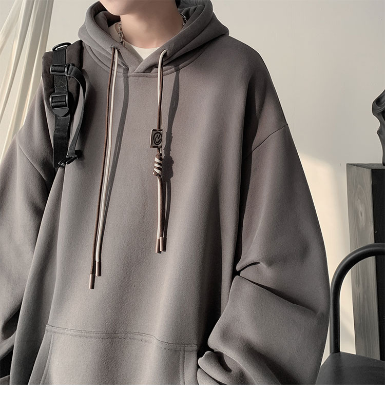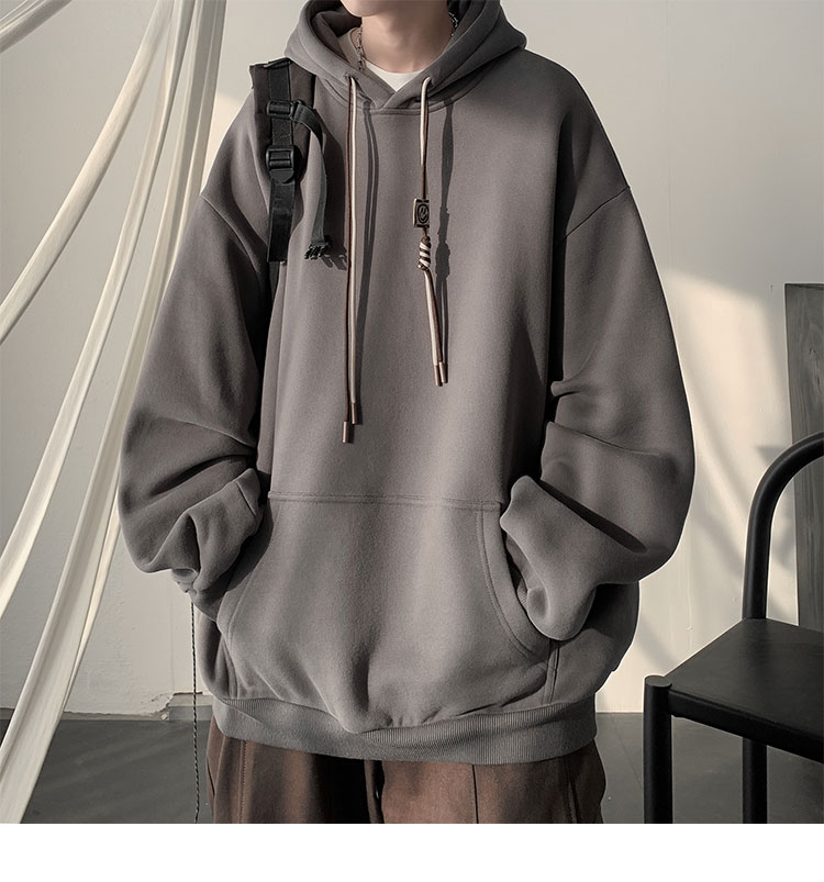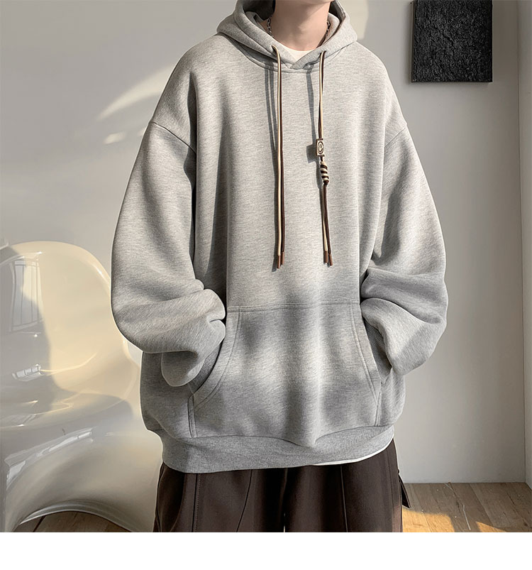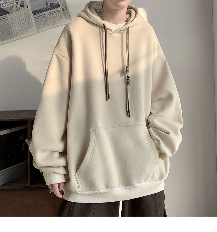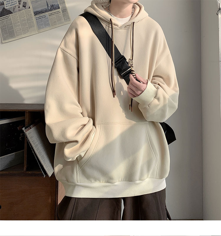 加絨衛衣男連帽2025春秋新款oversize美式寬松純色潮牌情侶外套男