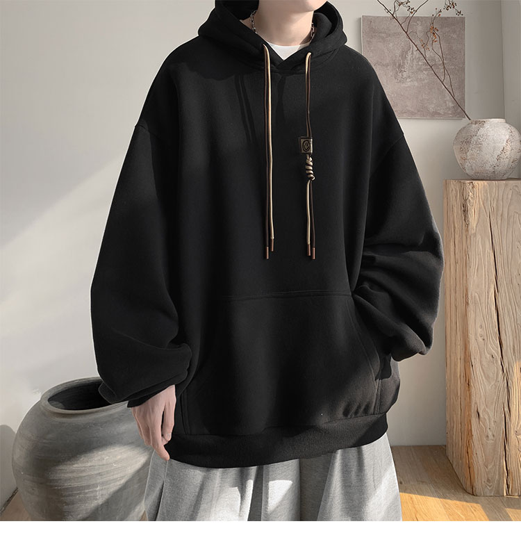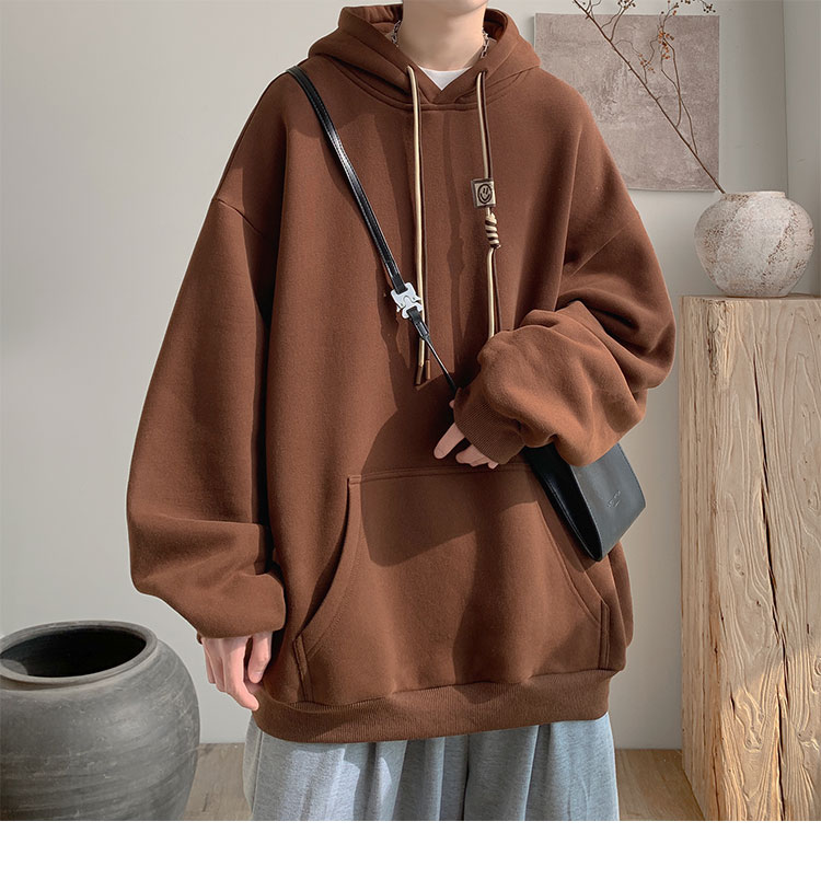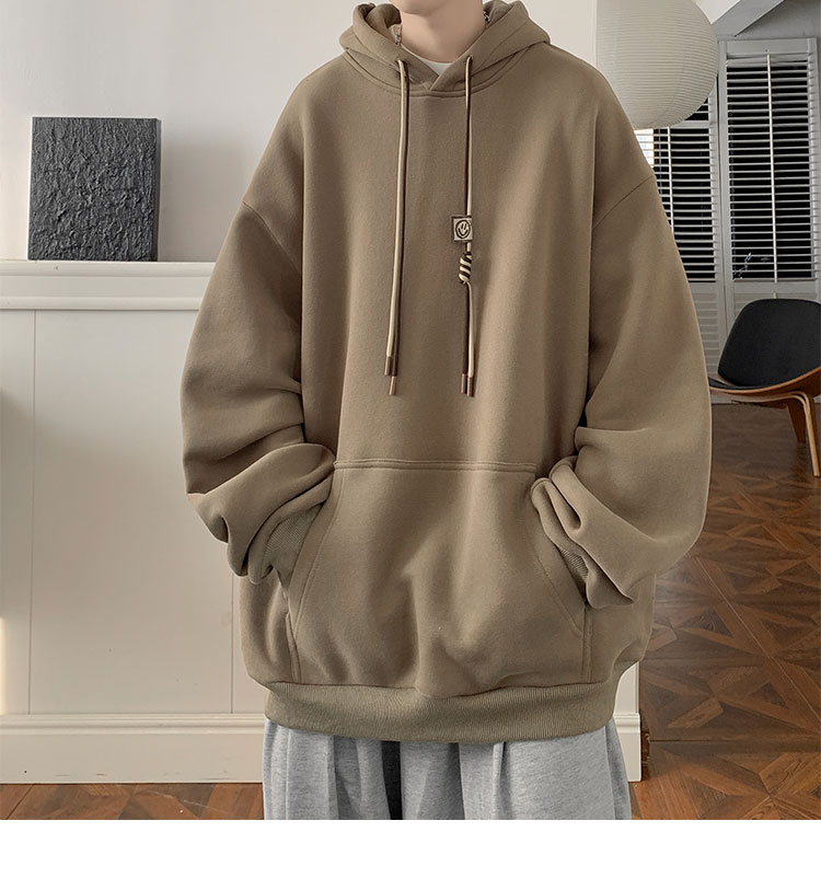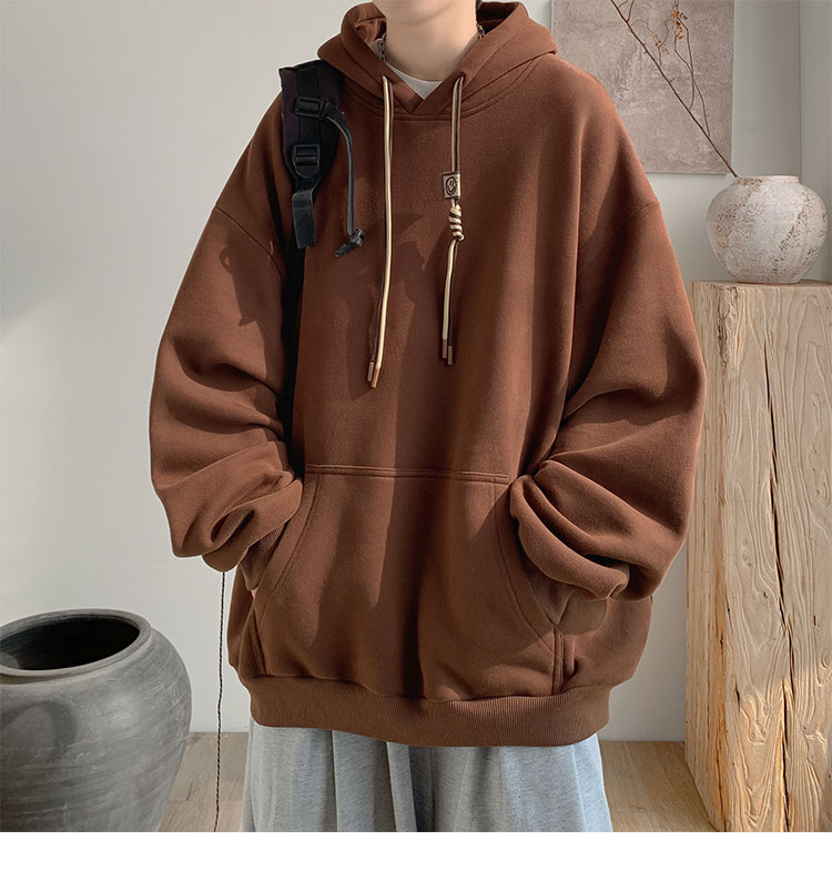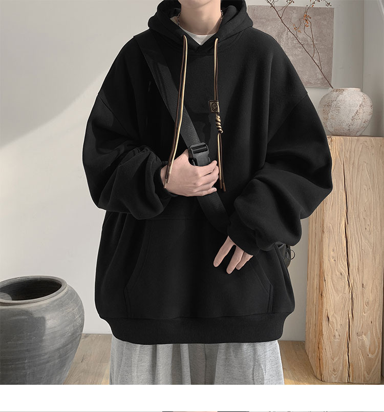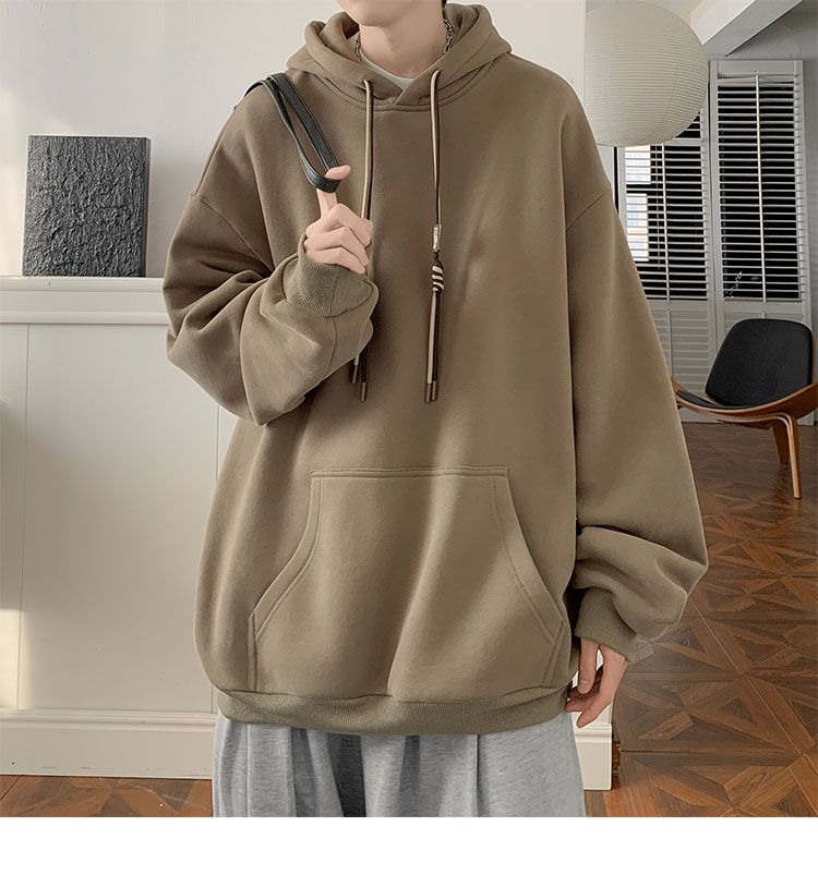 加絨衛衣男連帽2025春秋新款oversize美式寬松純色潮牌情侶外套男