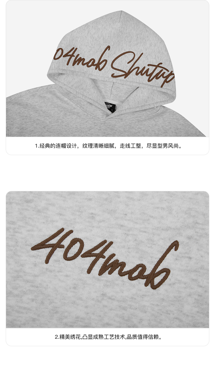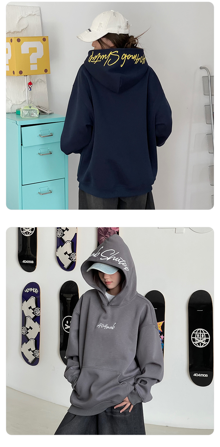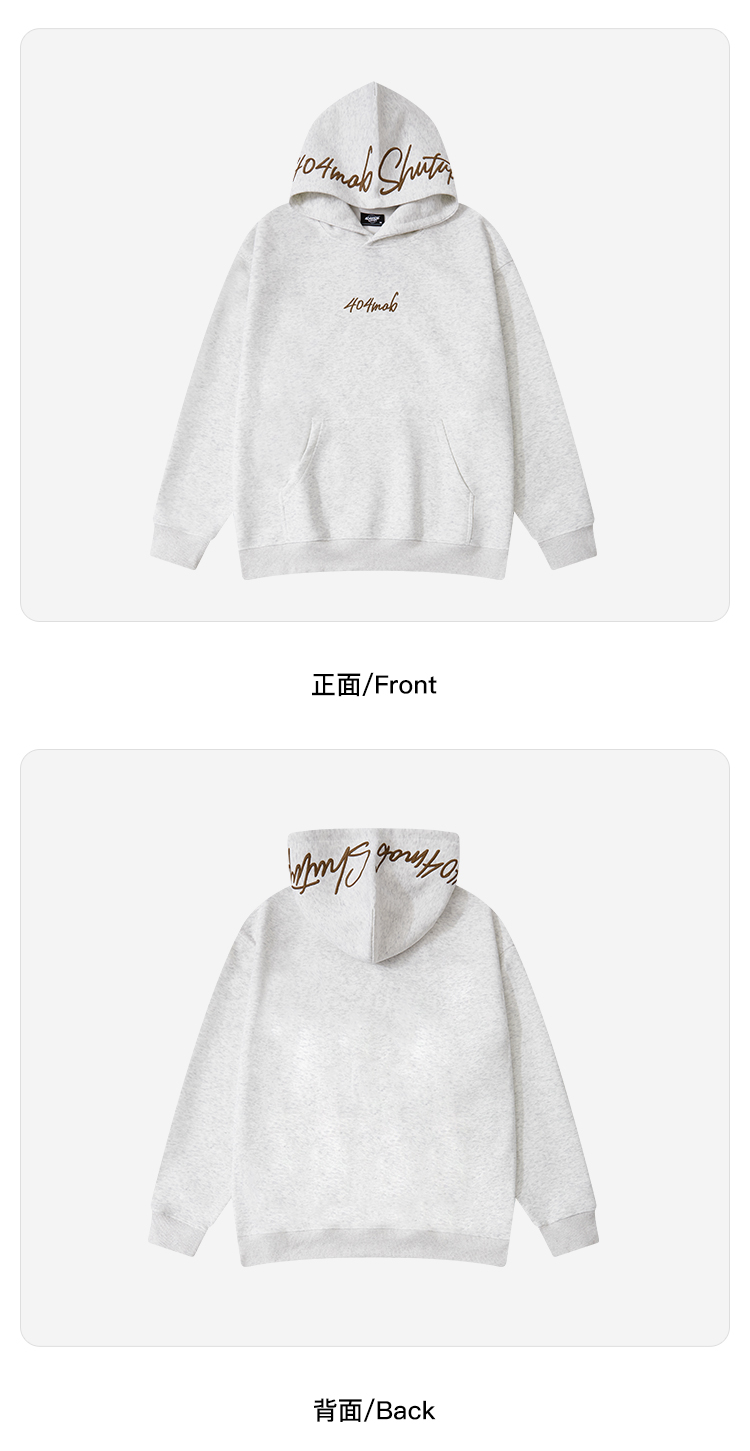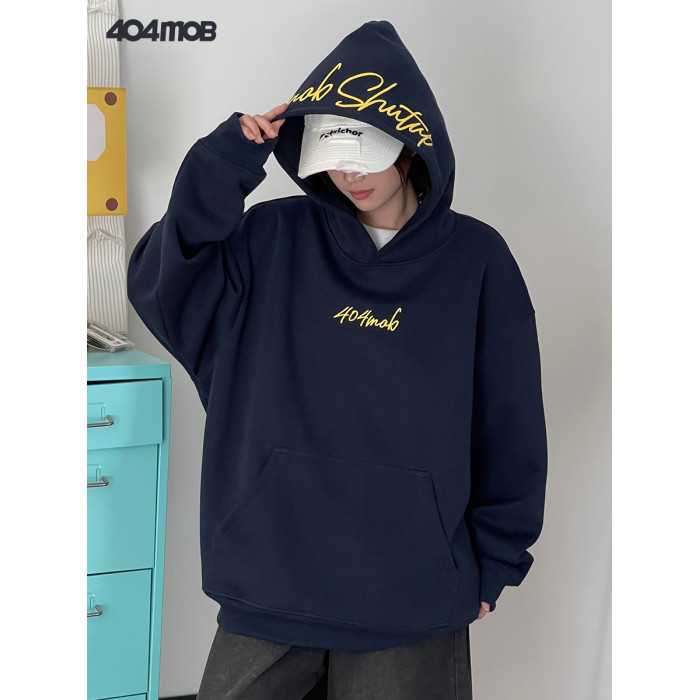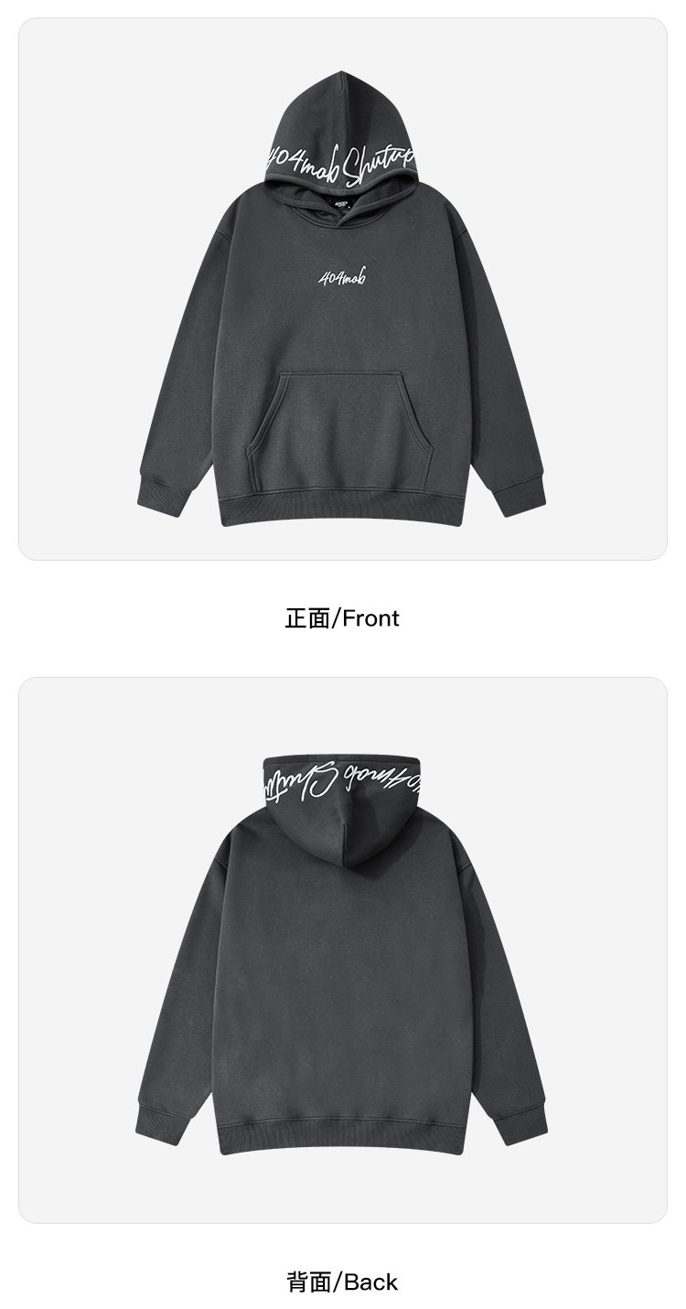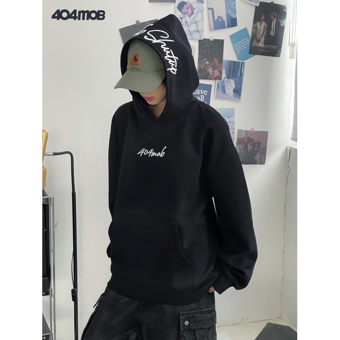 [黃子弘凡同款]404MOB美式復古花體字母刺綉連帽衛衣男情侶帽衫秋