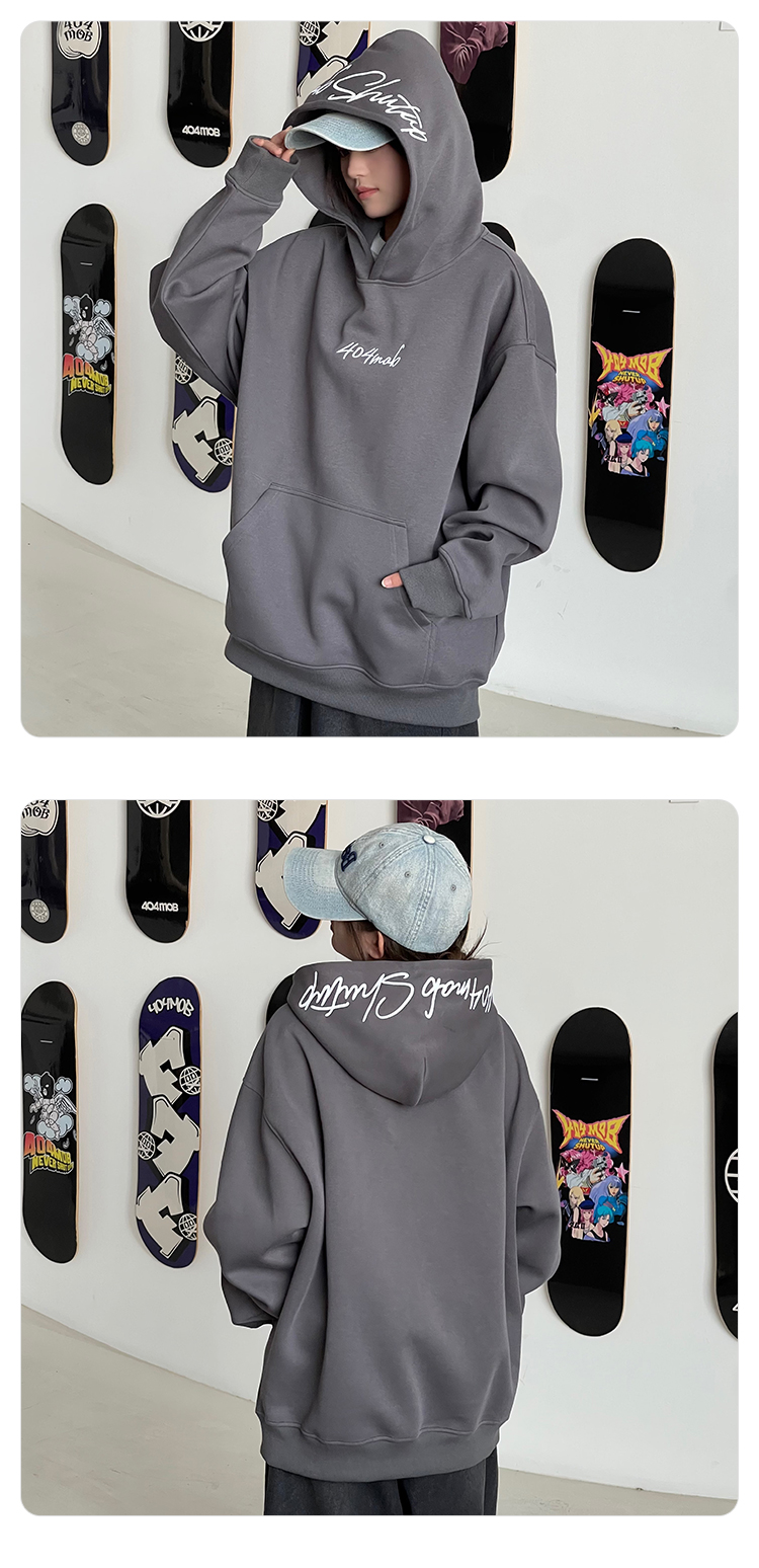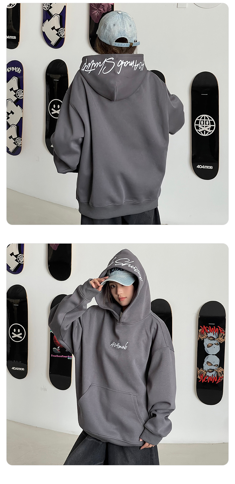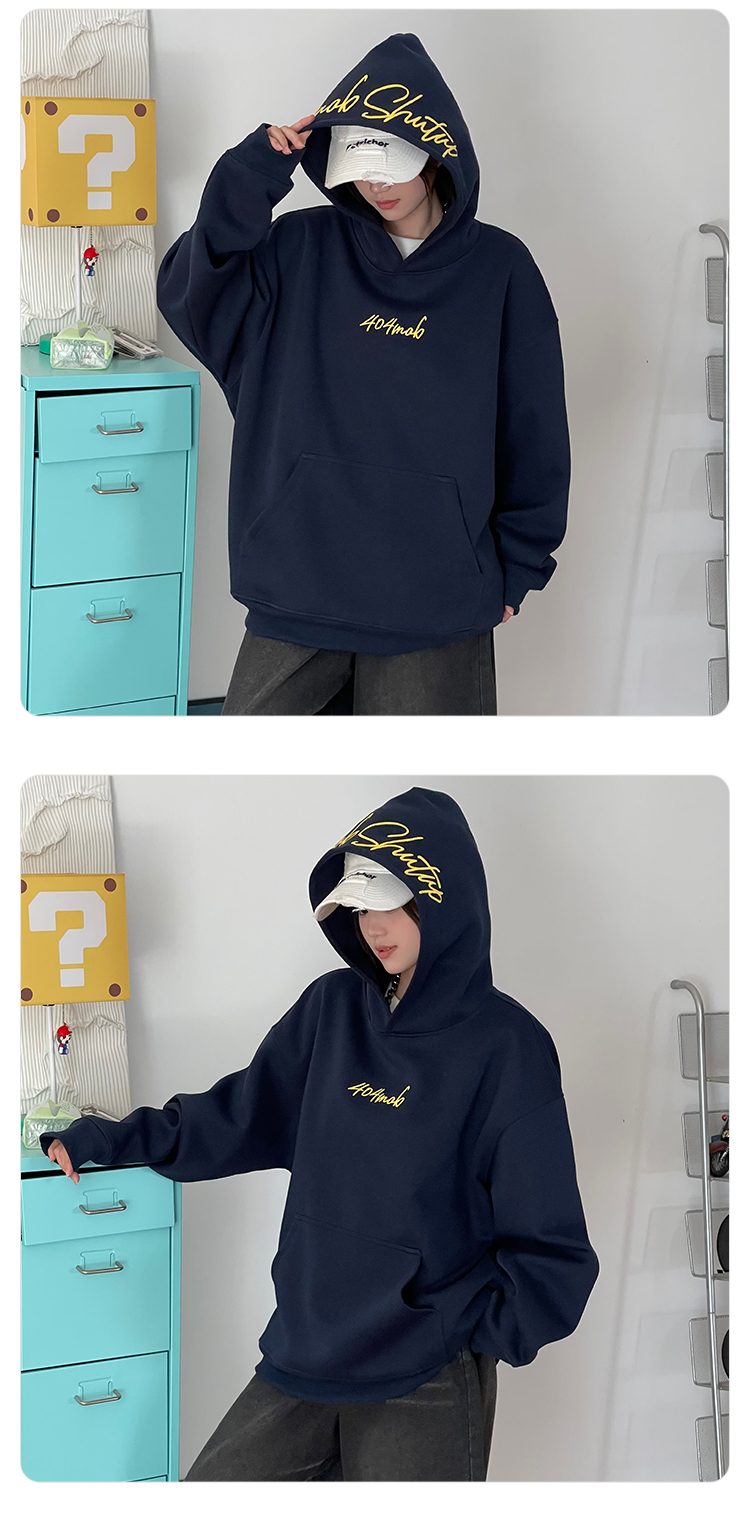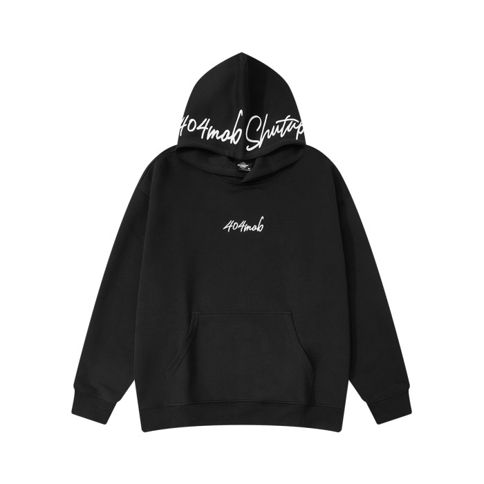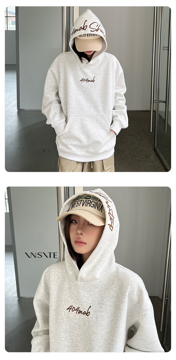 [黃子弘凡同款]404MOB美式復古花體字母刺綉連帽衛衣男情侶帽衫秋