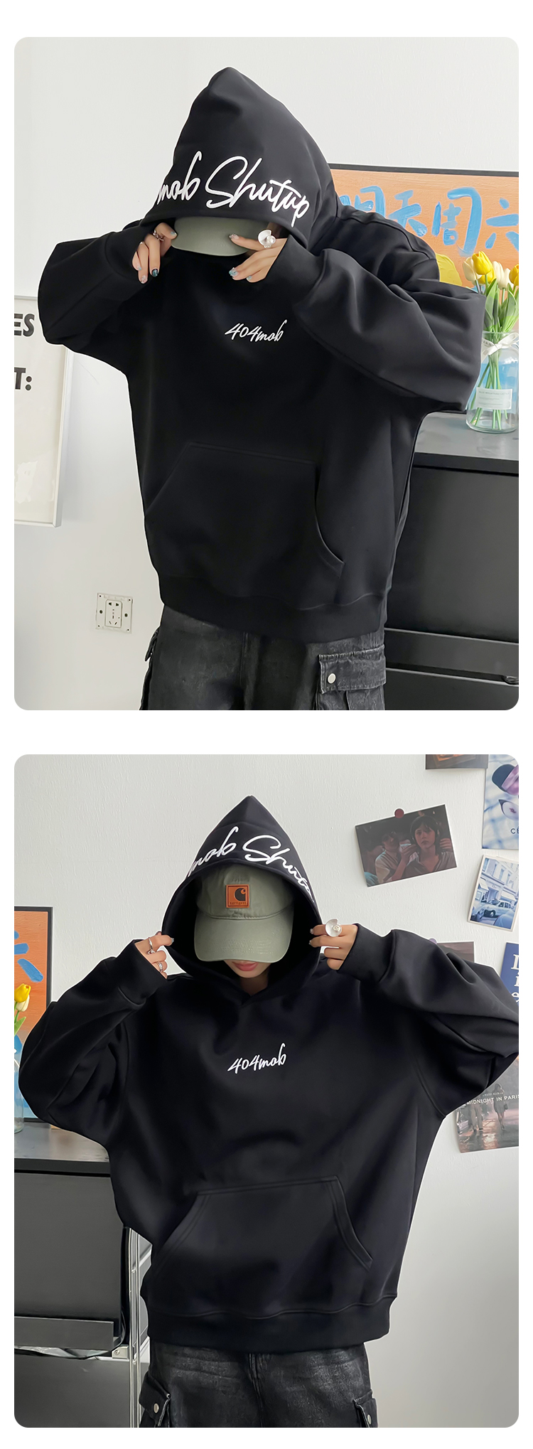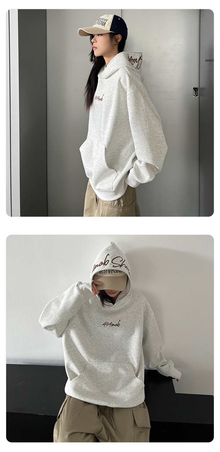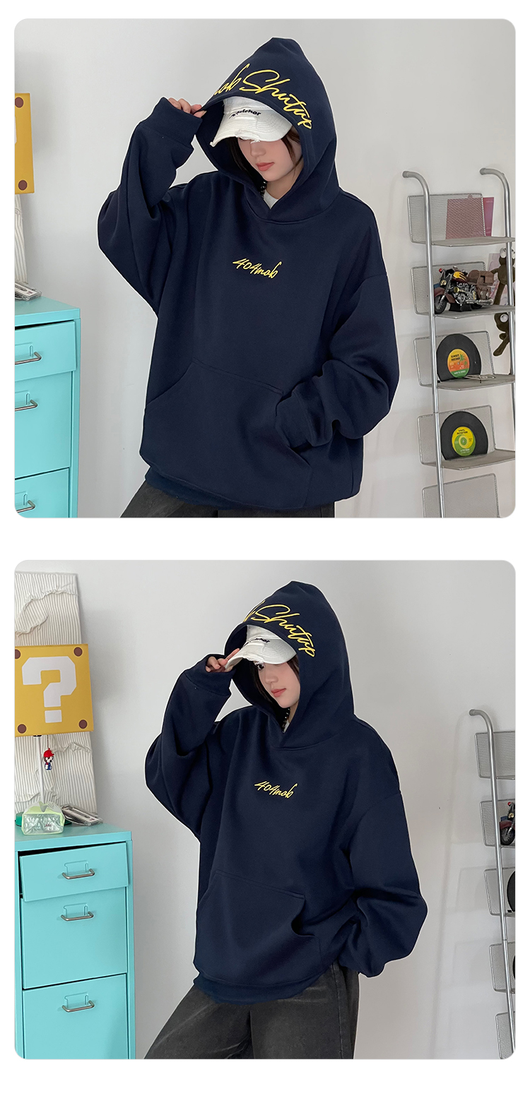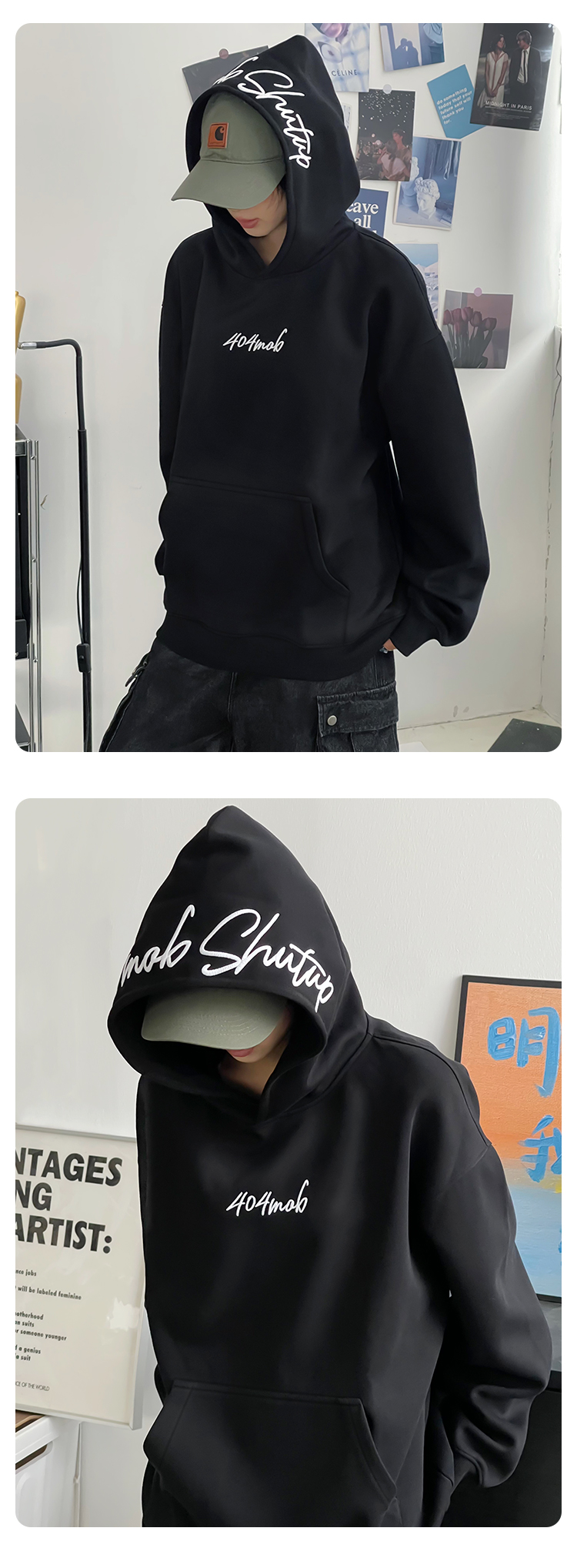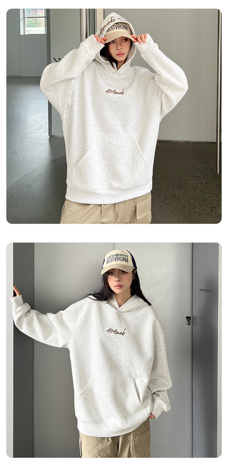 [黃子弘凡同款]404MOB美式復古花體字母刺綉連帽衛衣男情侶帽衫秋