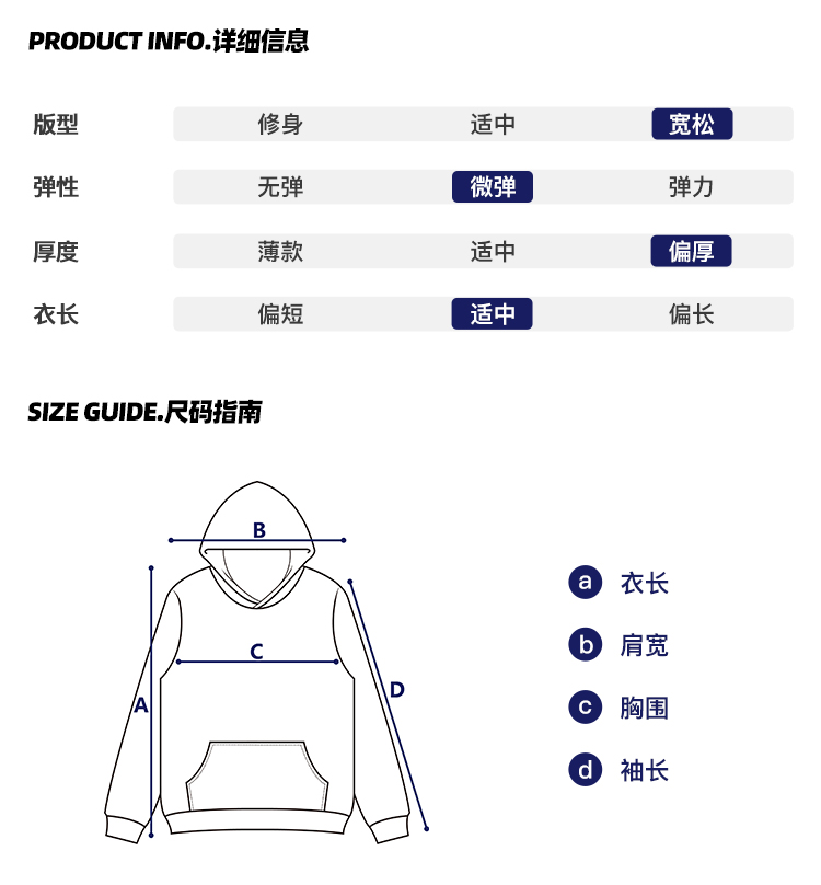 | 服裝口袋樣式 | 袋鼠兜 |