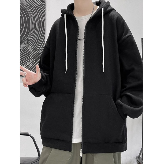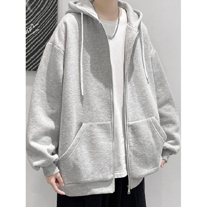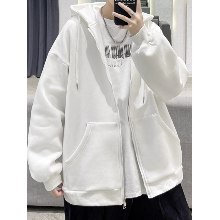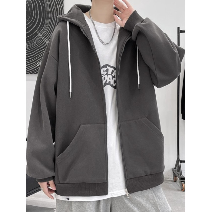 純棉重磅美式復古春秋開衫外套男加絨青少年休閒寬松連帽長袖衛衣
