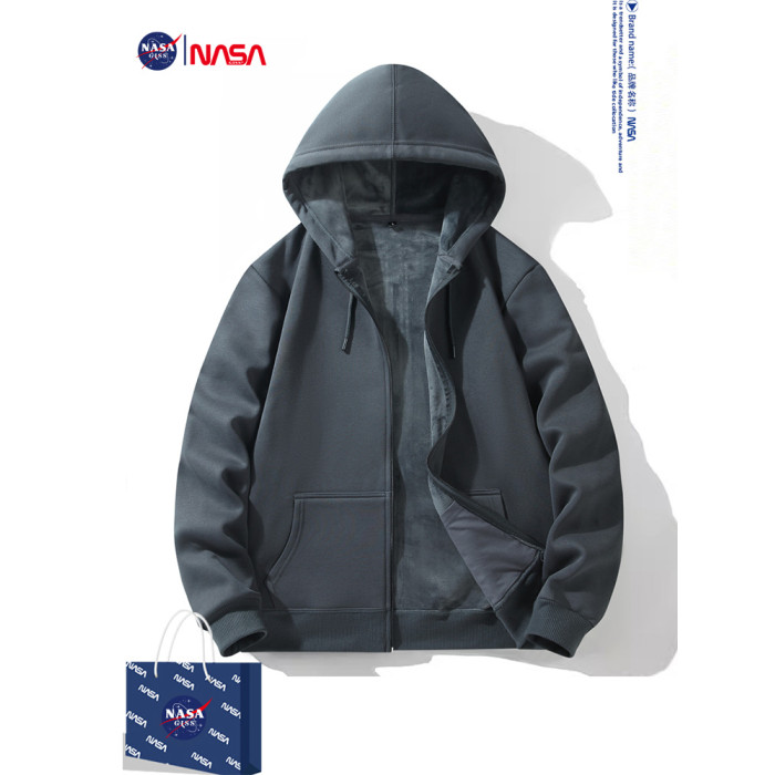 NASA聯名衛衣男美式重磅潮牌秋冬季加絨加厚休閒寬松男士開衫外套