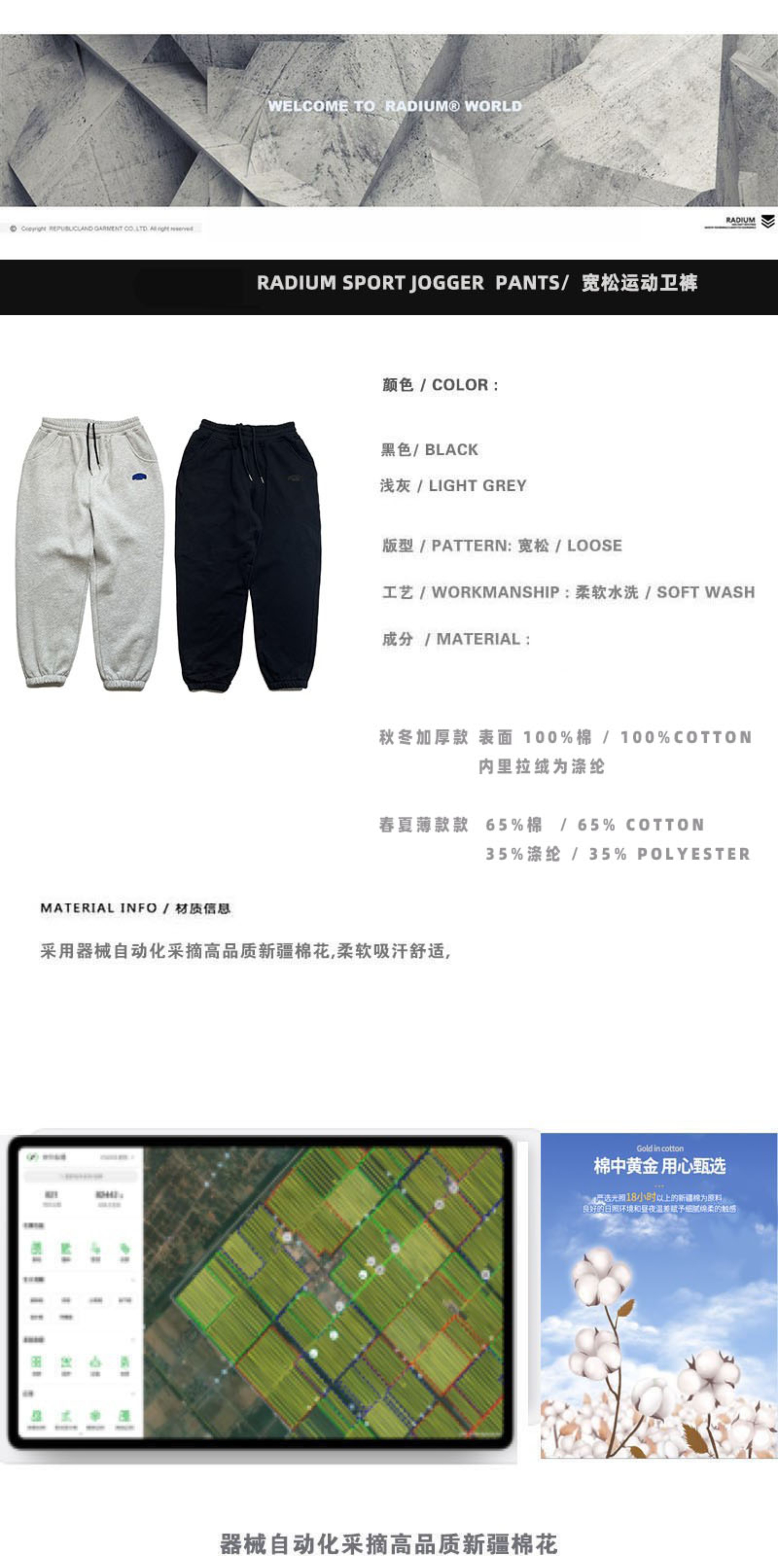 RADIUM 秋冬加厚寬松休閒日系潮牌多口袋工裝針織運動抽繩衛褲男