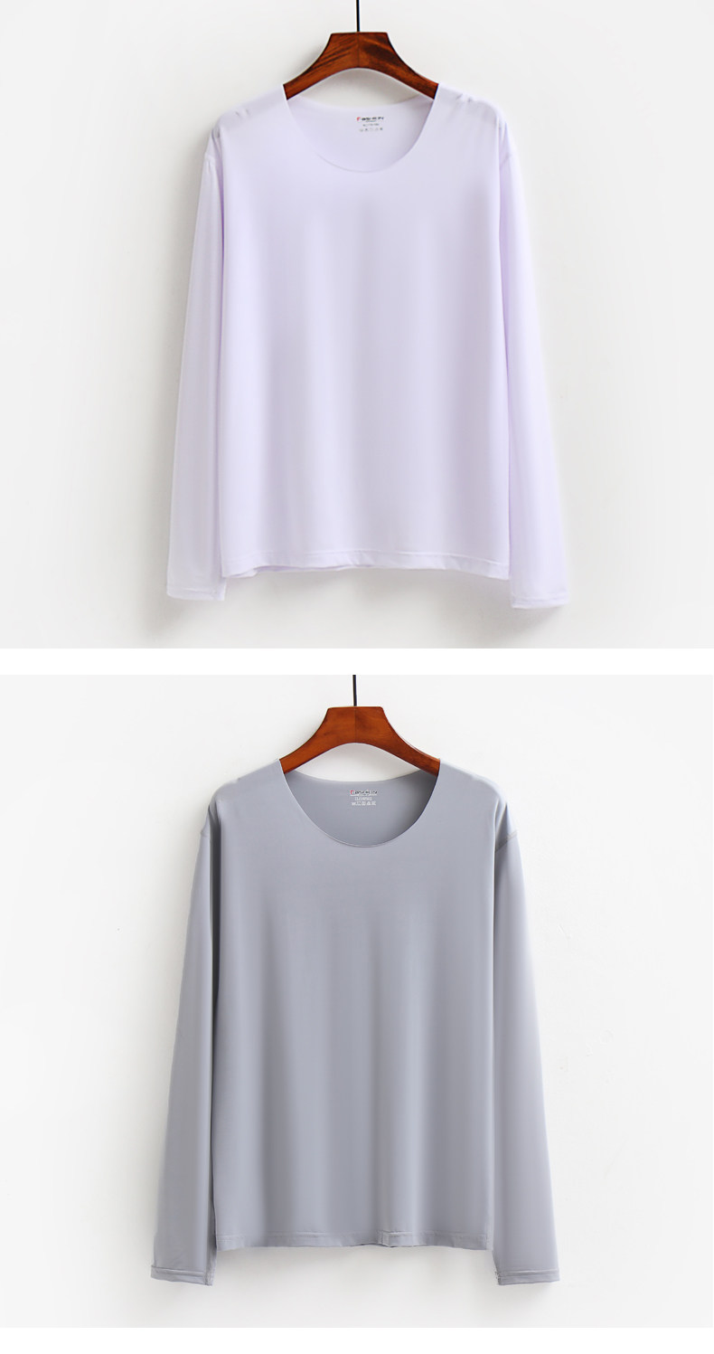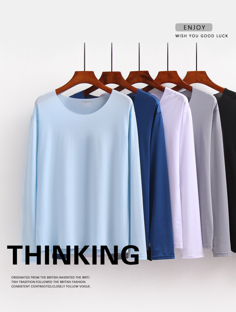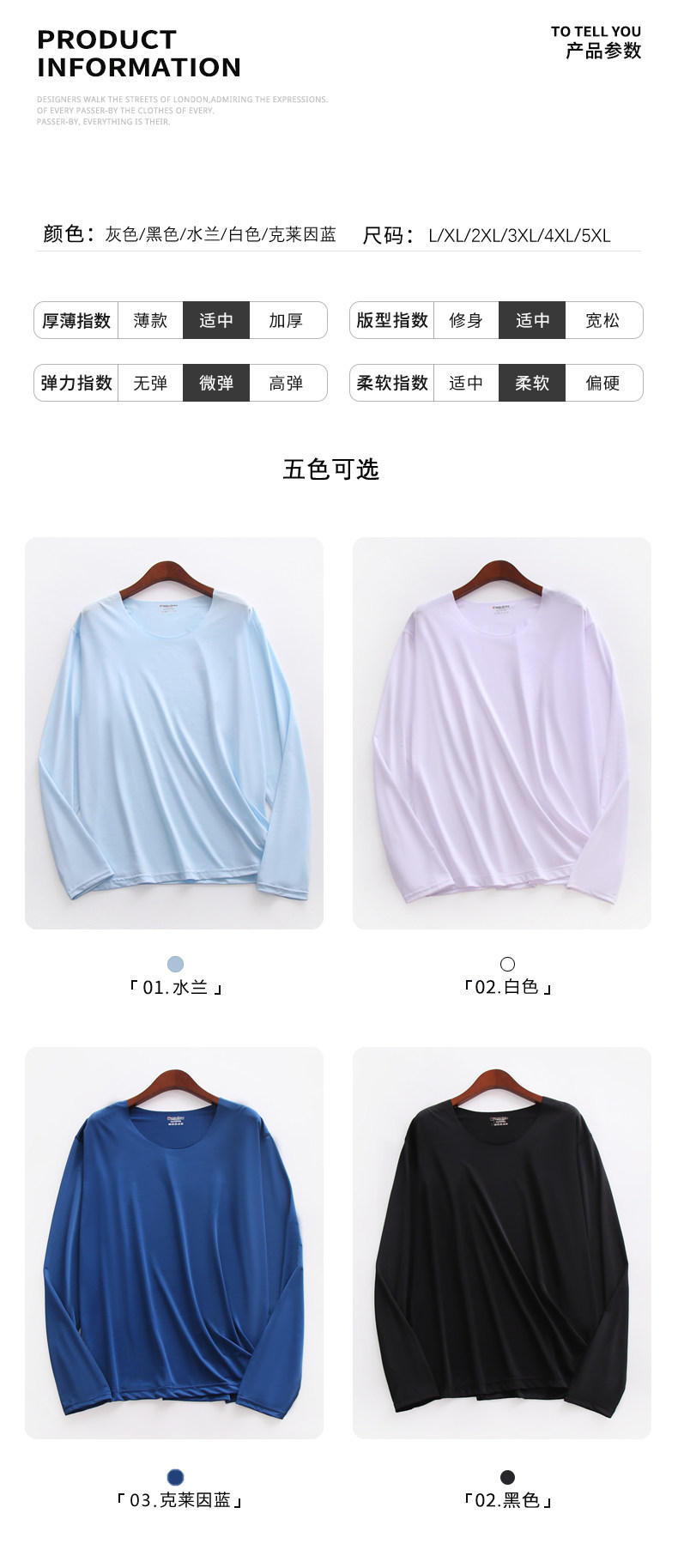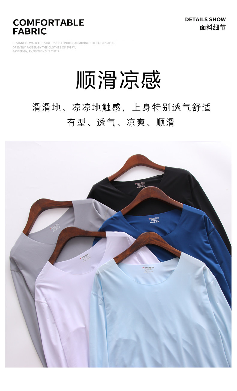 絲光絲滑|液態長袖冰絲男士T恤高彈大碼超薄無痕短袖圓領運動速乾