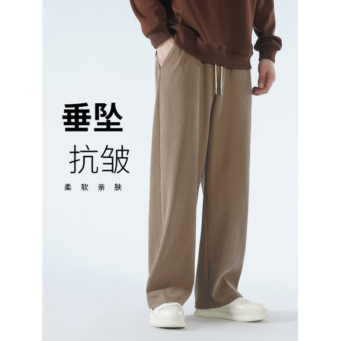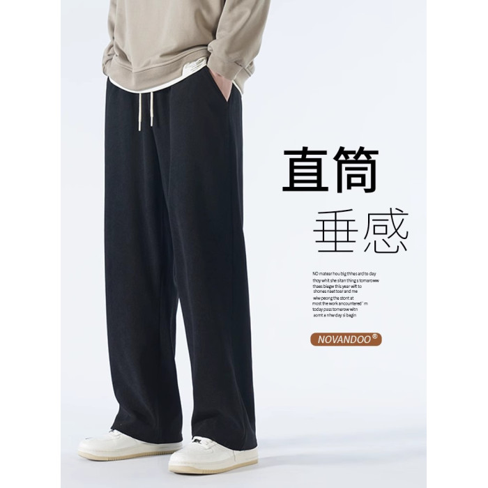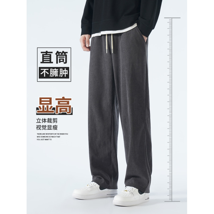 男士秋冬季休閒衛褲垂感男款運動直筒寬松燈芯絨加絨黑色長褲子