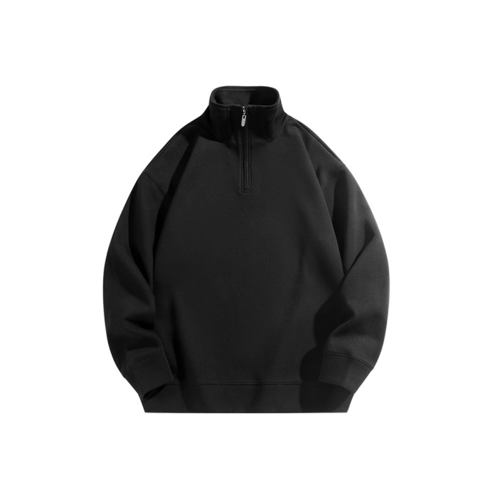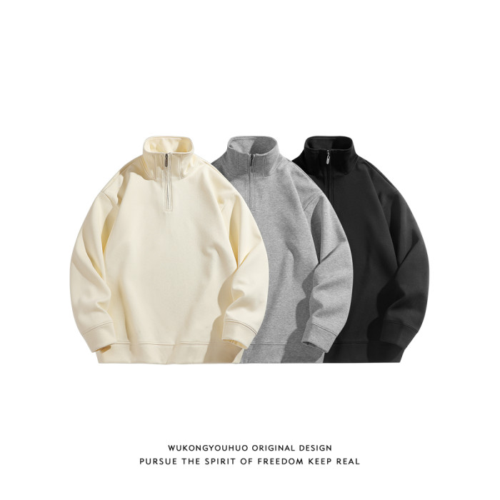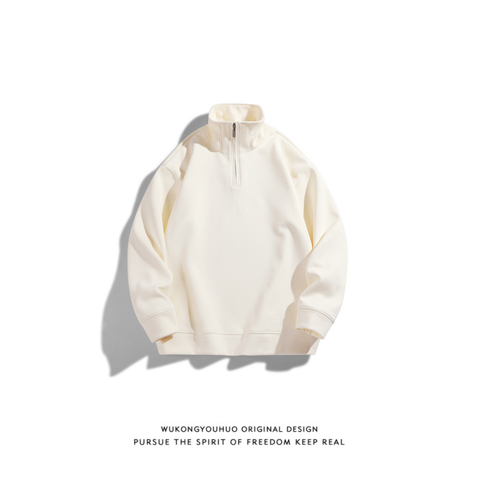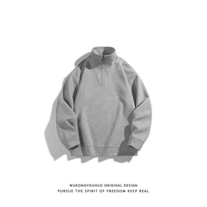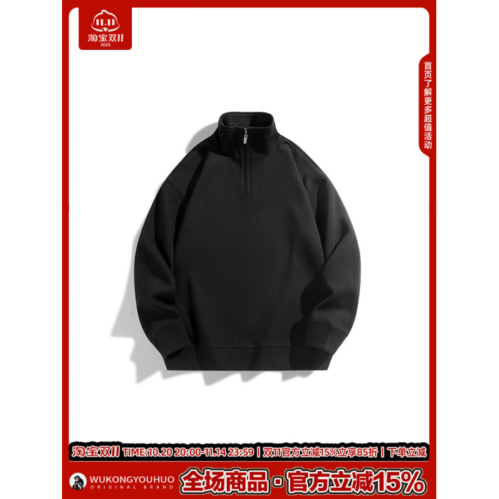 悟空有貨秋季復古簡約純色半拉鍊套頭衛衣男潮牌日系寬松百搭上衣