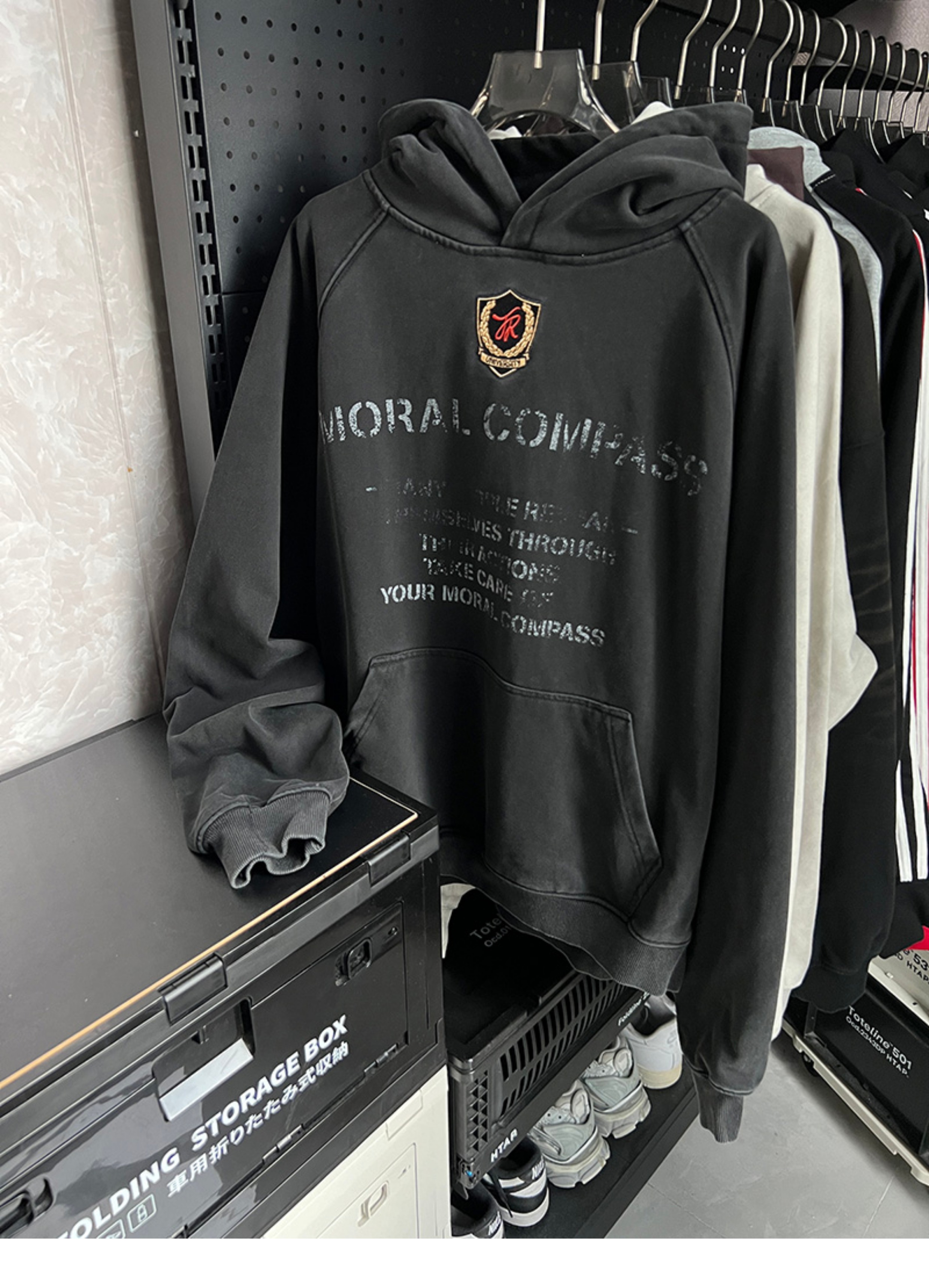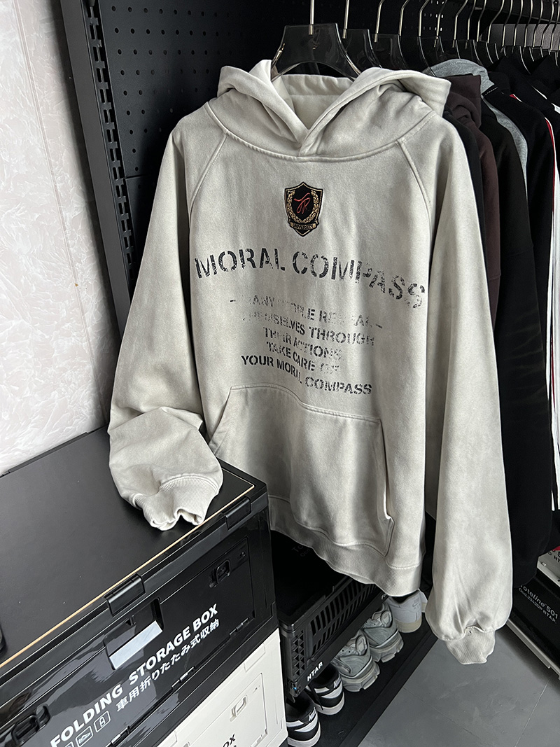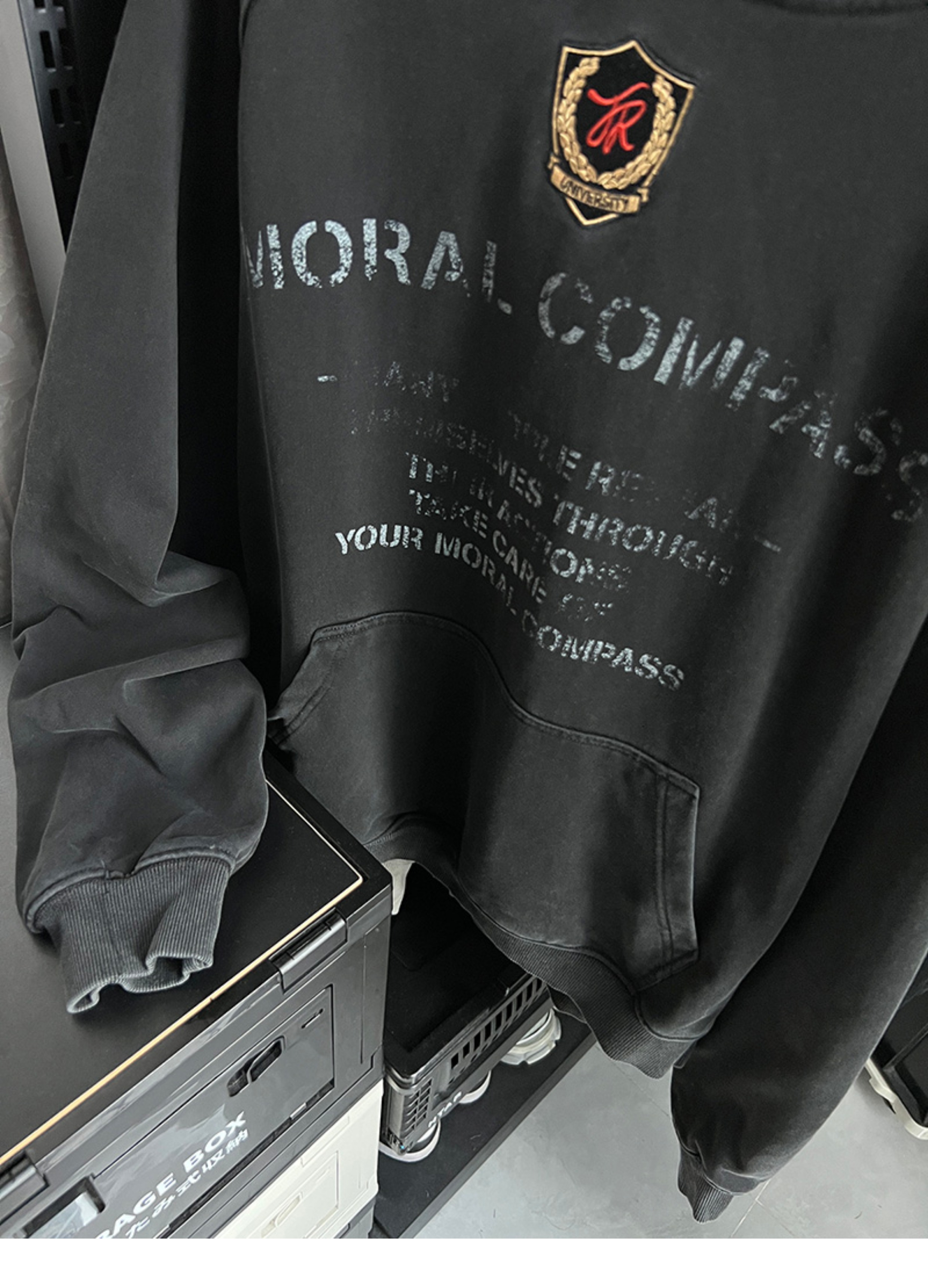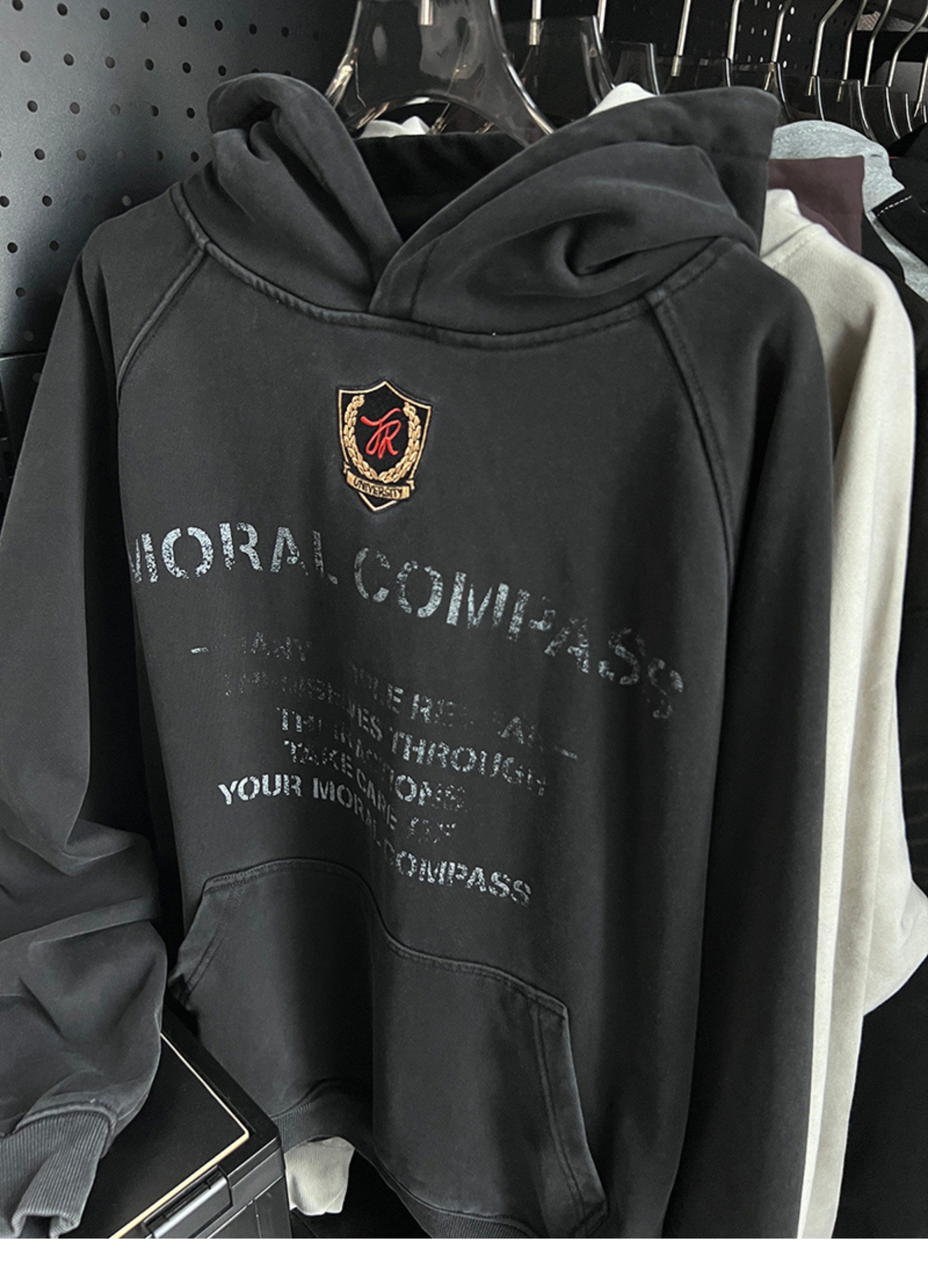 ooohmygo美式復古水洗做舊標語連帽衛衣男高級感寬松cleanfit外套