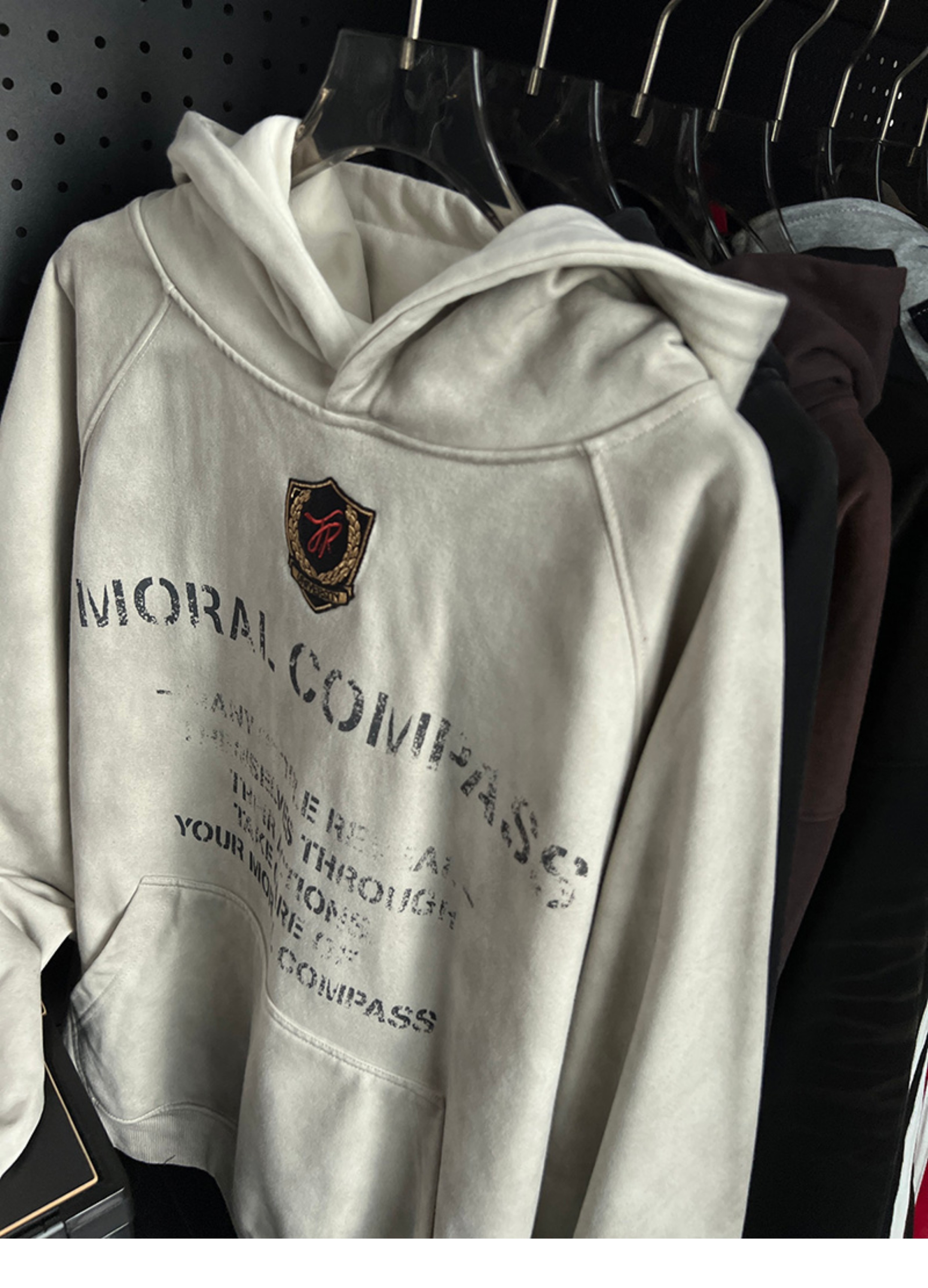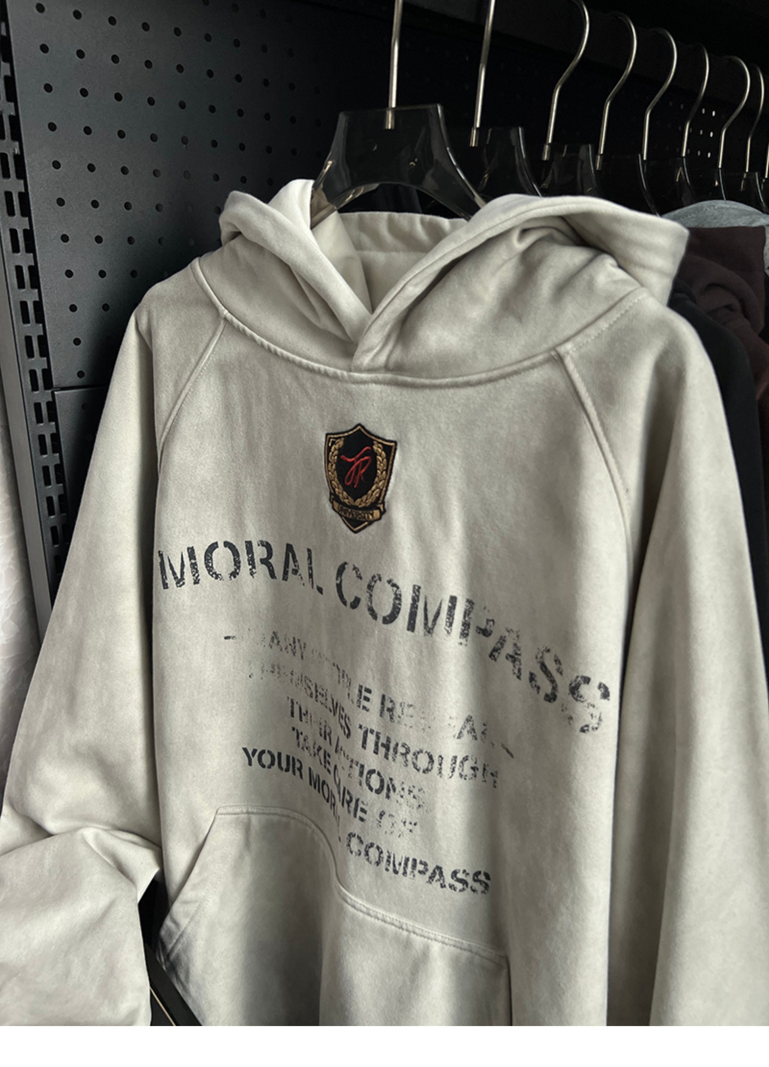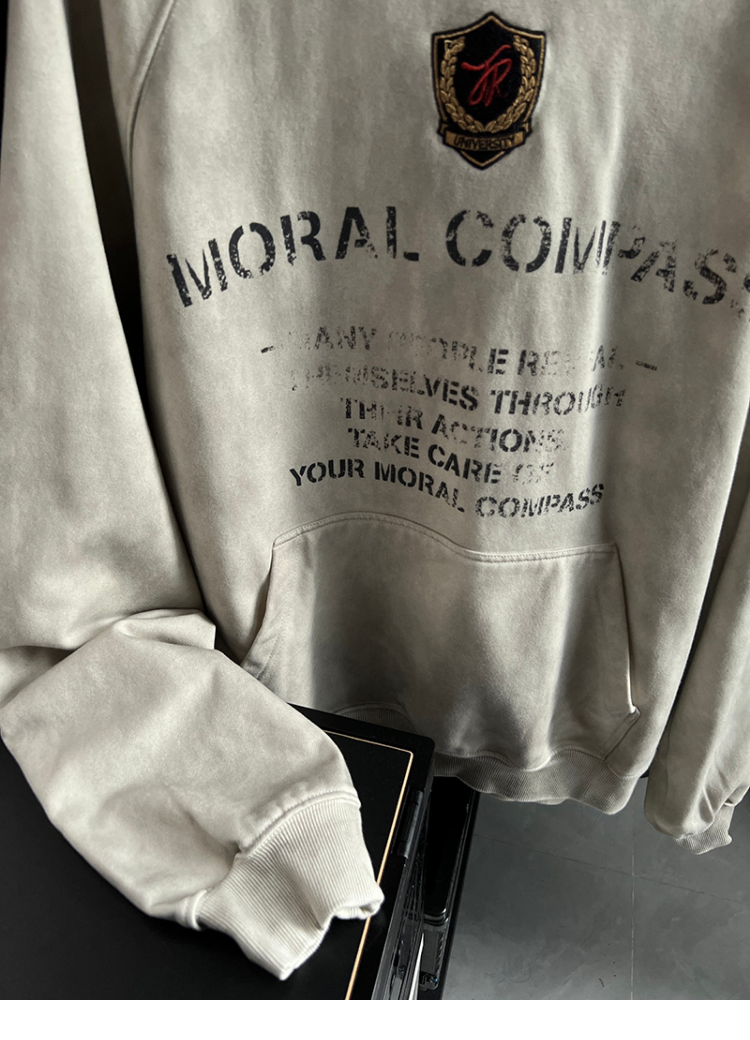 ooohmygo美式復古水洗做舊標語連帽衛衣男高級感寬松cleanfit外套