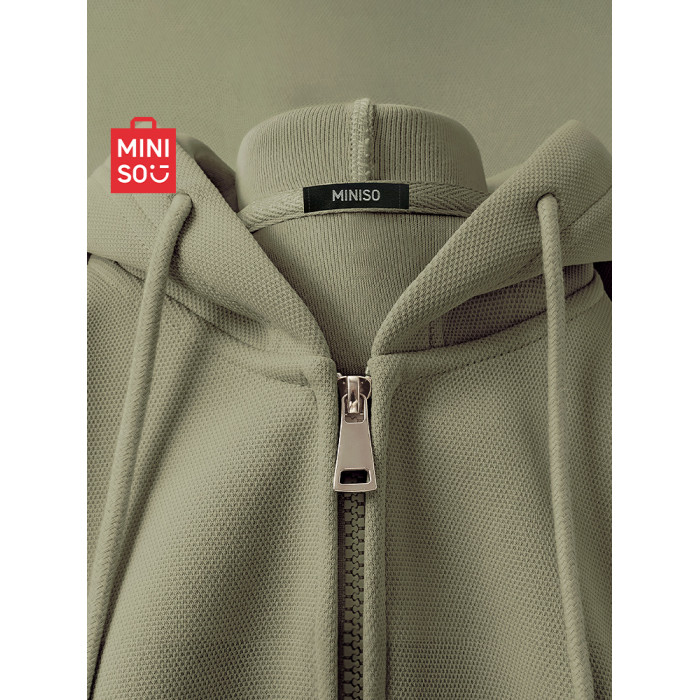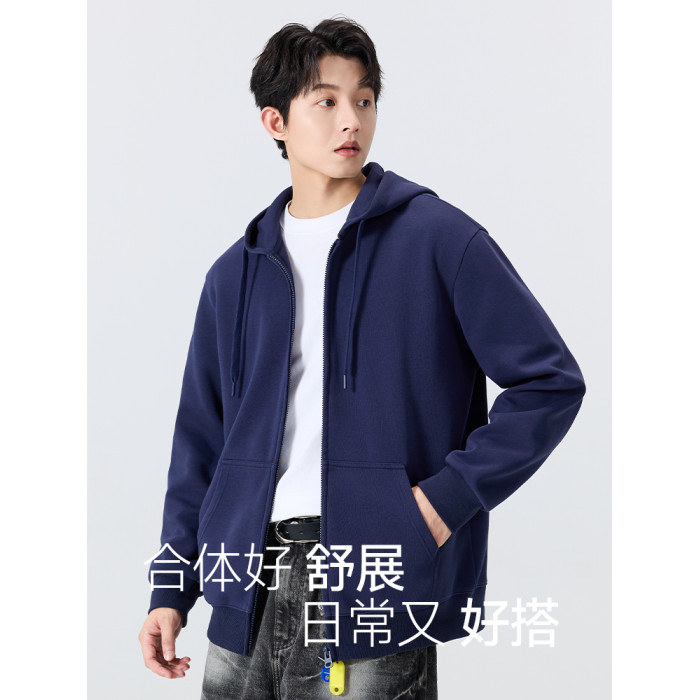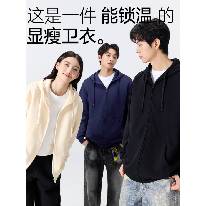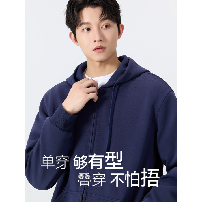 名創優品開衫衛衣男秋季加絨男生重磅男款拉鍊男士休閒連帽外套A
