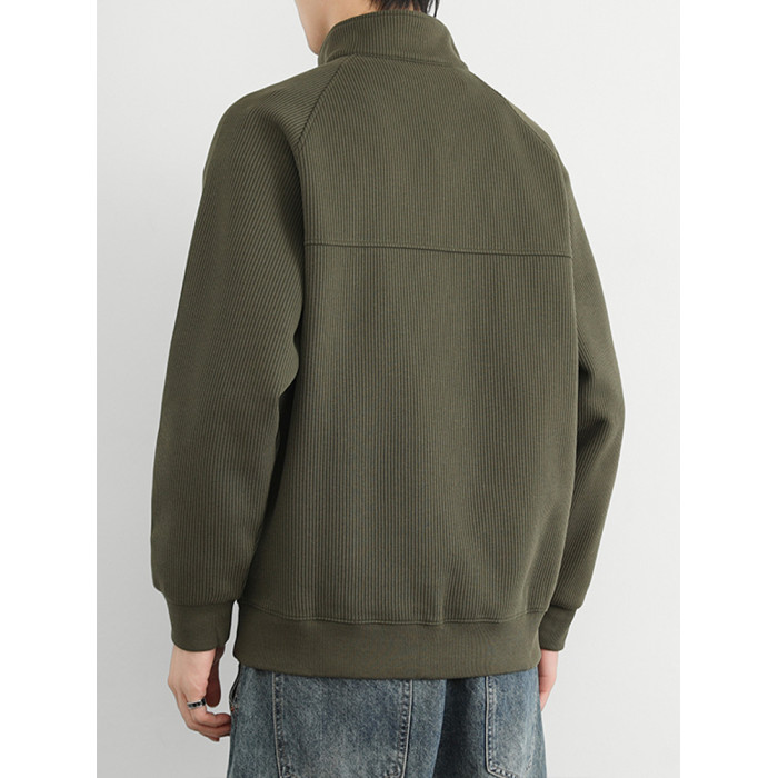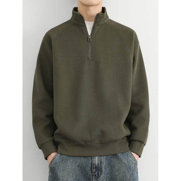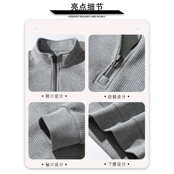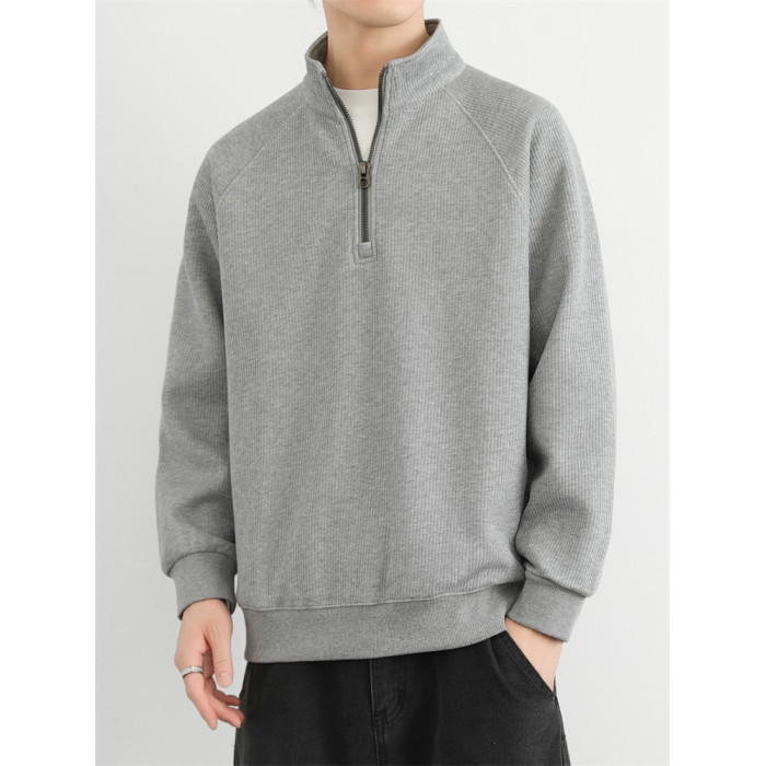 半拉鍊立領衛衣男款春秋冬季美式復古加絨加厚男士純色休閒外套男