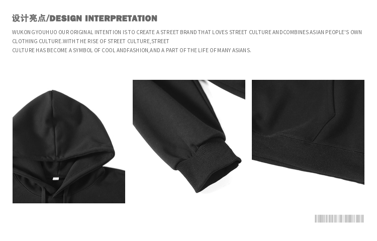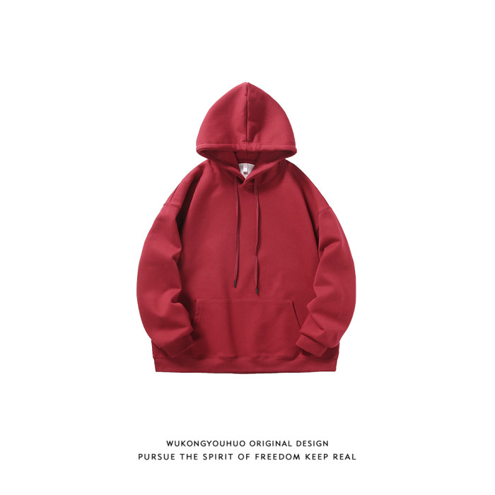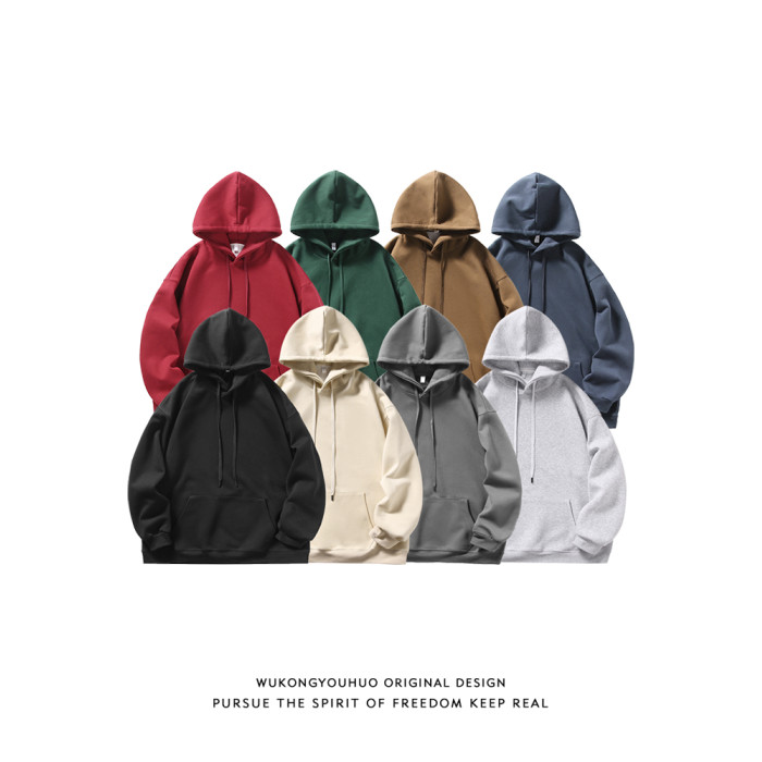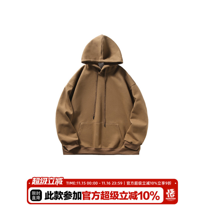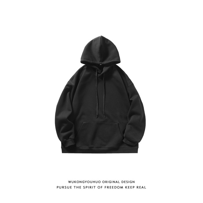 悟空有貨復古日系簡約純色連帽衛衣男女潮牌寬松基礎百搭打底帽衫