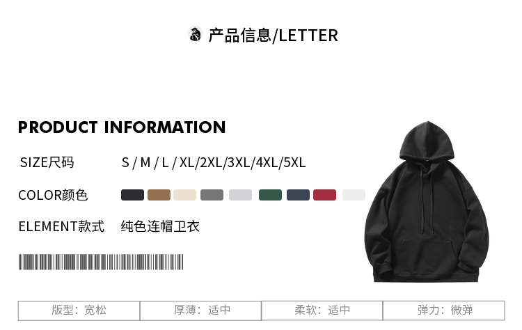 | 服裝口袋樣式 | 袋鼠兜 |