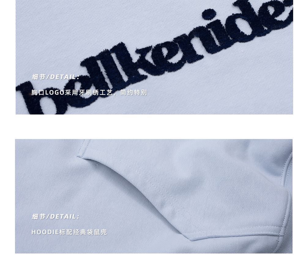 BELLKENIDEA 重磅445g連帽字母牙刷刺綉廓形寬松衛衣男女款潮流行