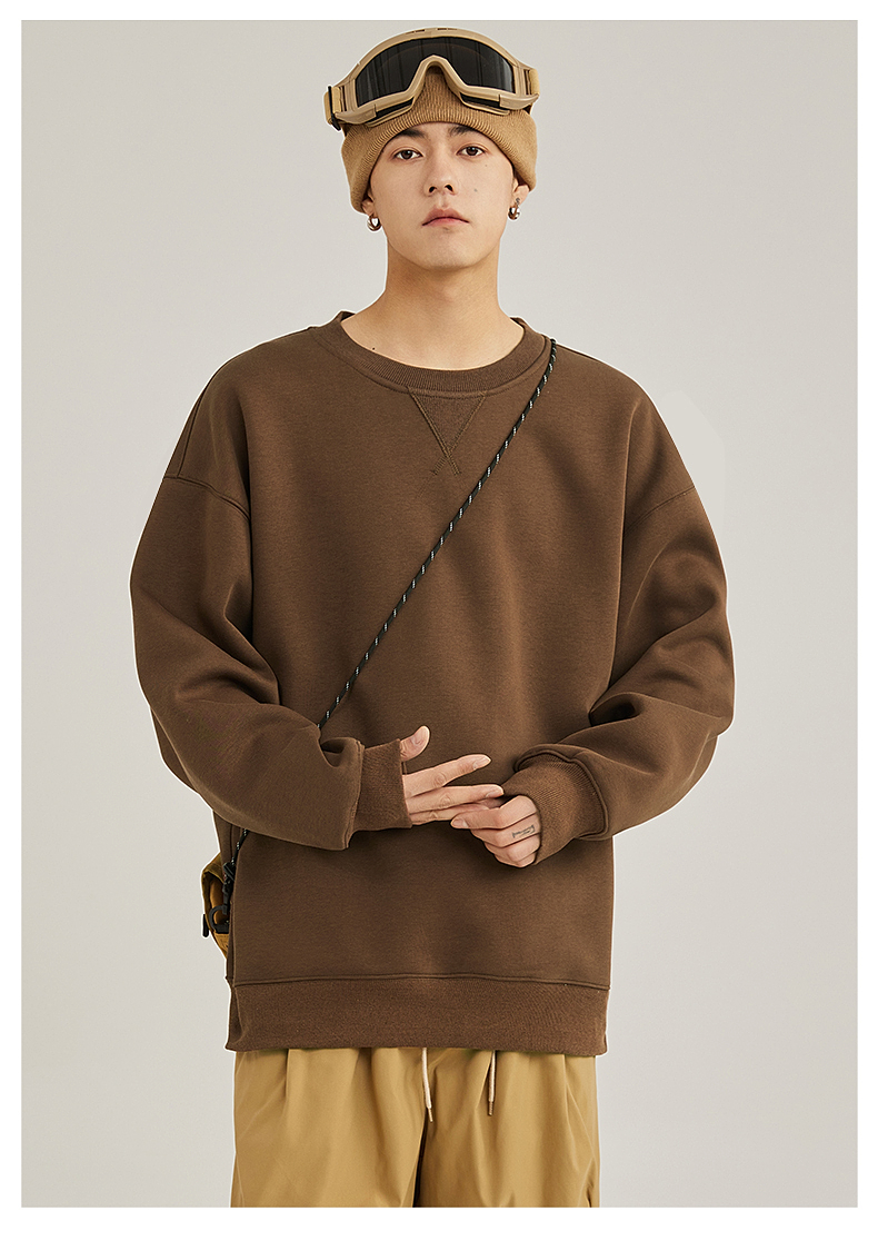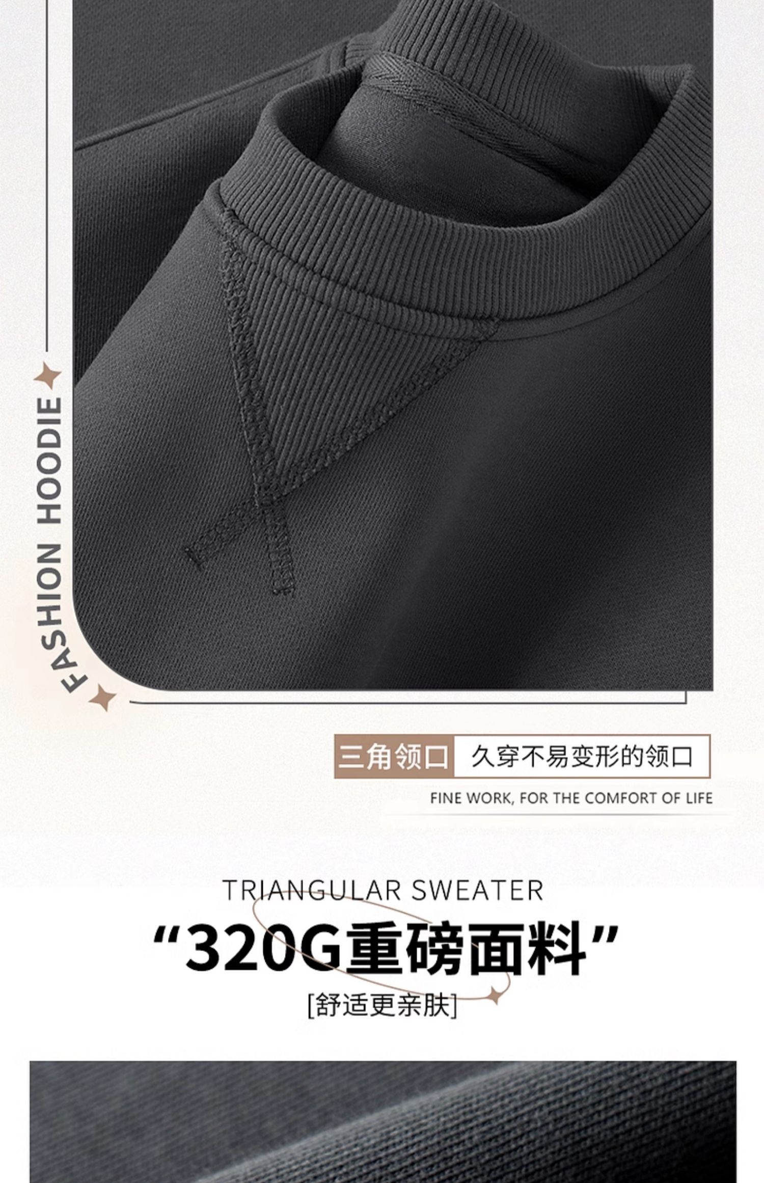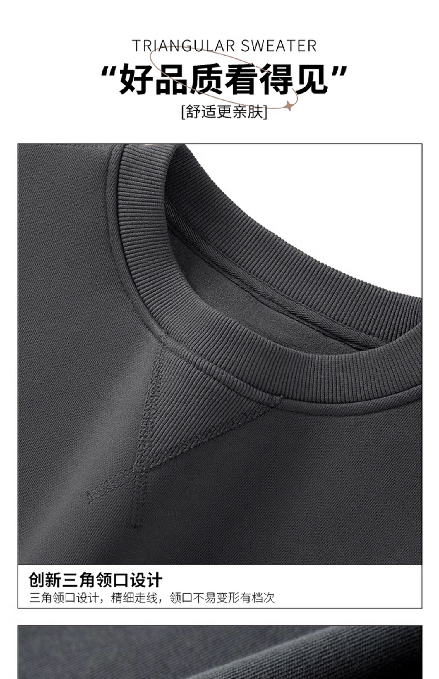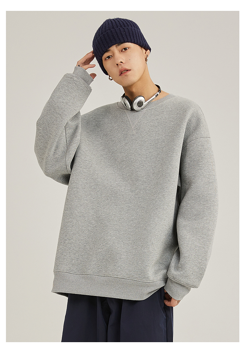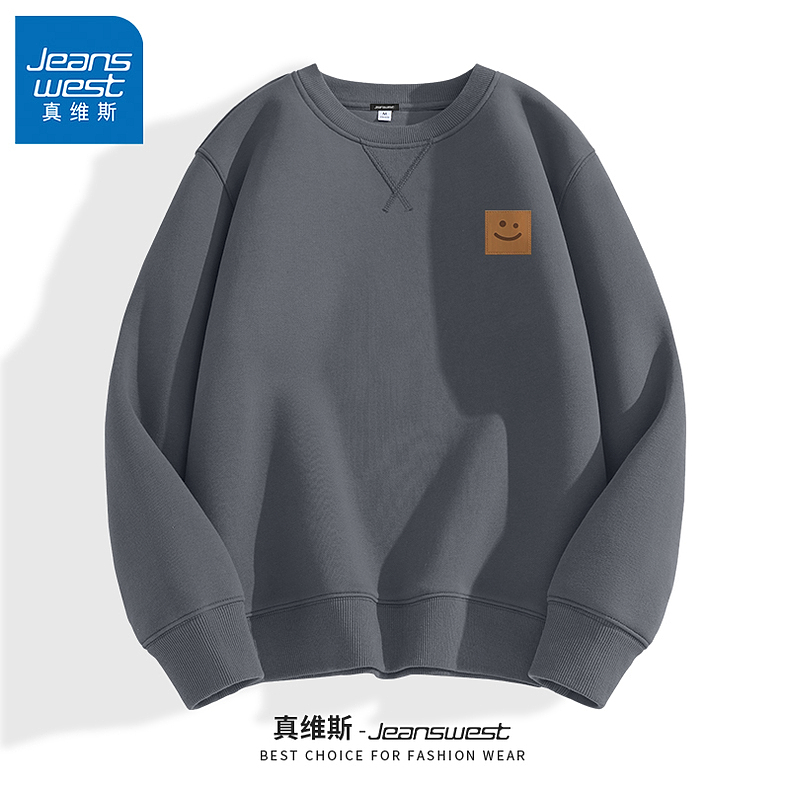 GV真維斯黑色衛衣男款秋冬重磅圓領倒三角男士加絨加厚無帽上衣A