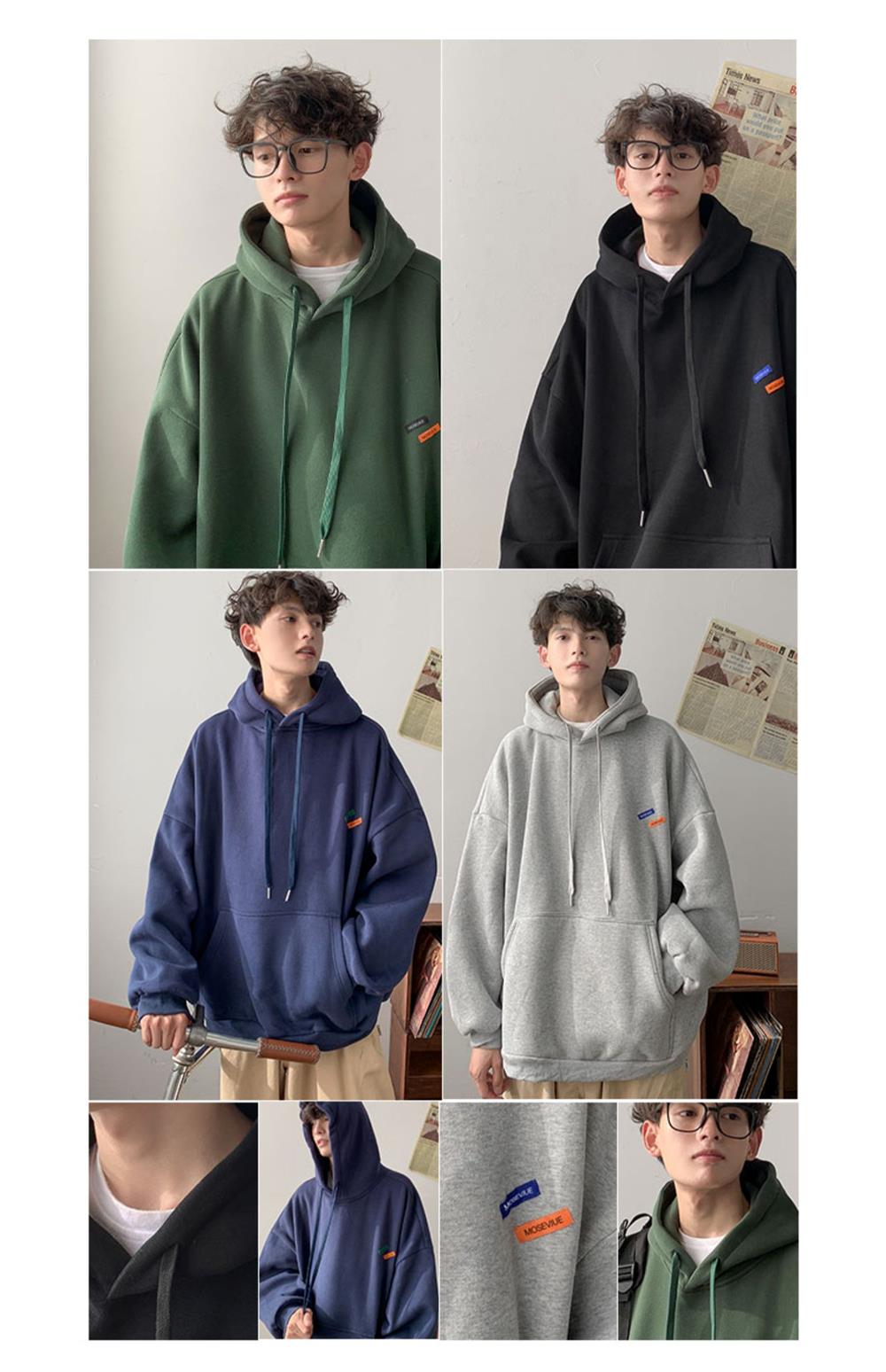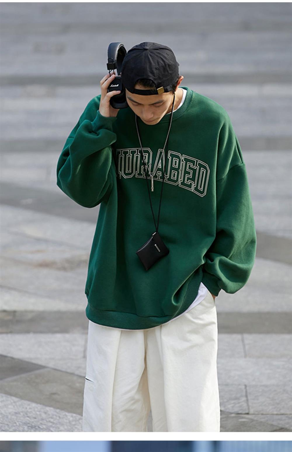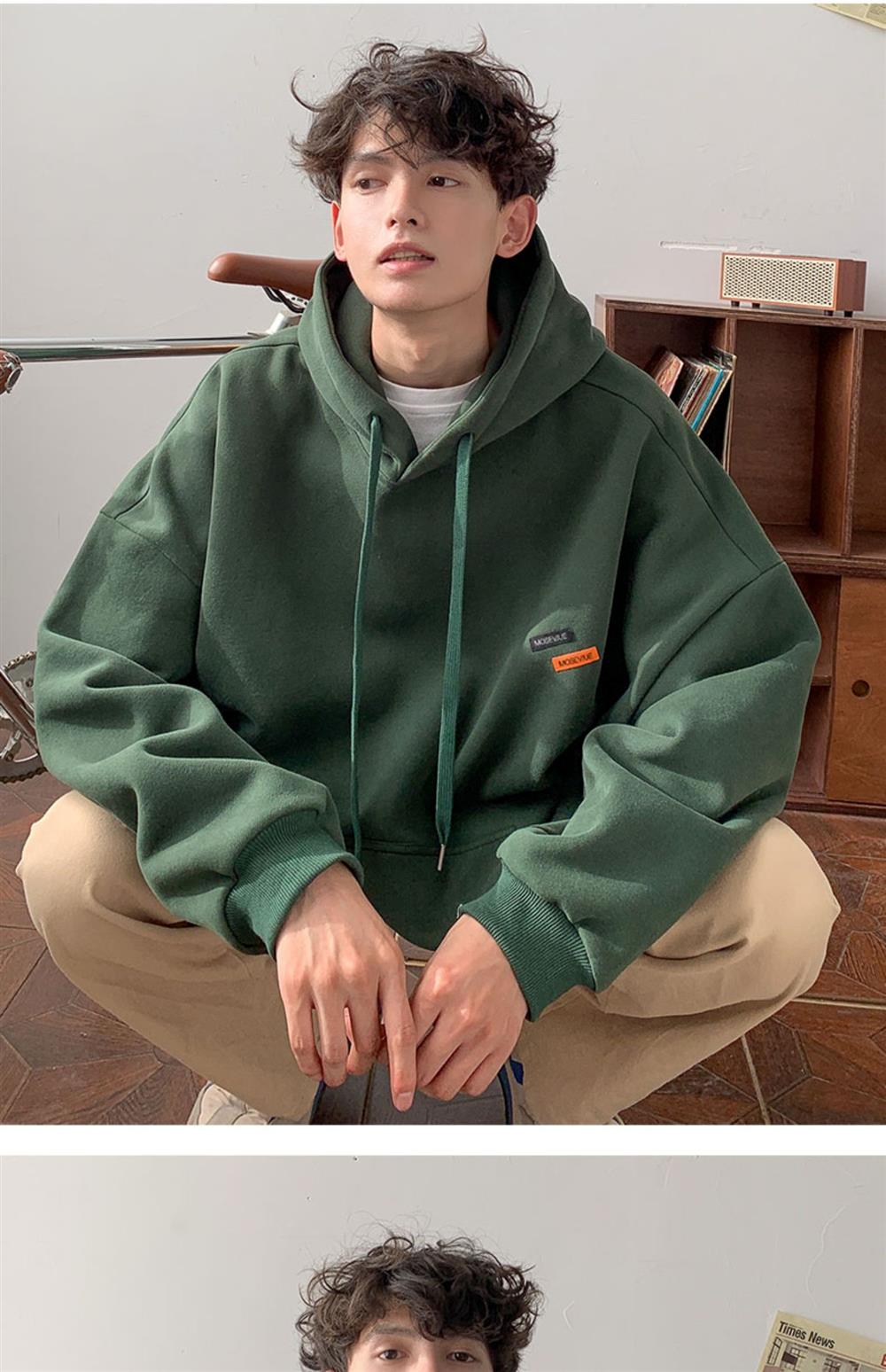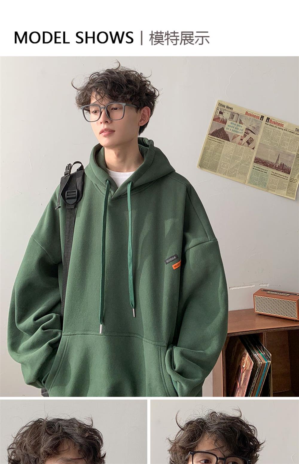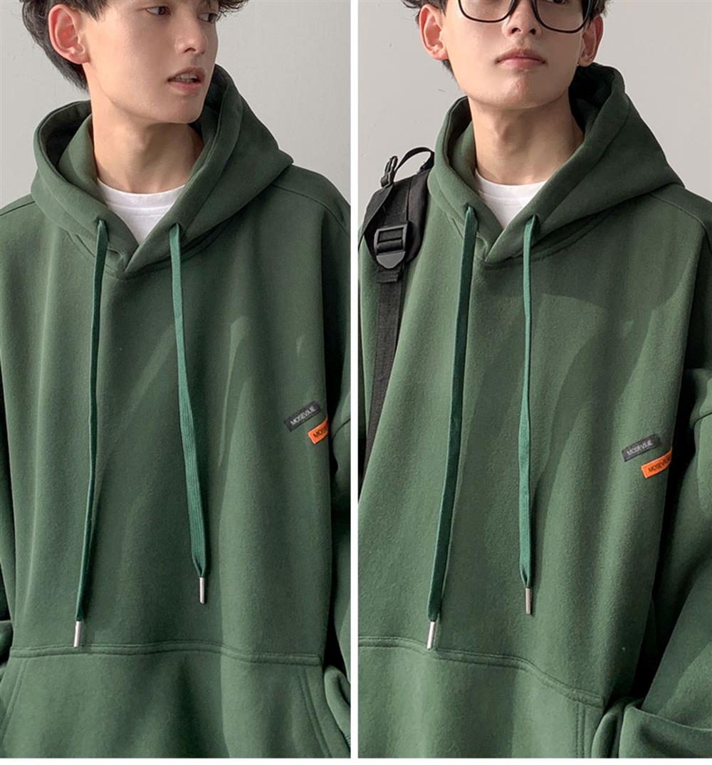 加絨加厚墨綠色重磅cityboy衛衣男秋冬潮連帽衫oversize美式外套