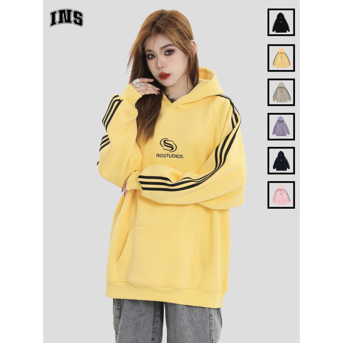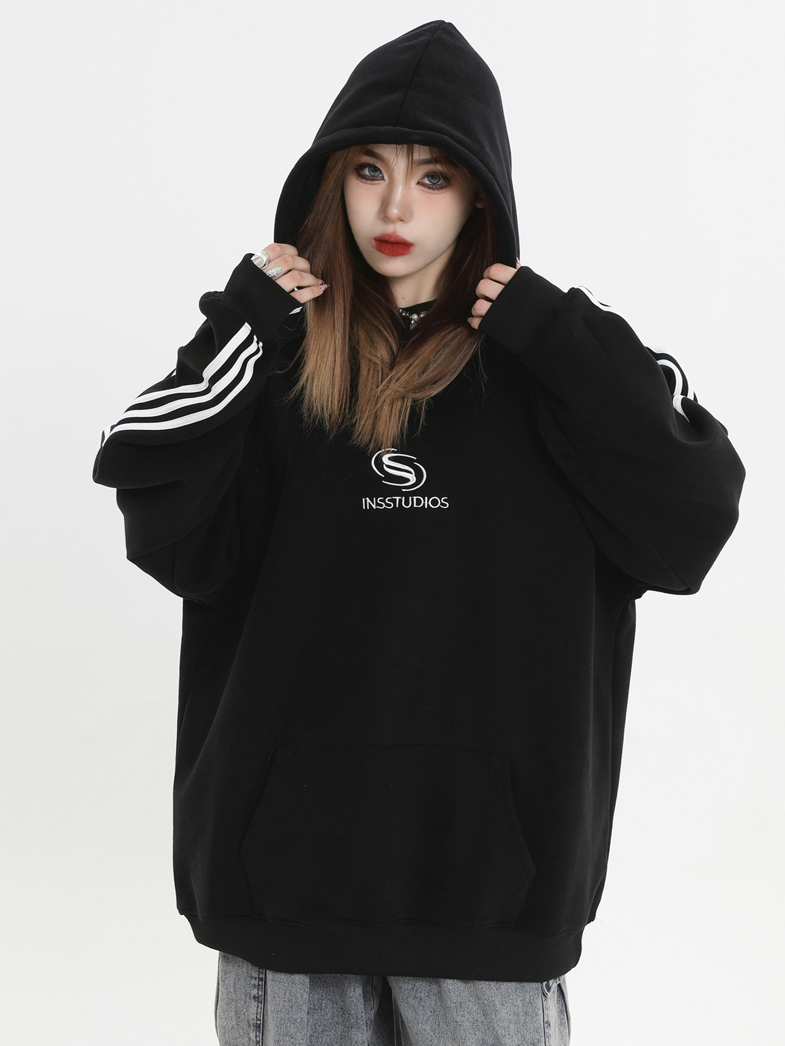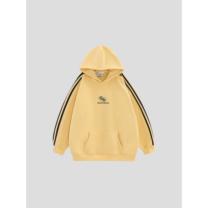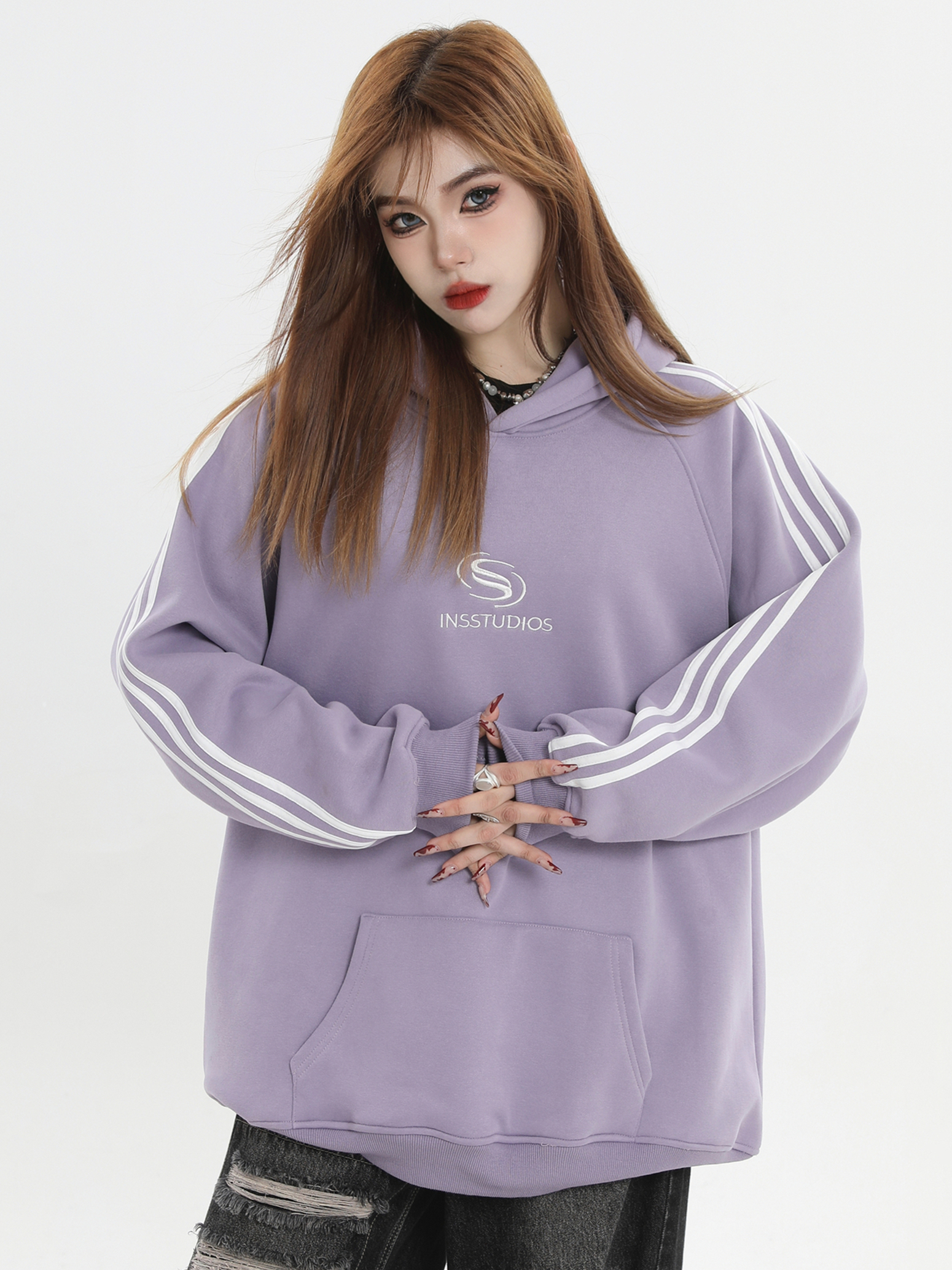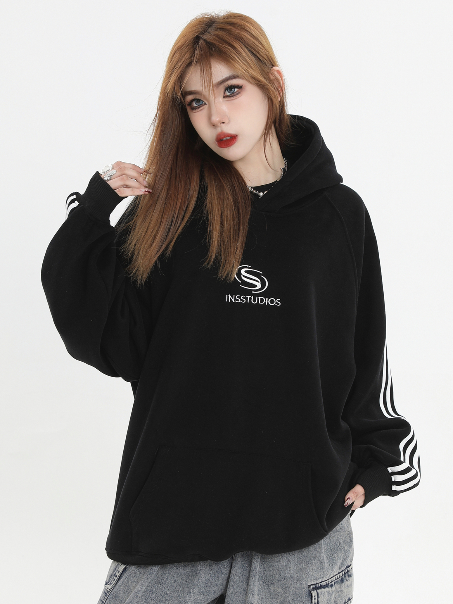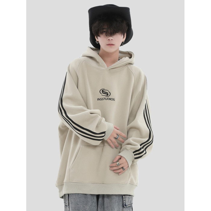 INSstudios 國潮牌情侶美式小三條杠條紋衛衣重磅加絨連帽衫