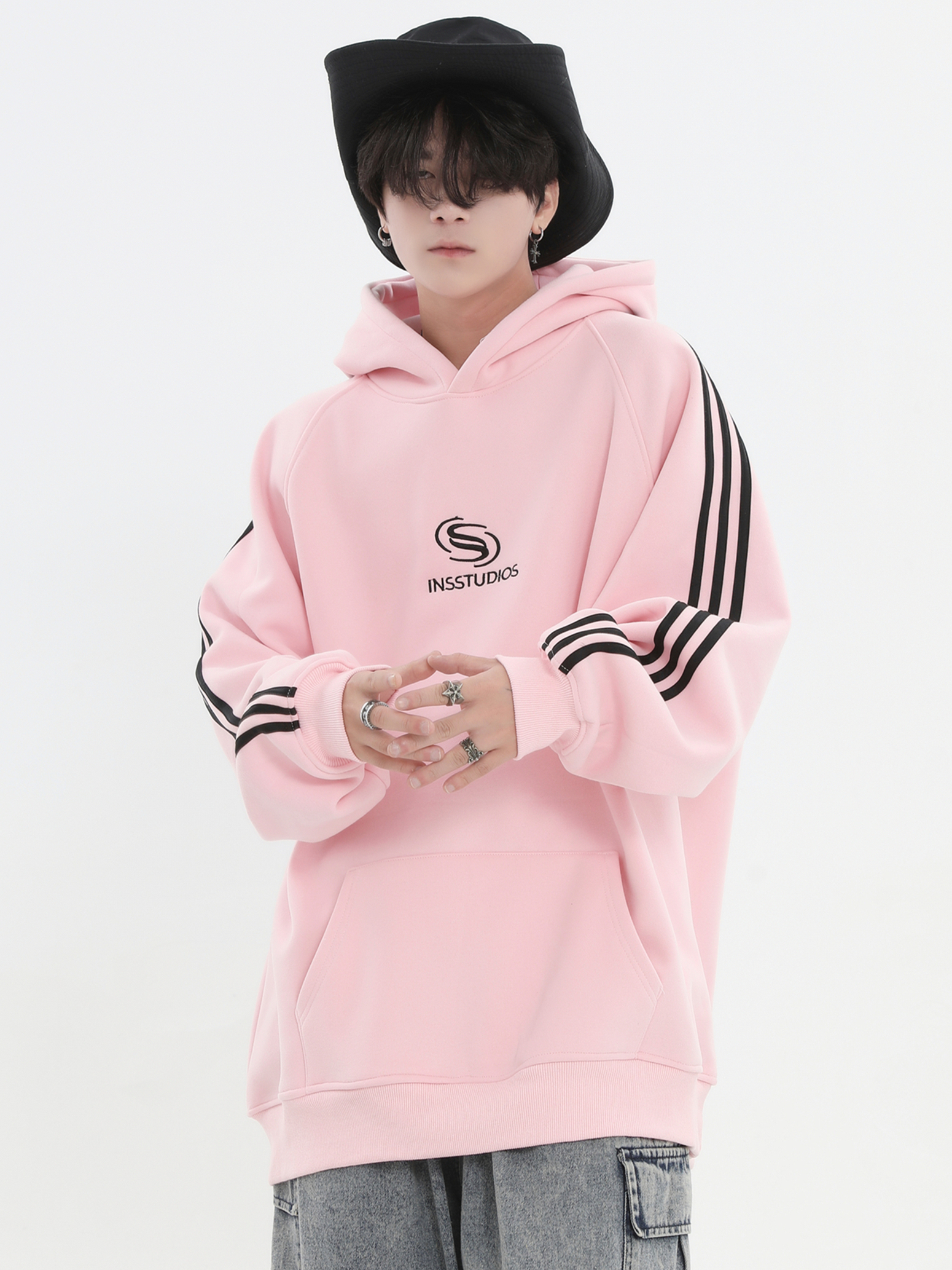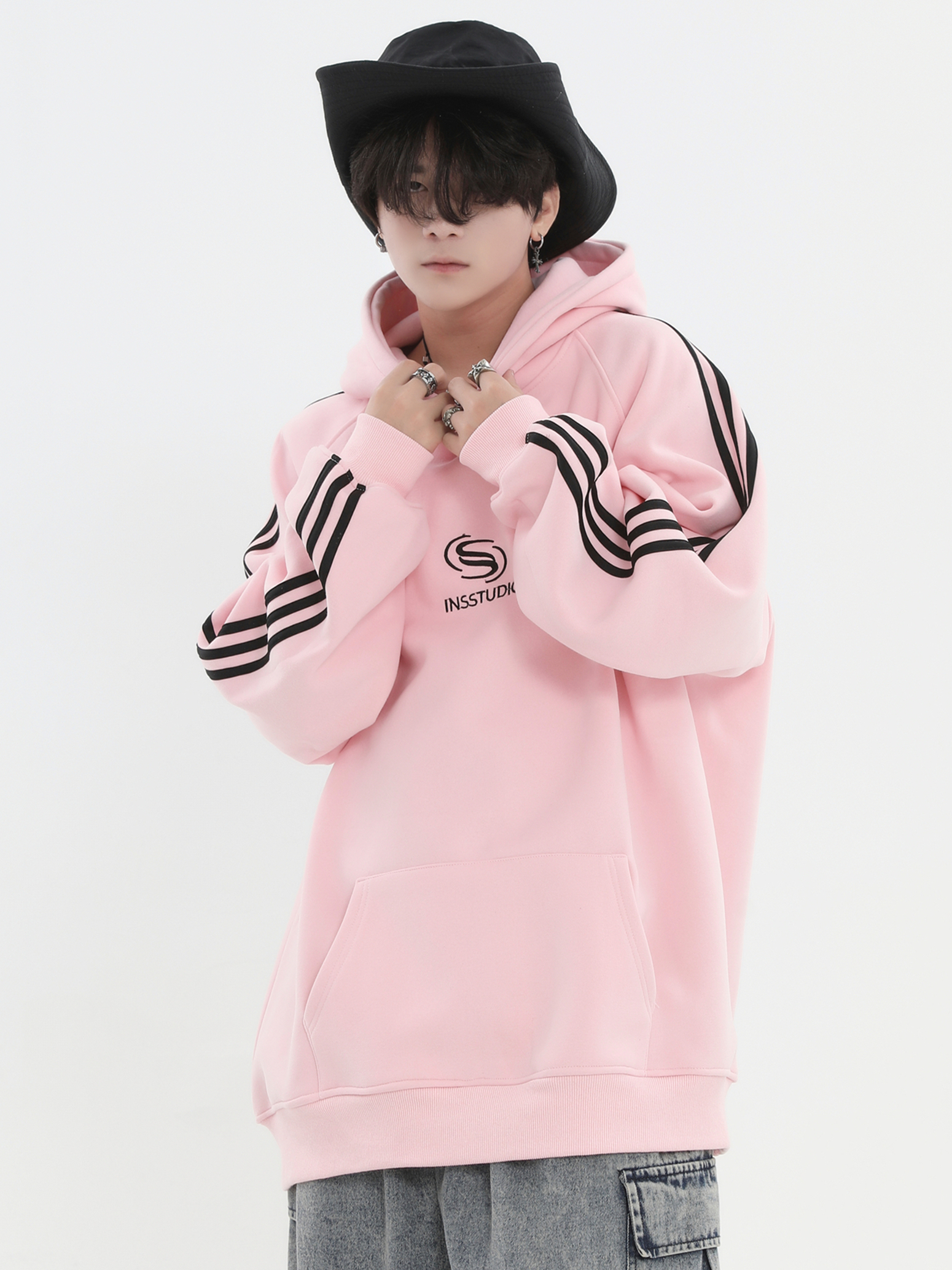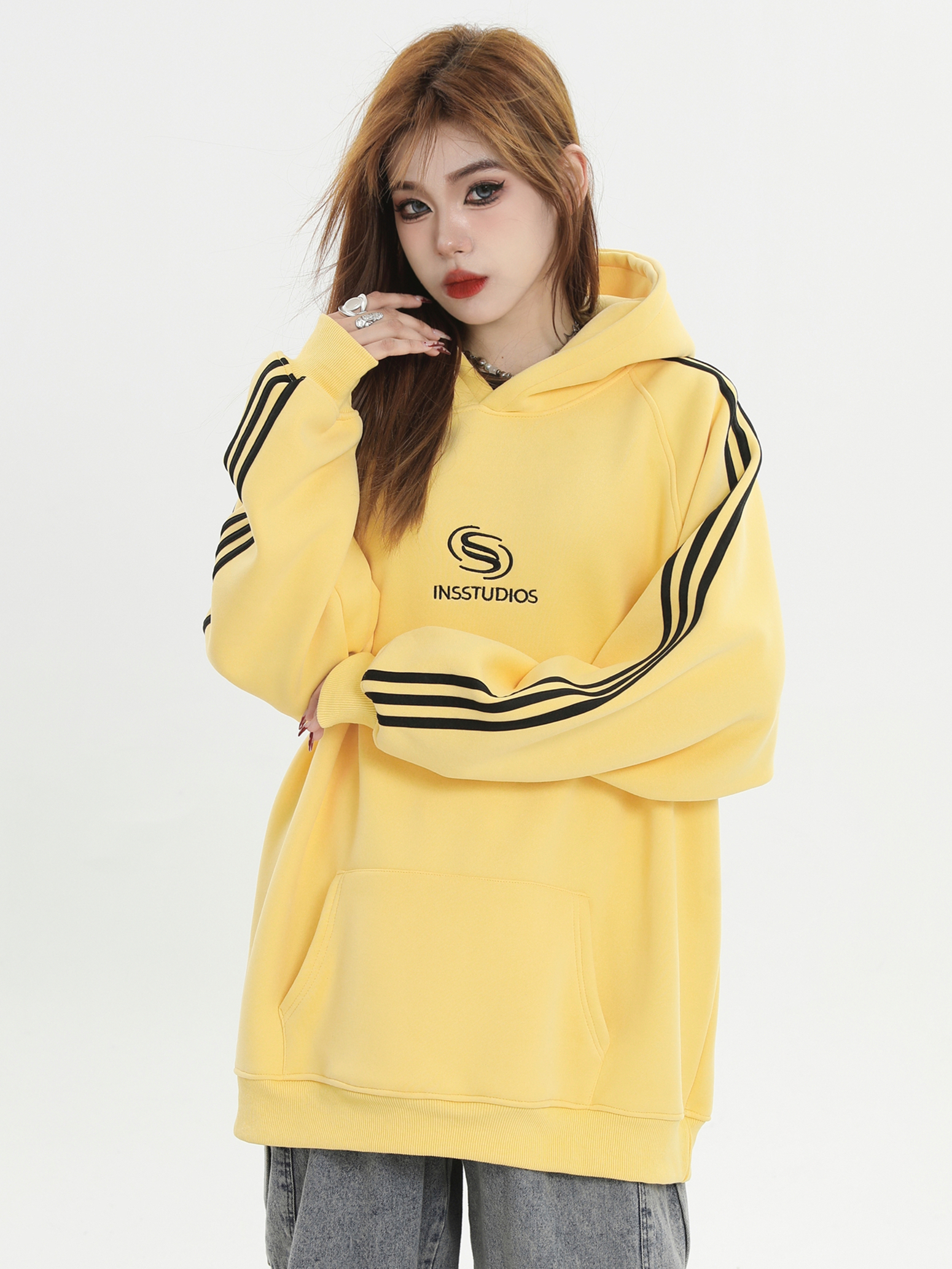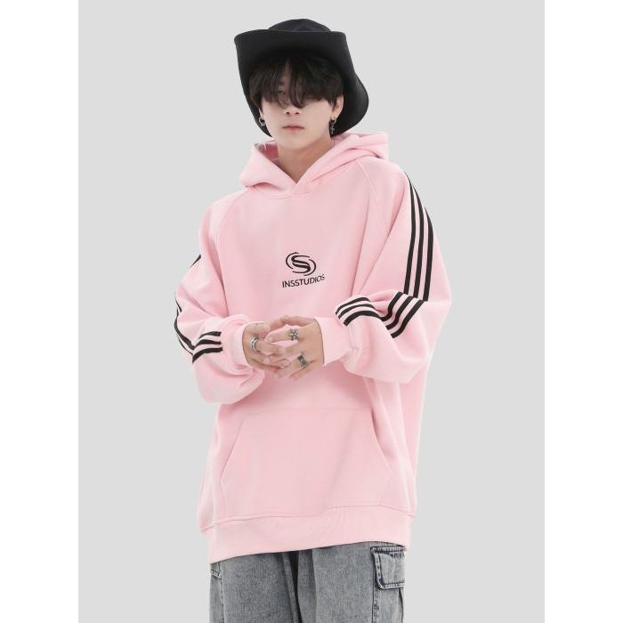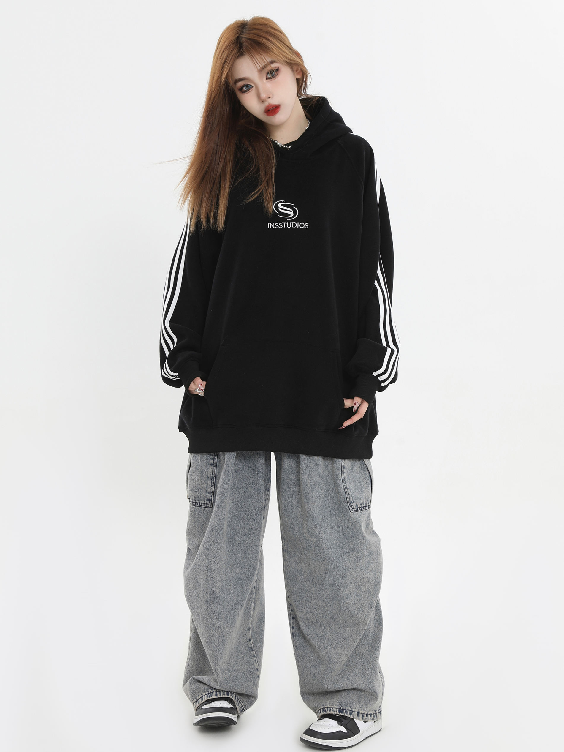 INSstudios 國潮牌情侶美式小三條杠條紋衛衣重磅加絨連帽衫