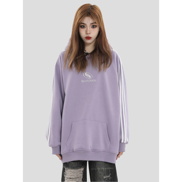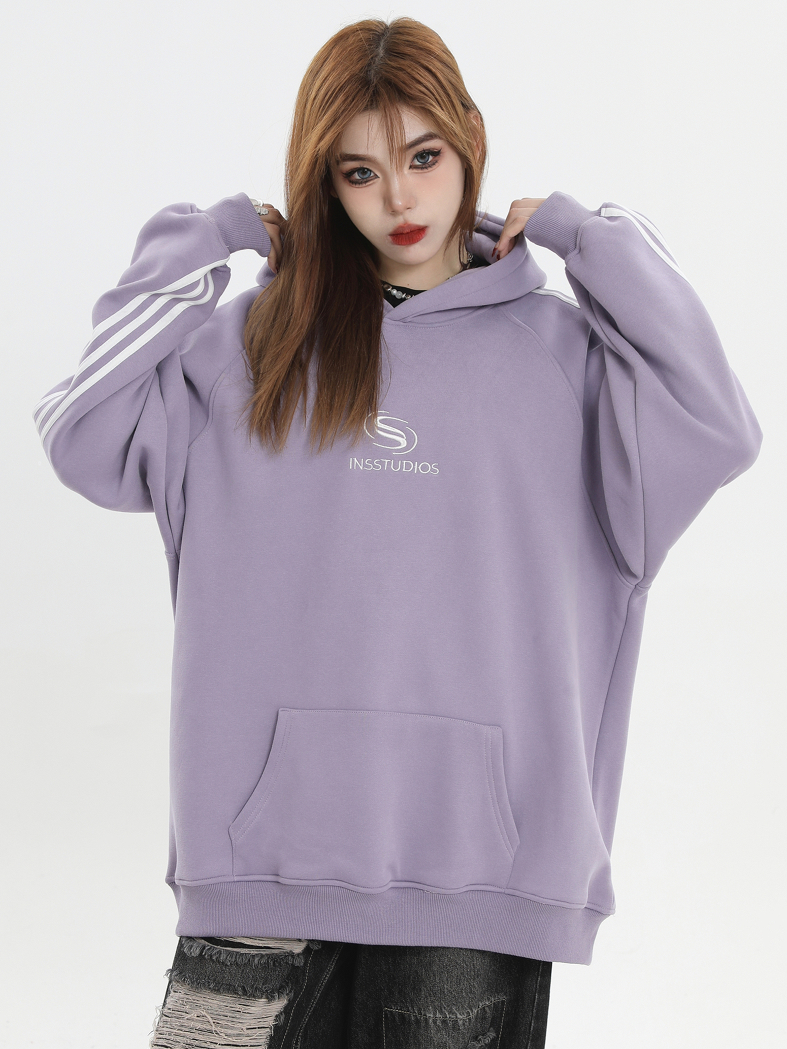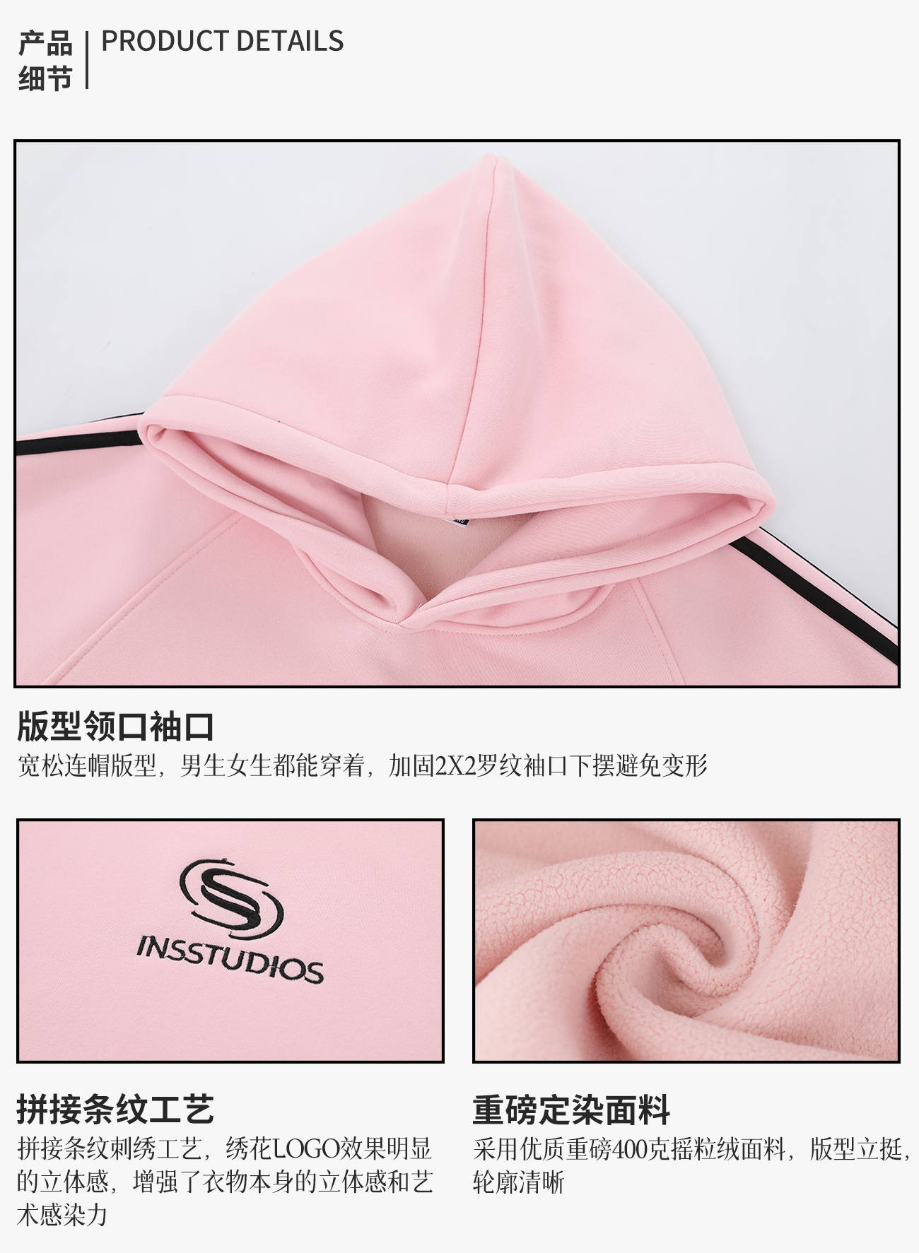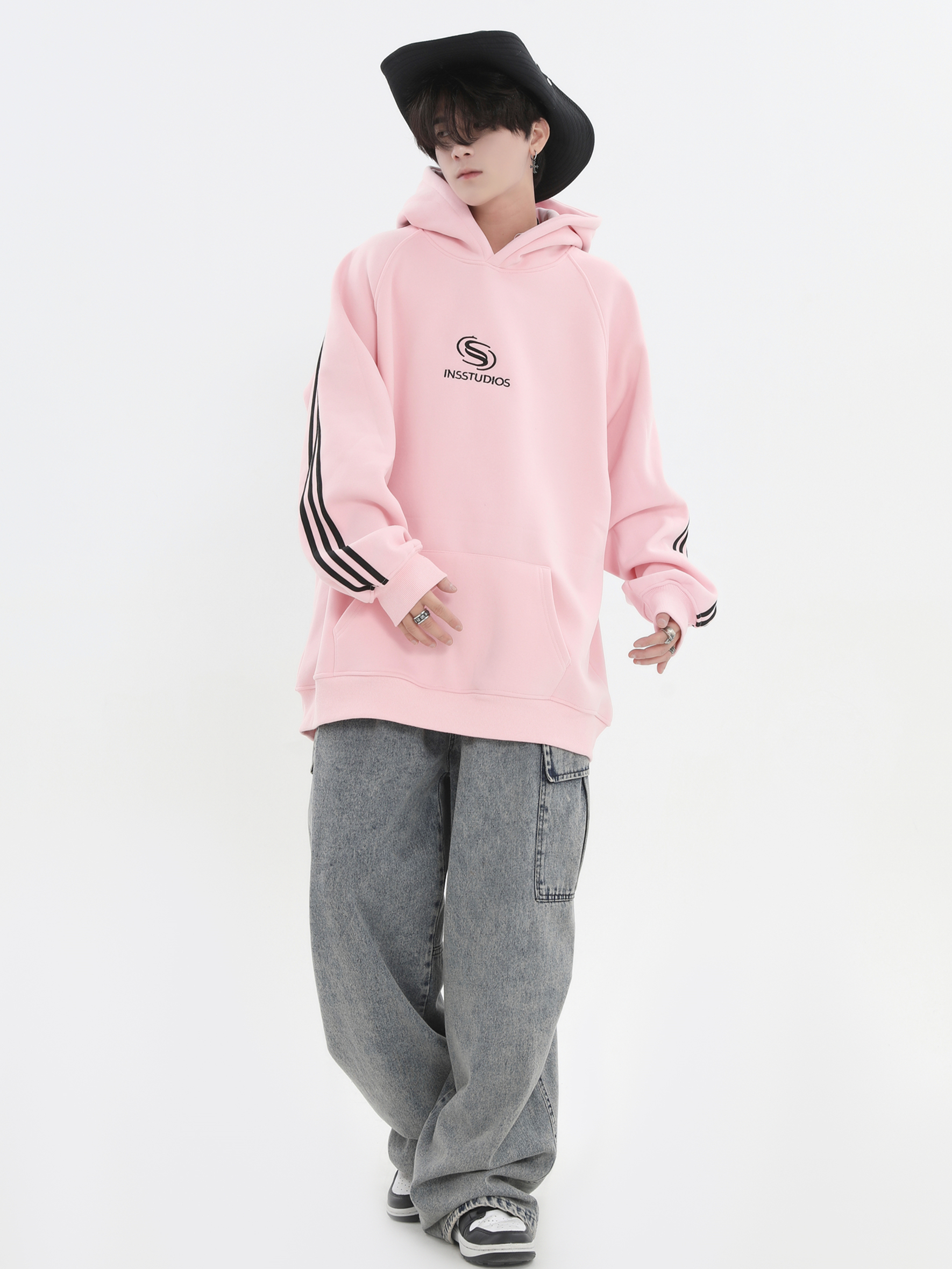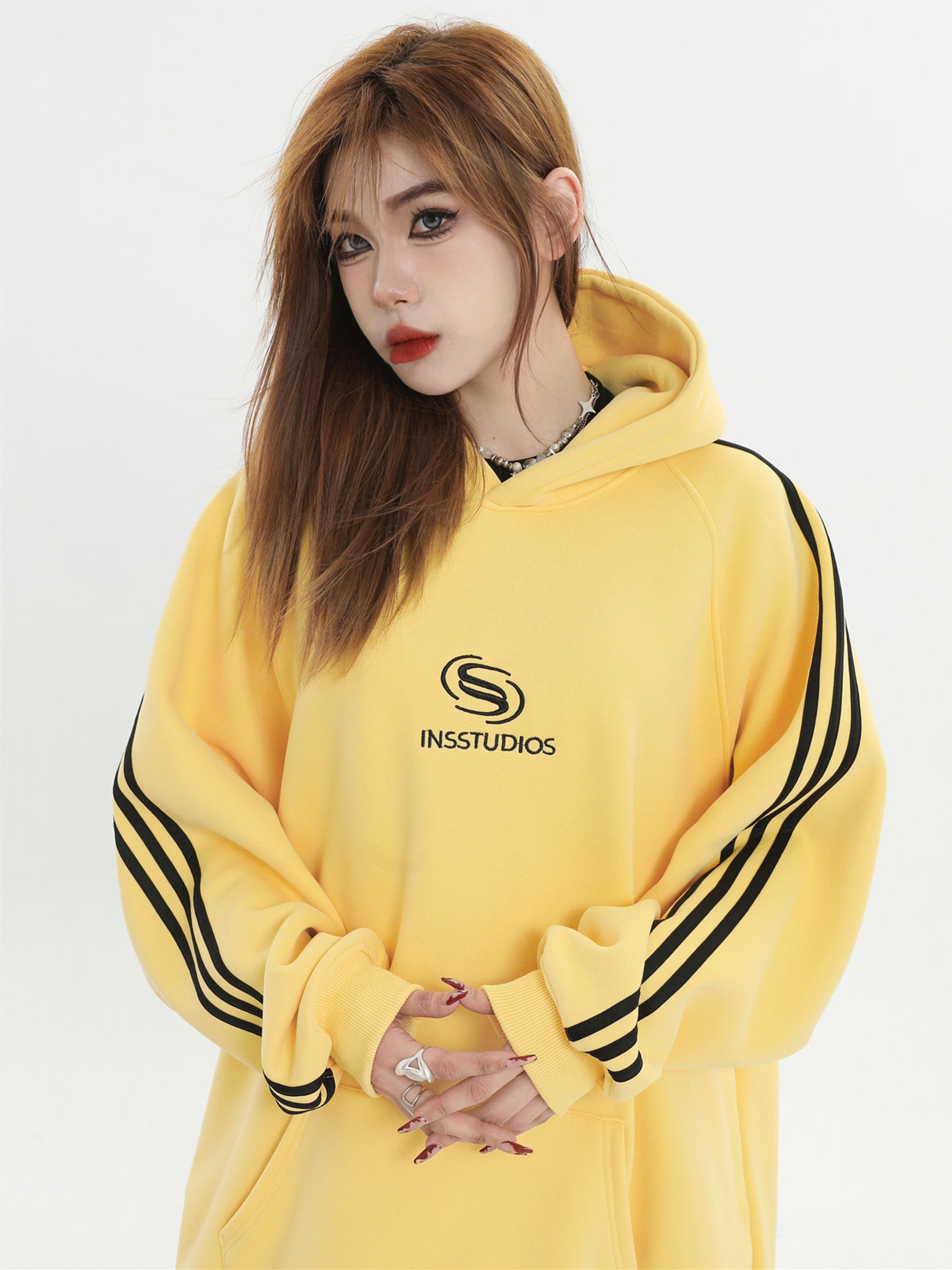 INSstudios 國潮牌情侶美式小三條杠條紋衛衣重磅加絨連帽衫
