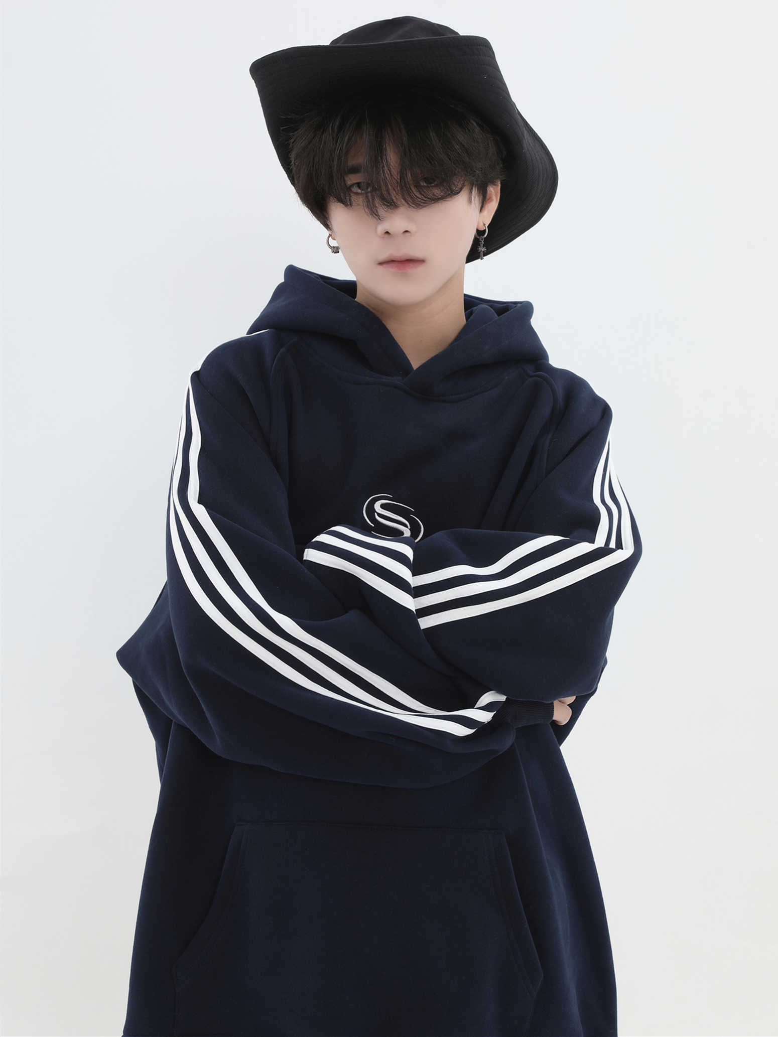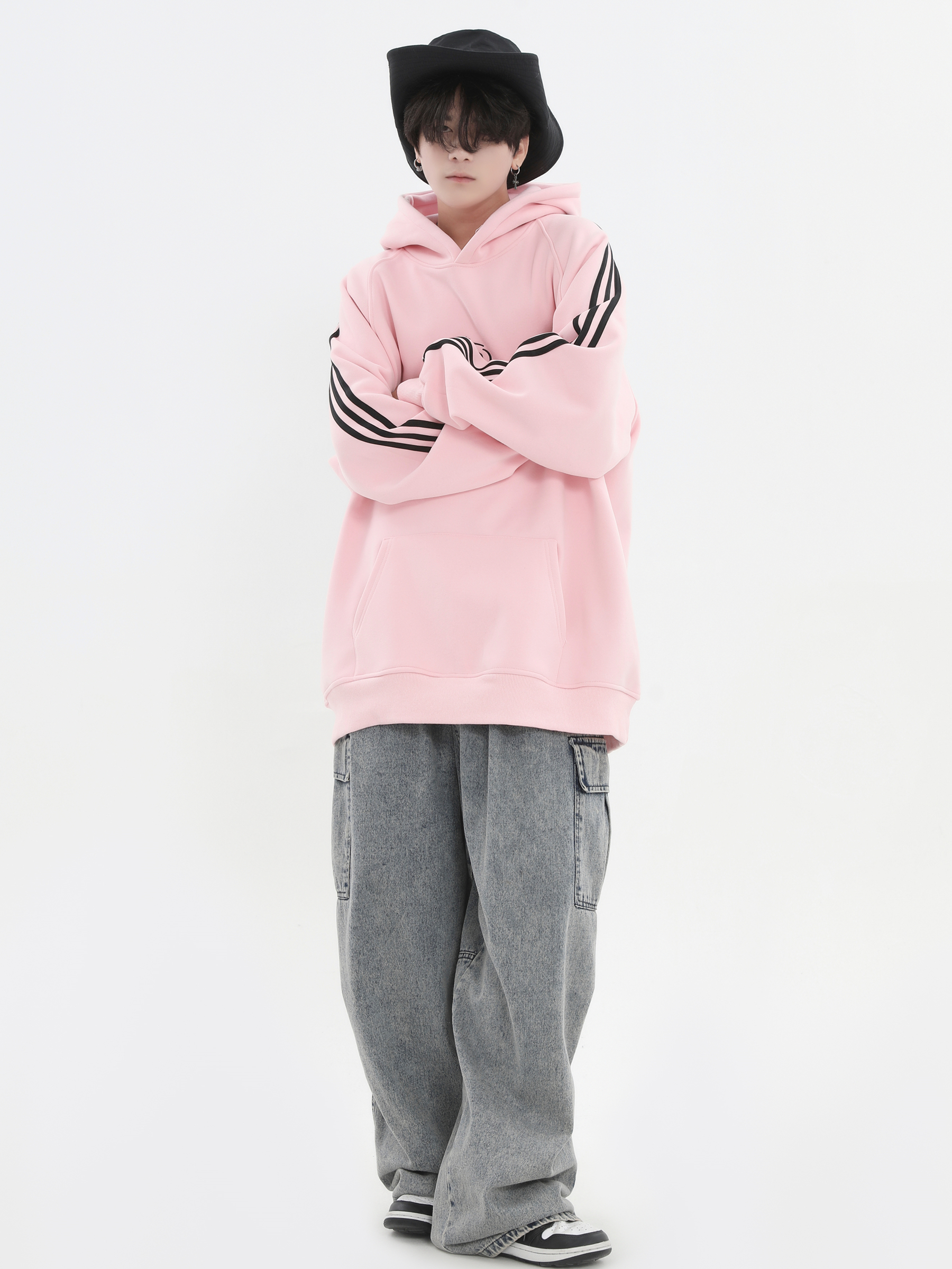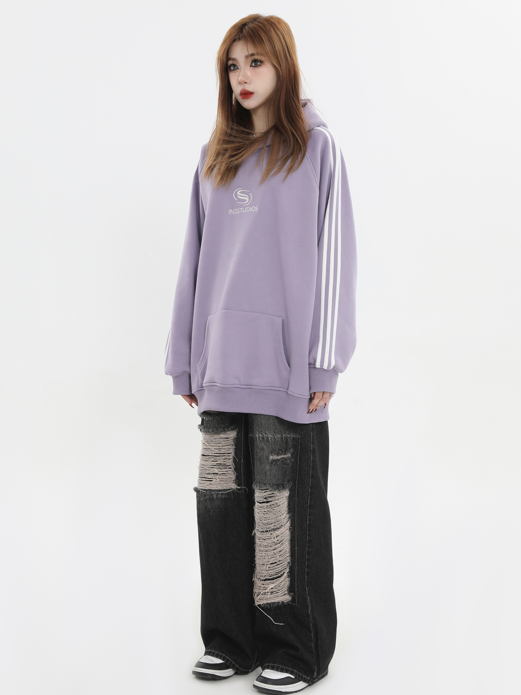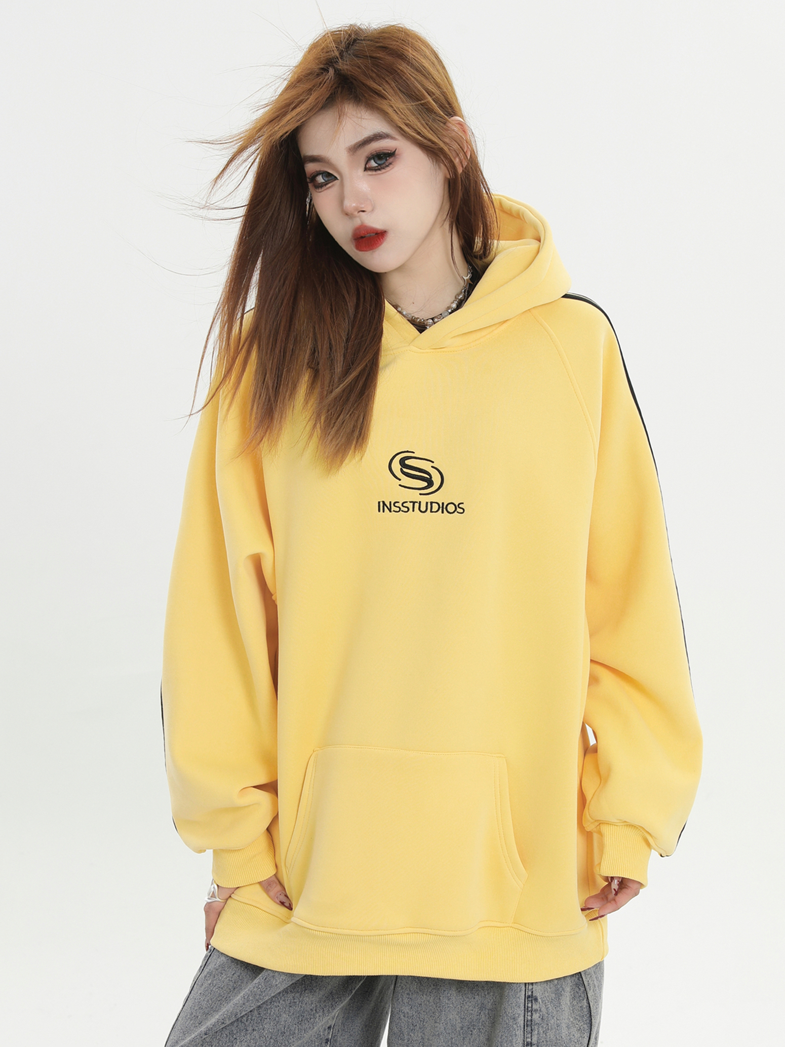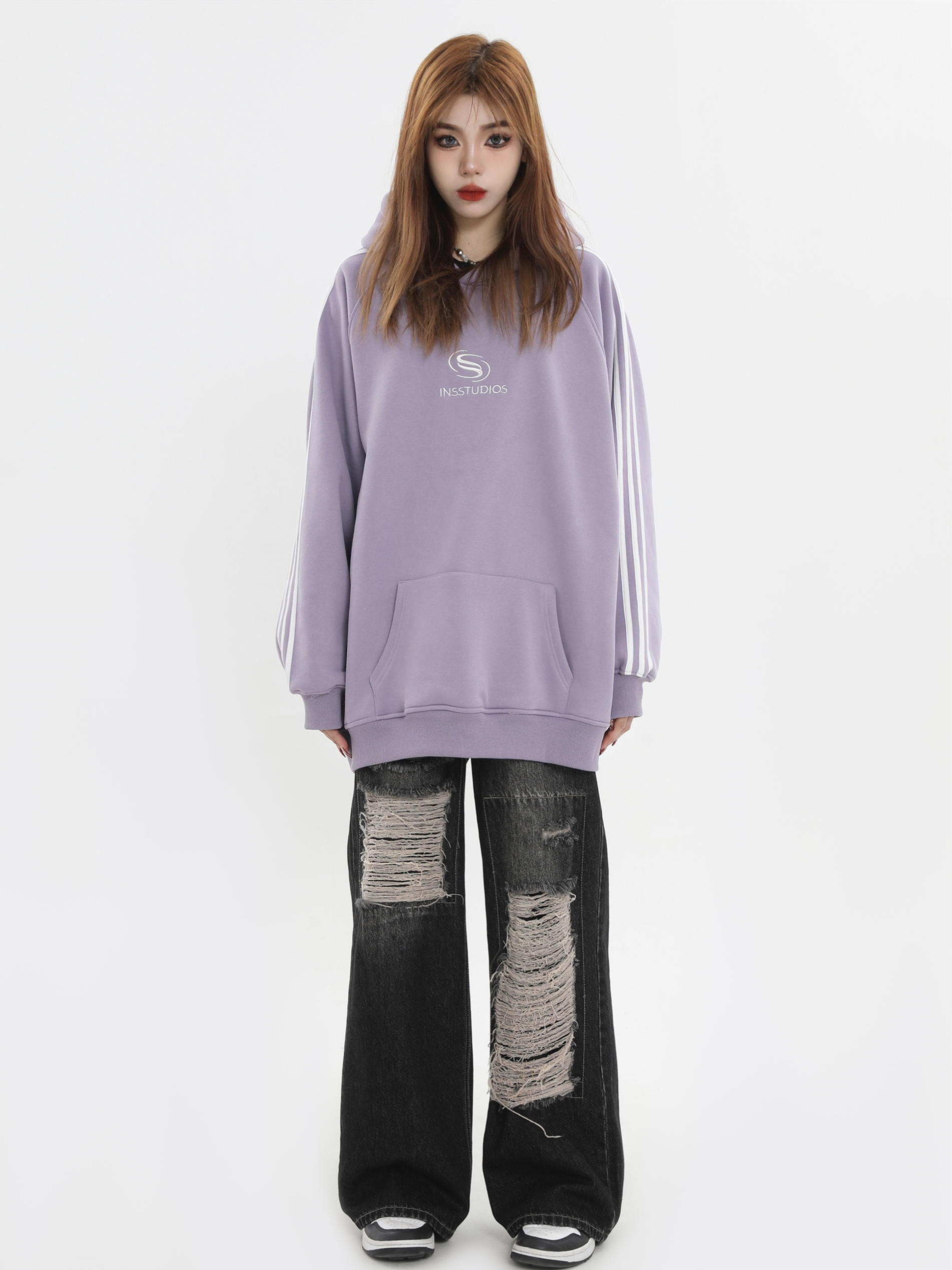 INSstudios 國潮牌情侶美式小三條杠條紋衛衣重磅加絨連帽衫