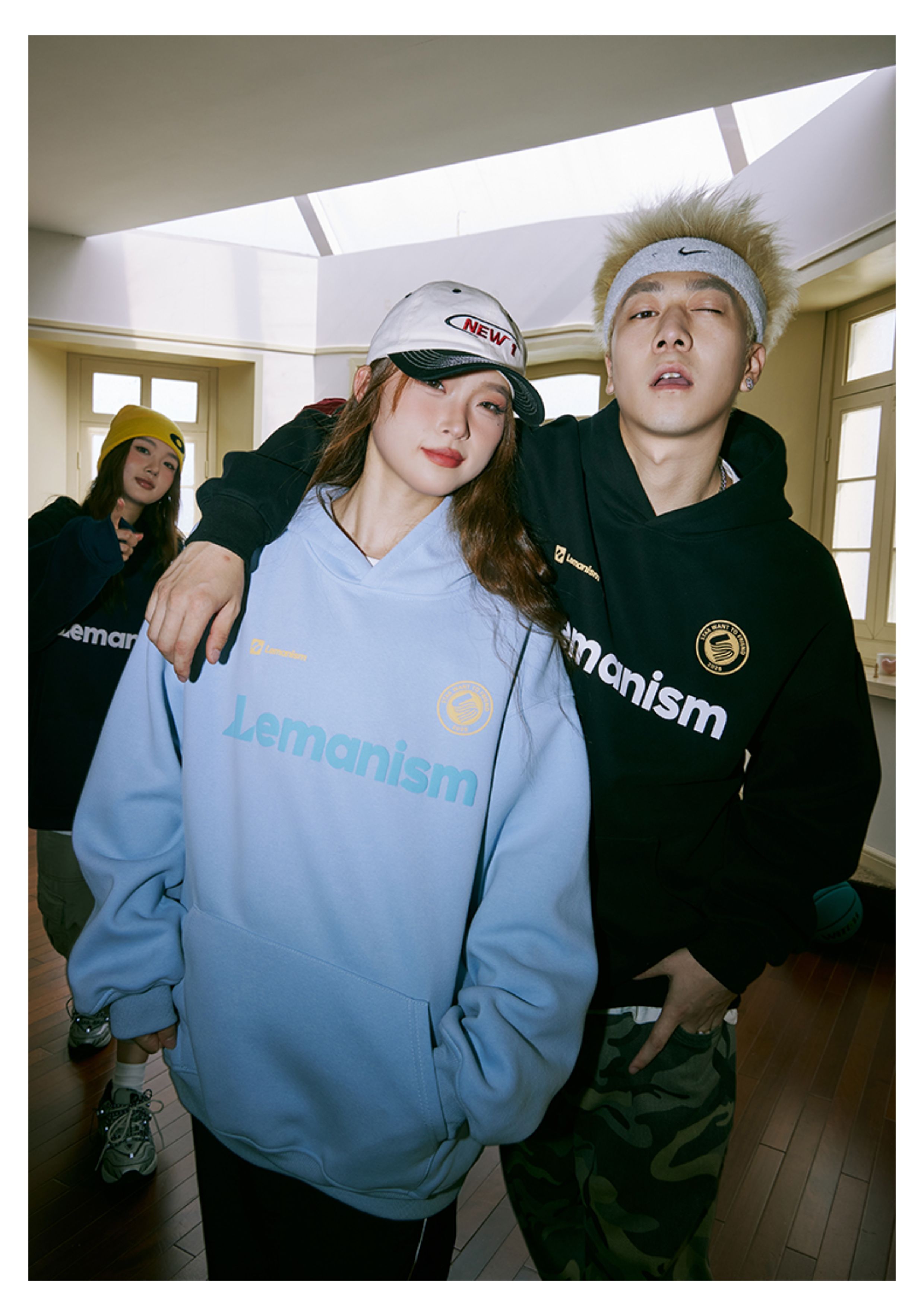 lemanism美式字母加絨連帽衛衣男春秋400g重磅情侶寬松潮牌外套女