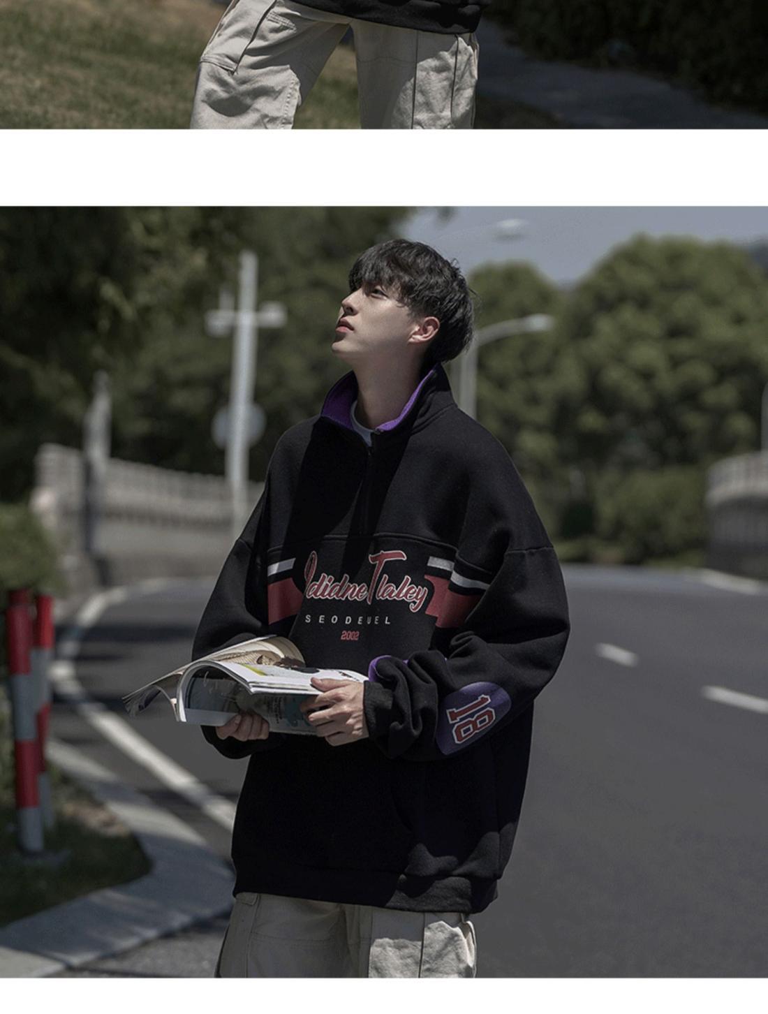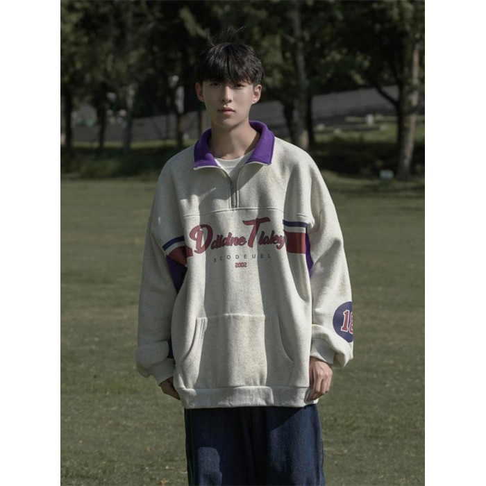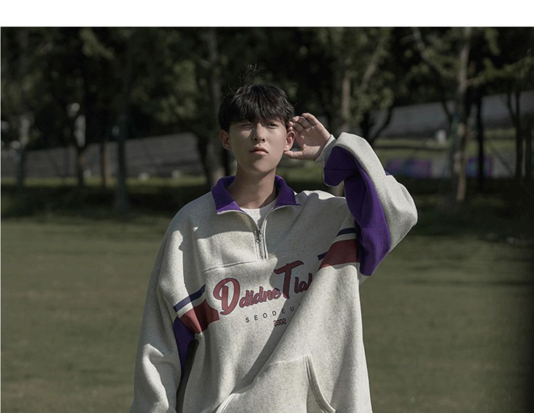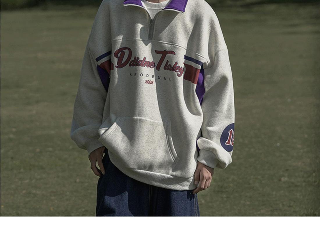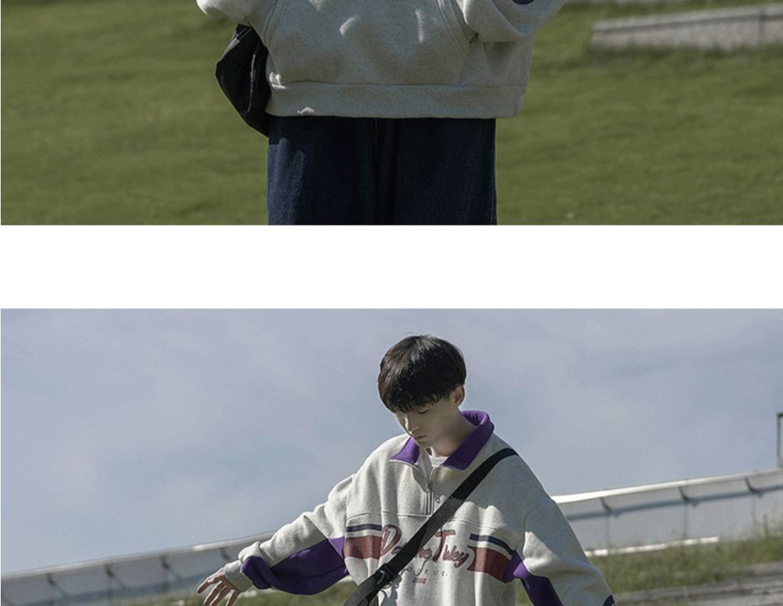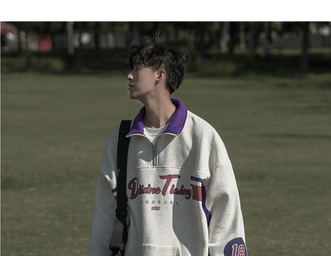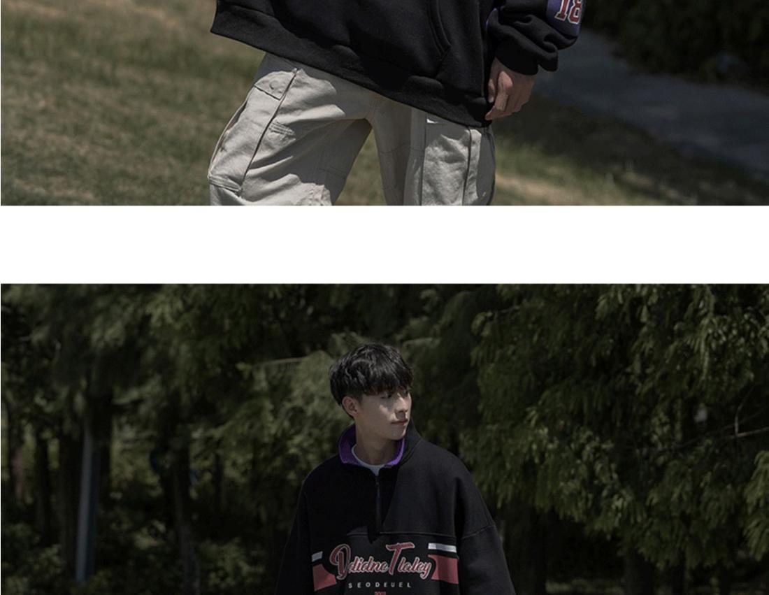 特大碼300斤Polo領衛衣男裝秋季復古寬松上衣重磅半拉鍊潮牌外套2