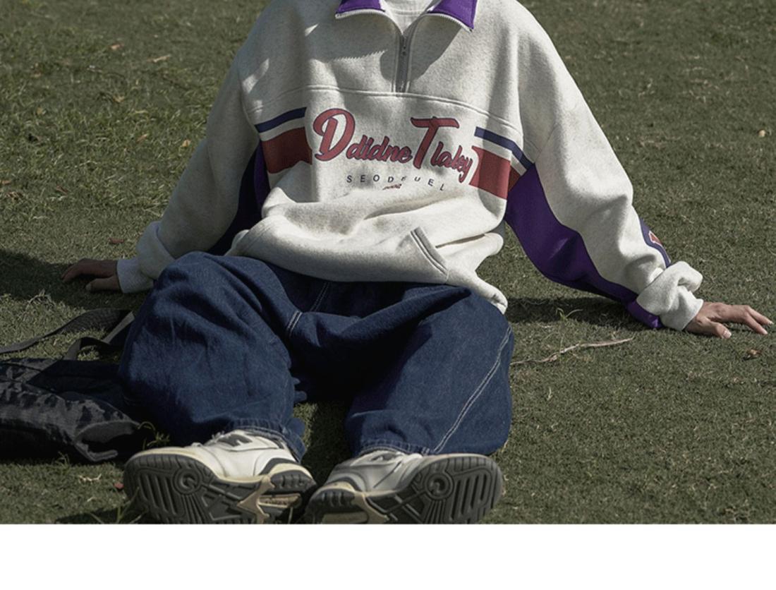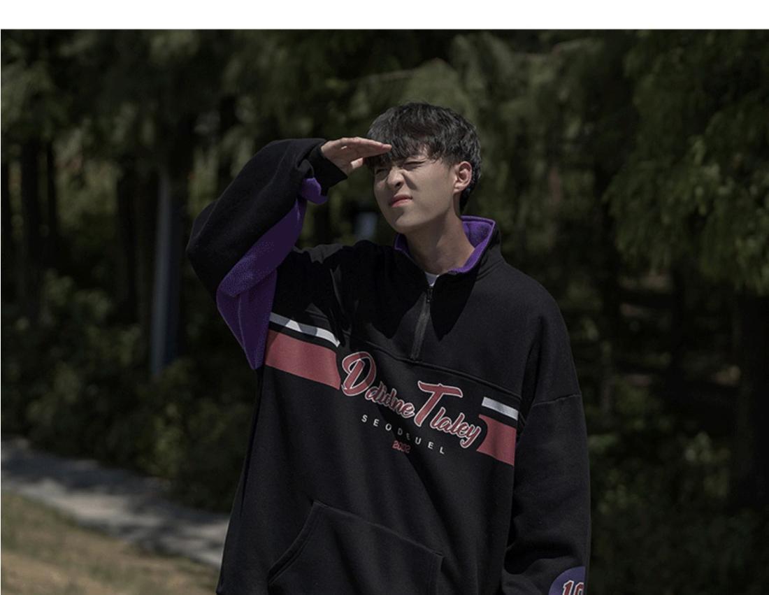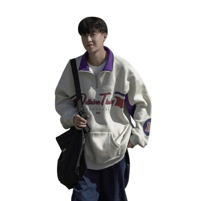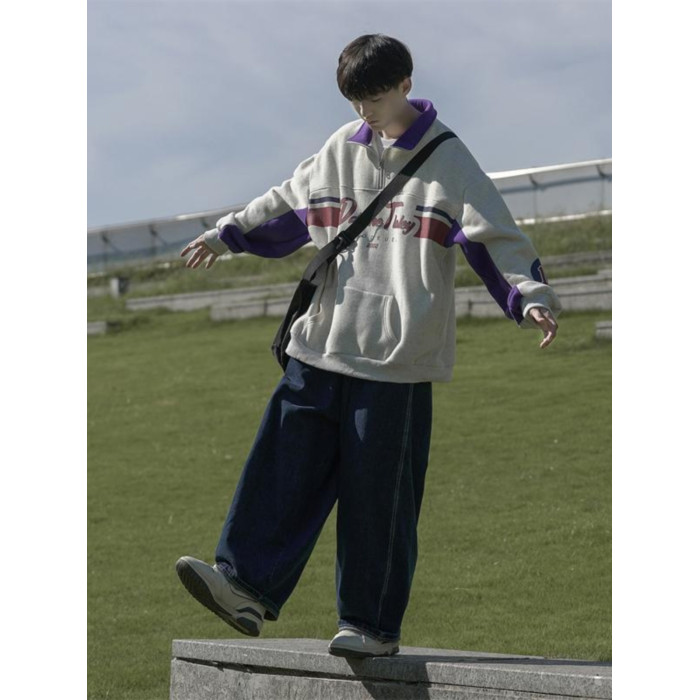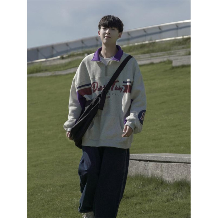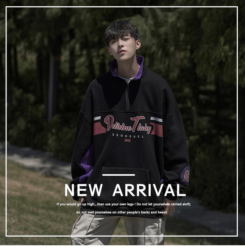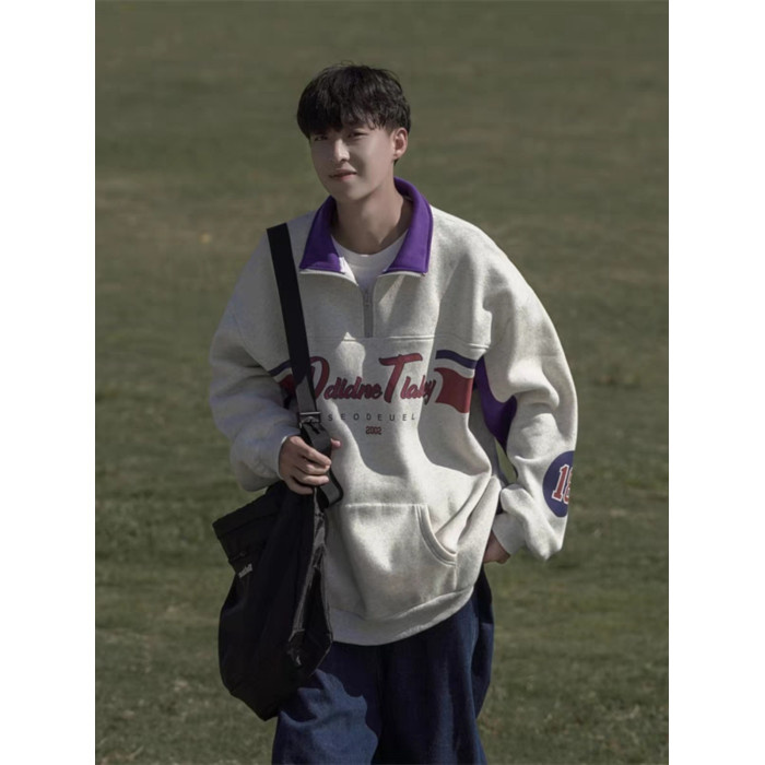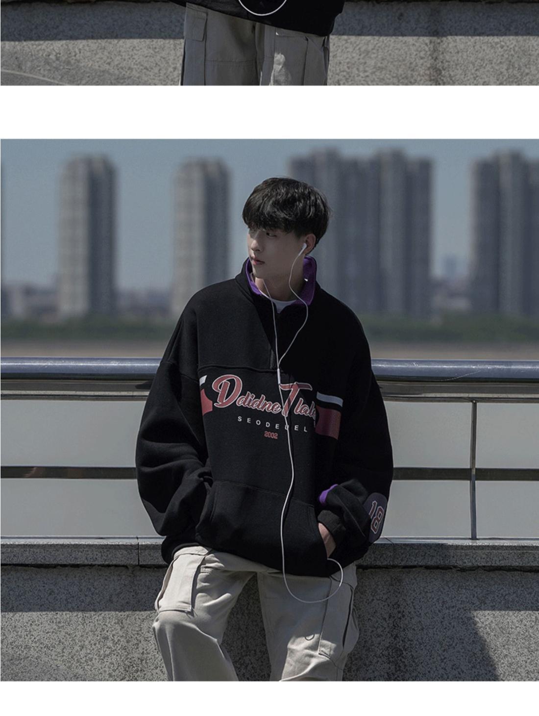 特大碼300斤Polo領衛衣男裝秋季復古寬松上衣重磅半拉鍊潮牌外套2