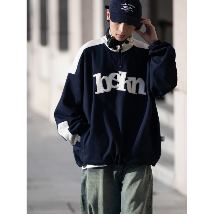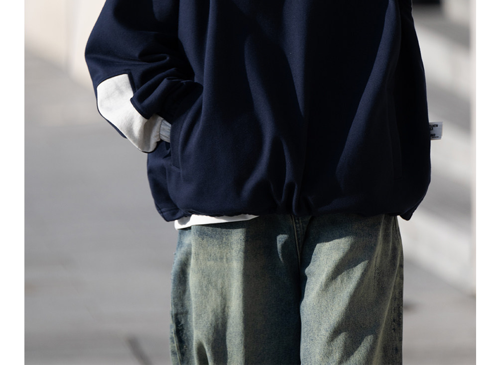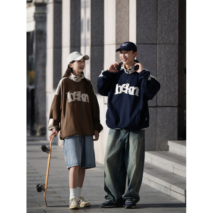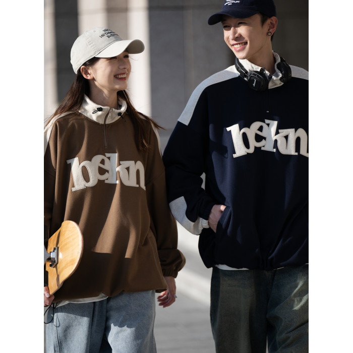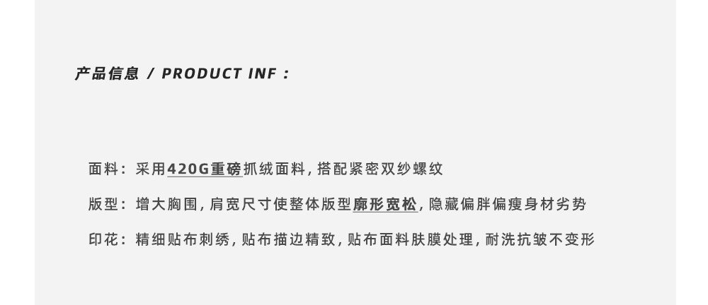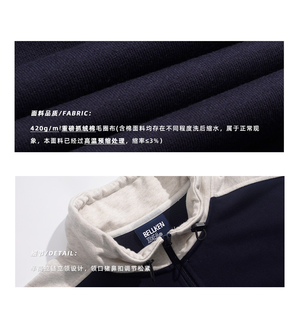 BELLKENIDEA早起工作室 440G重磅廓形簡約立領抓絨刺綉衛衣男女潮