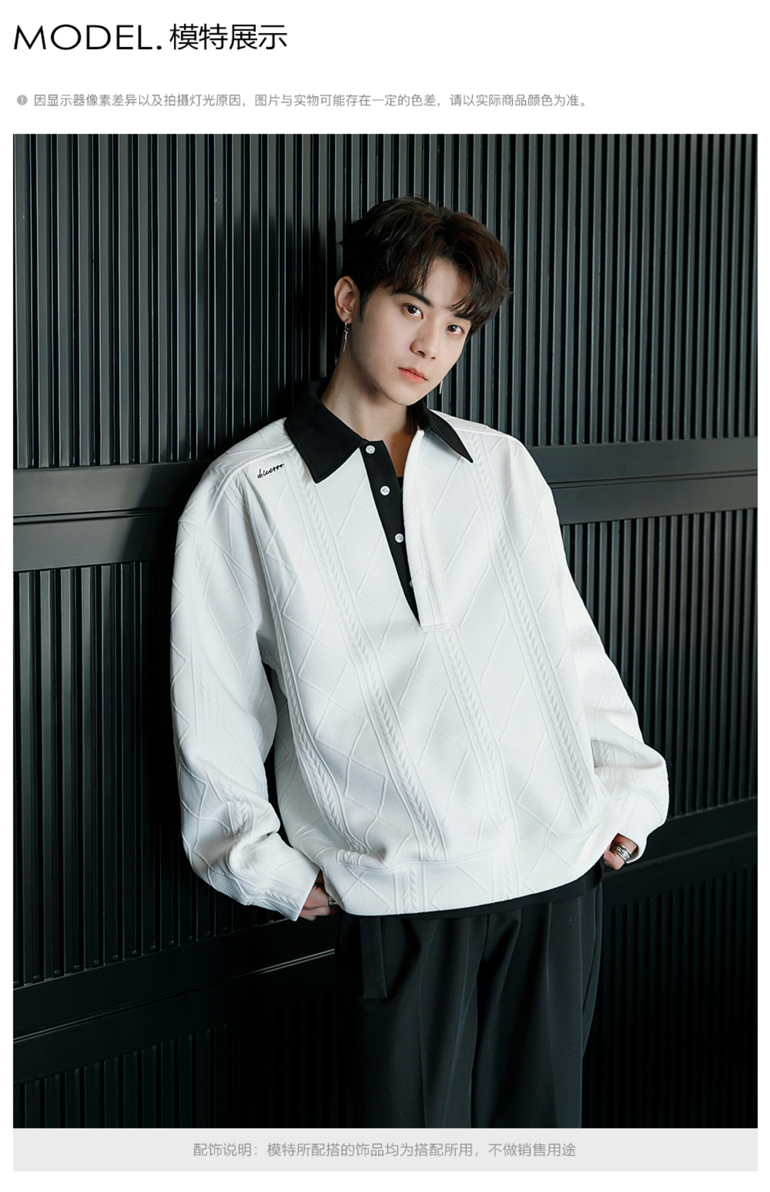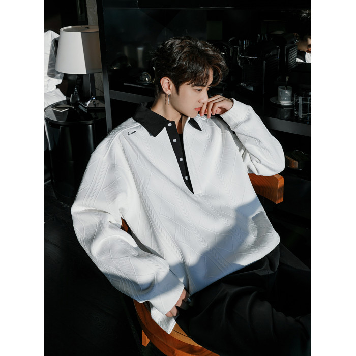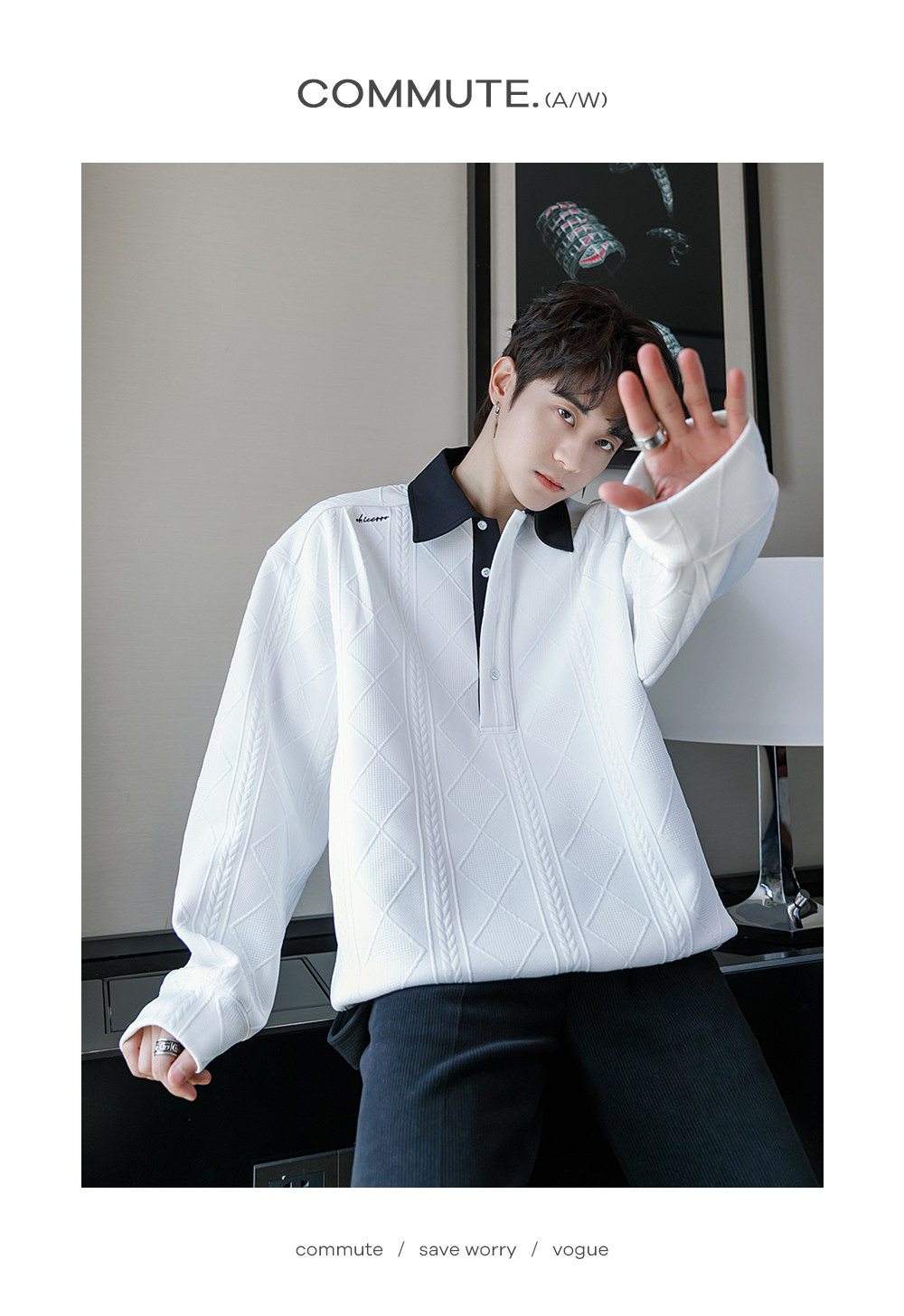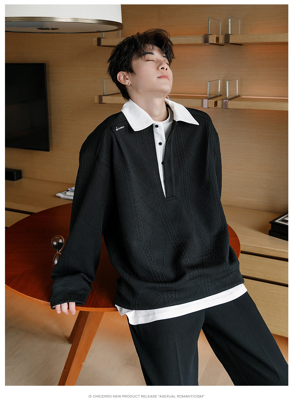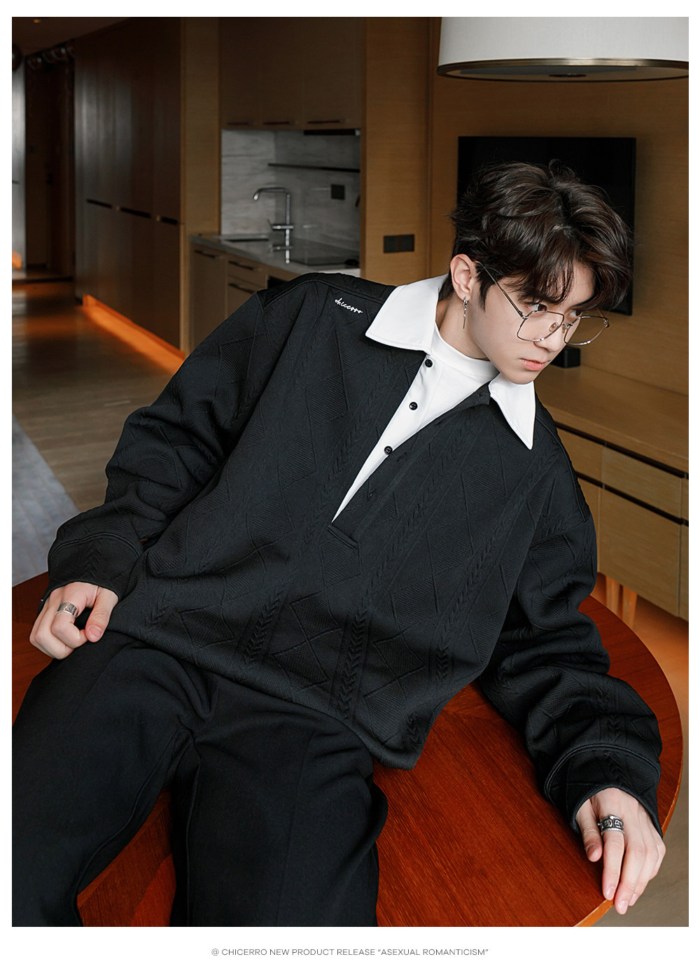 CHICERRO西西裡男裝春季重磅針織少年感polo領撞色暗紋套頭衛衣潮