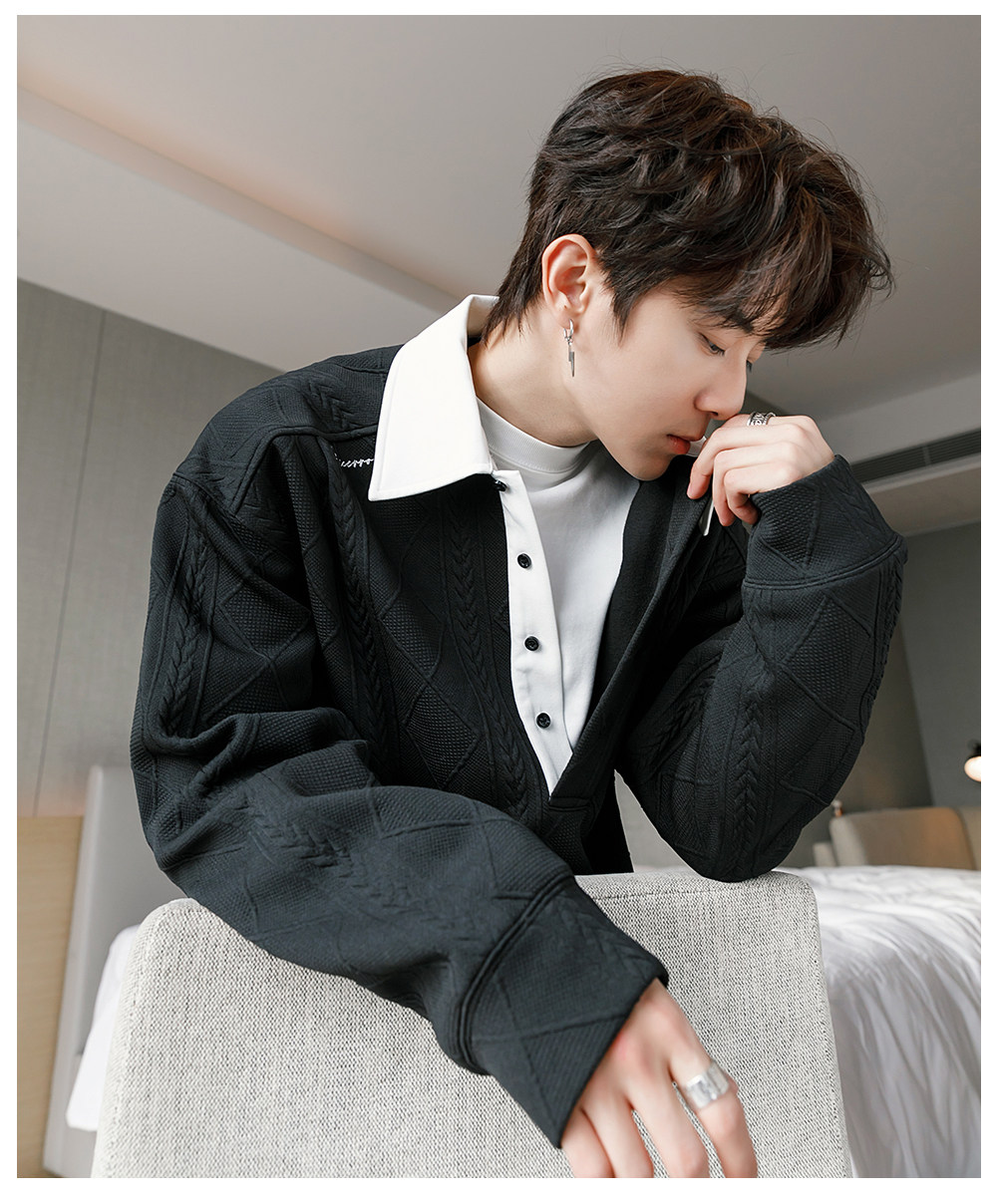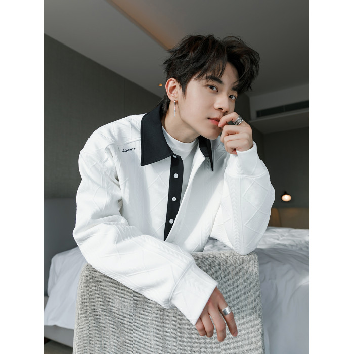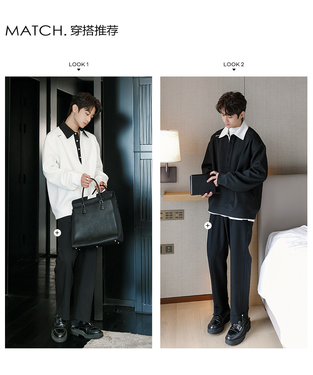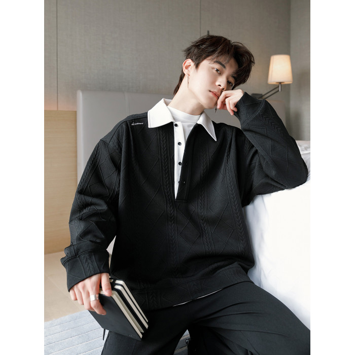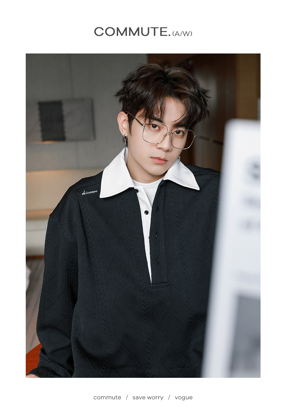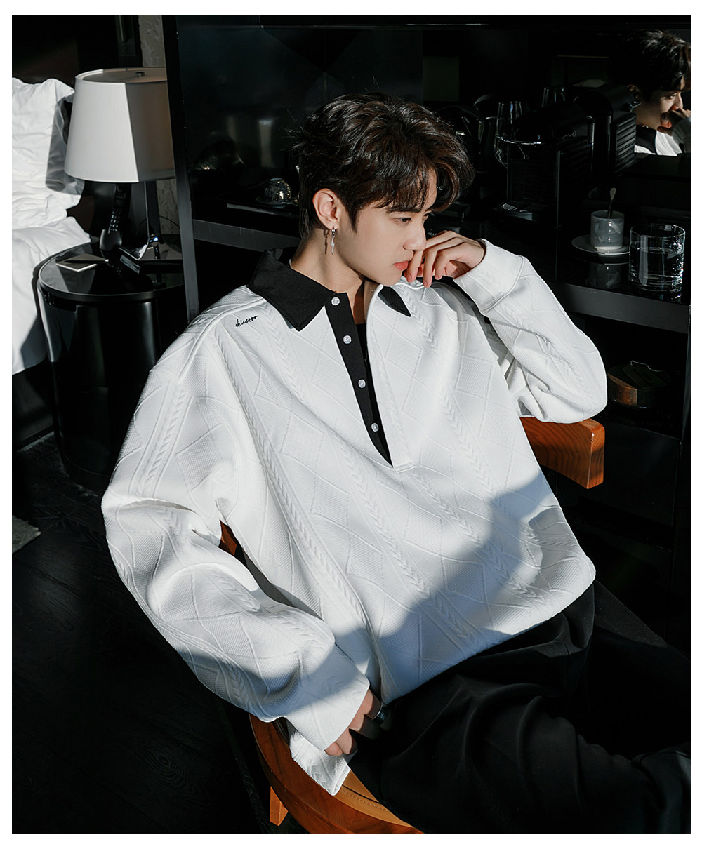 CHICERRO西西裡男裝春季重磅針織少年感polo領撞色暗紋套頭衛衣潮