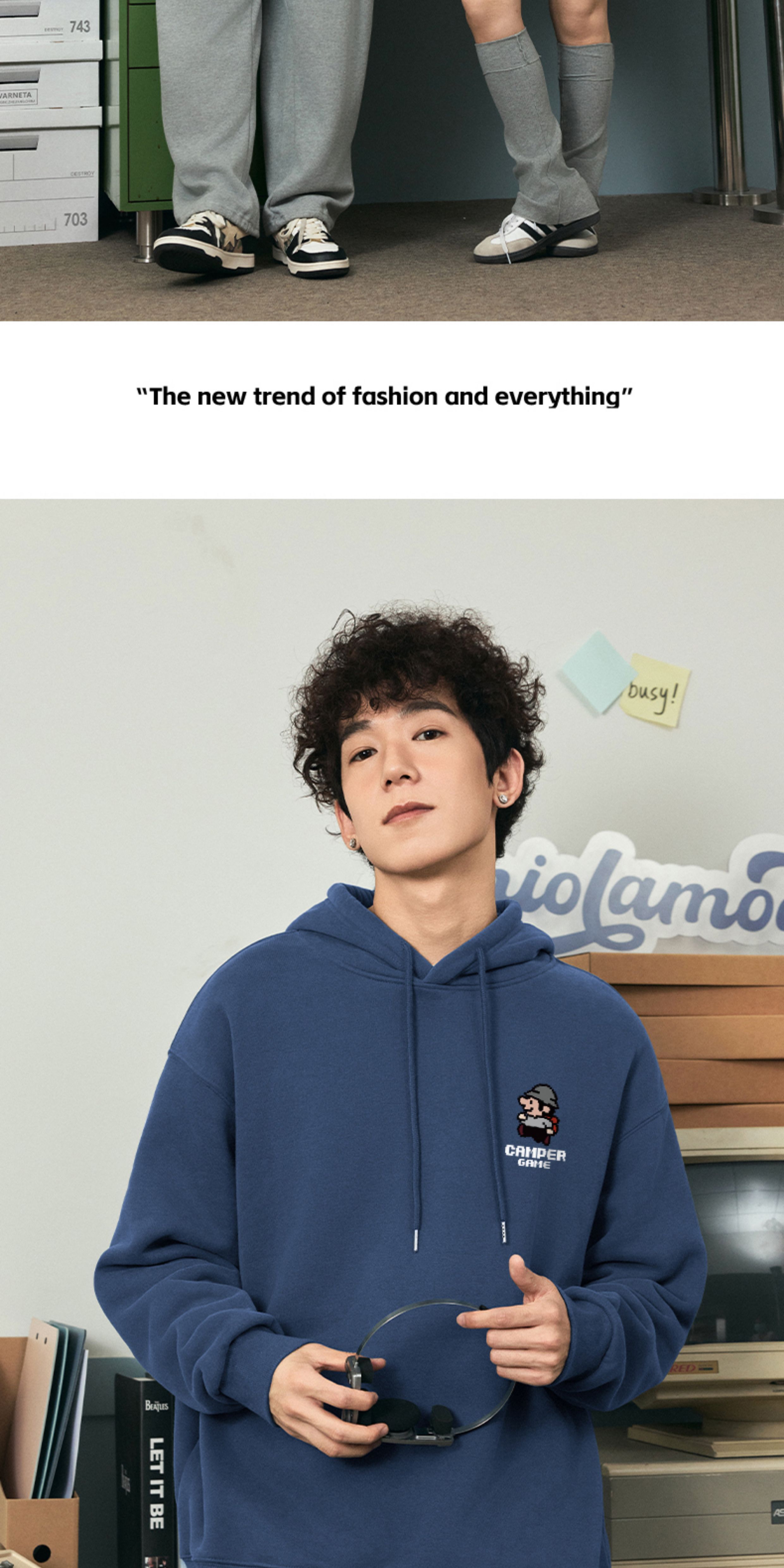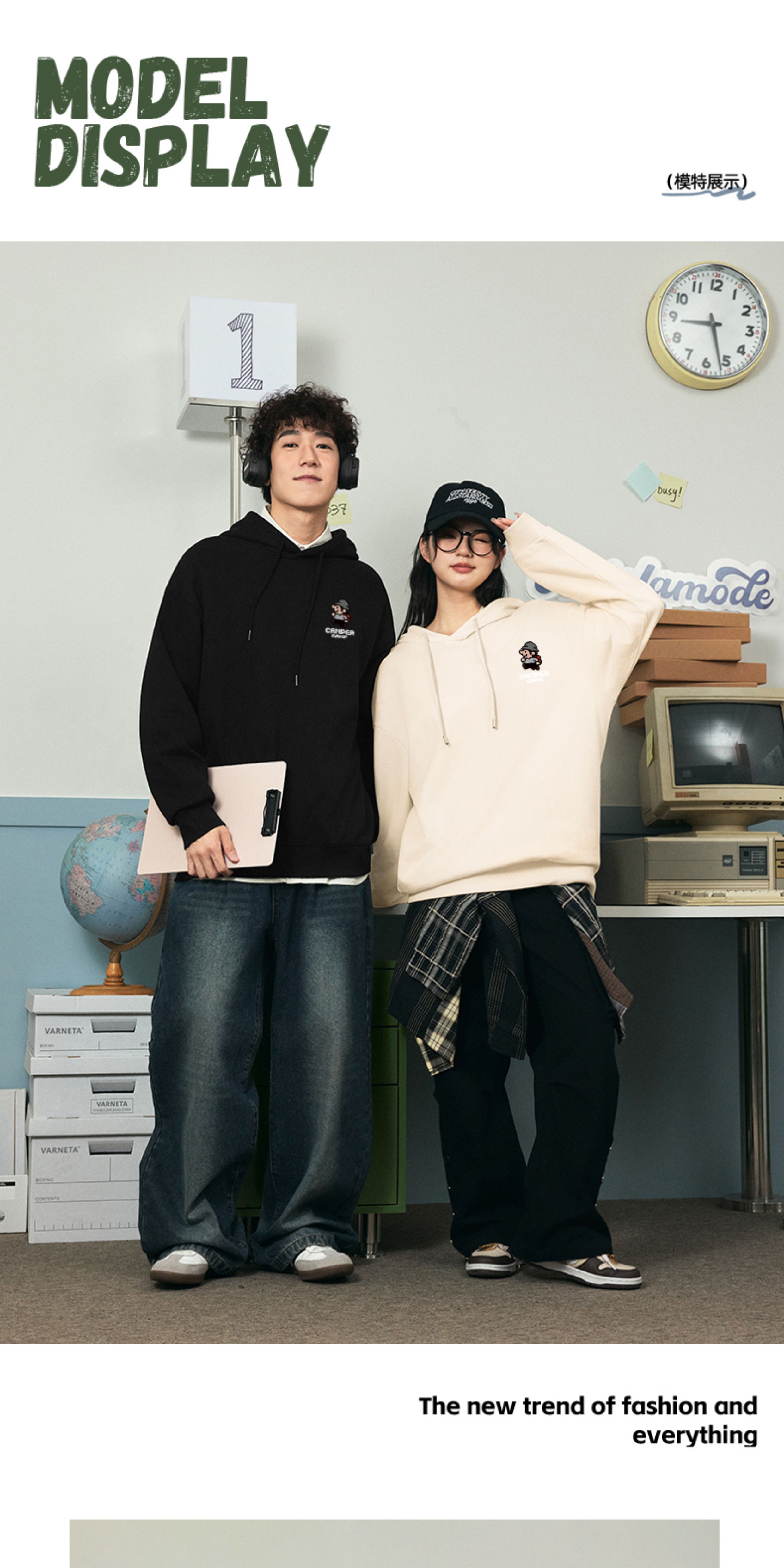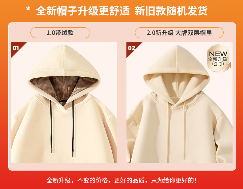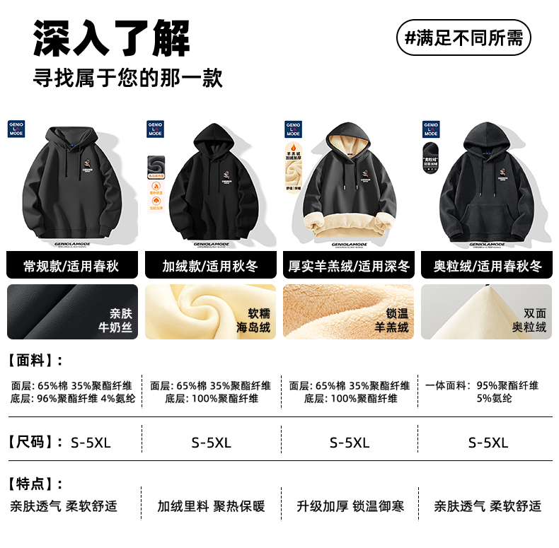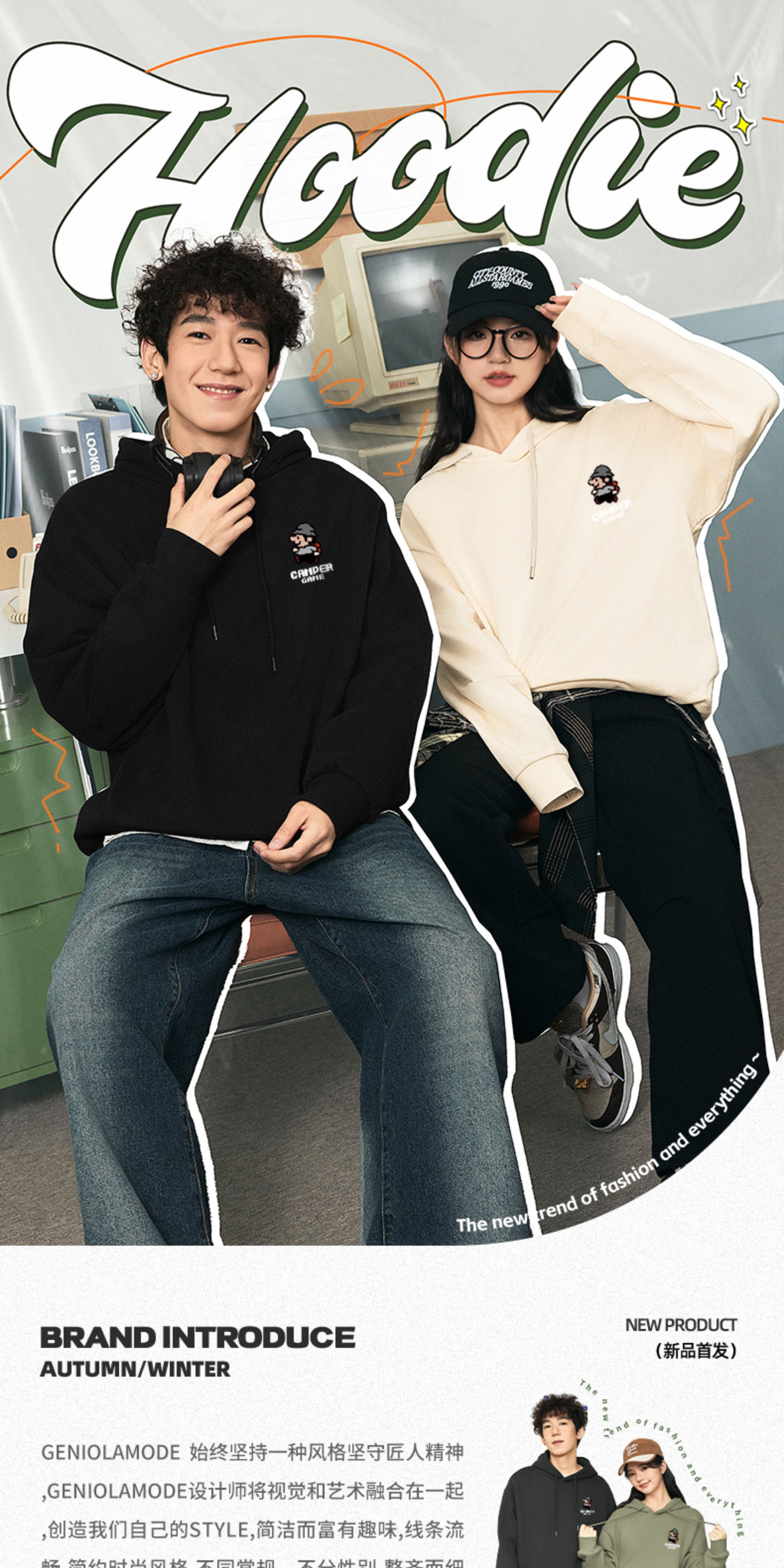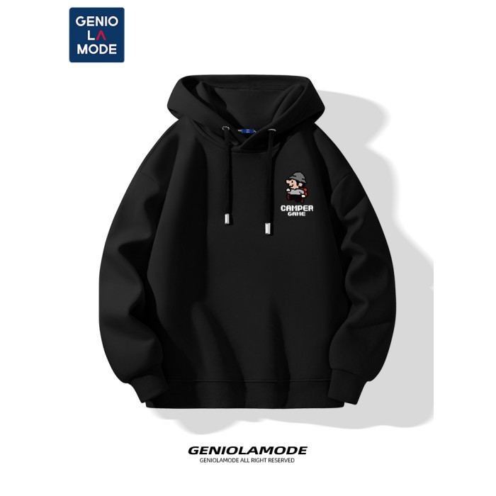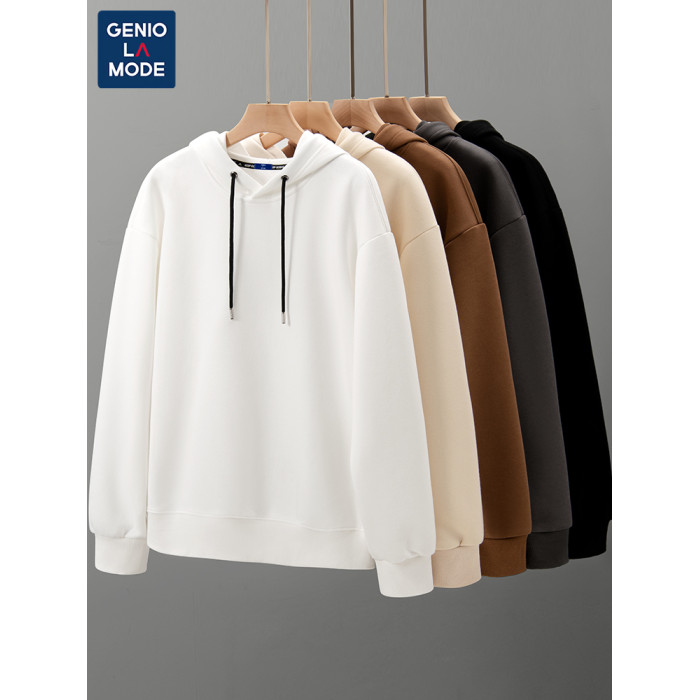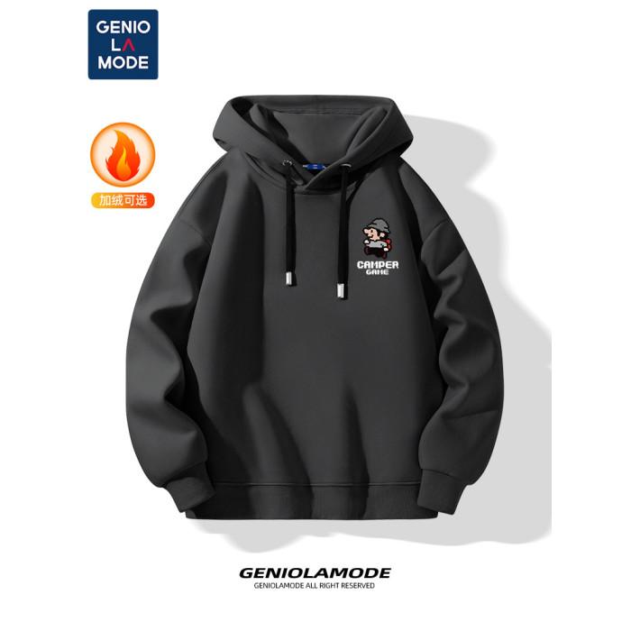GENIOLAMODE加絨連帽衛衣男冬季2025新款美式男士重磅帶帽套頭衫