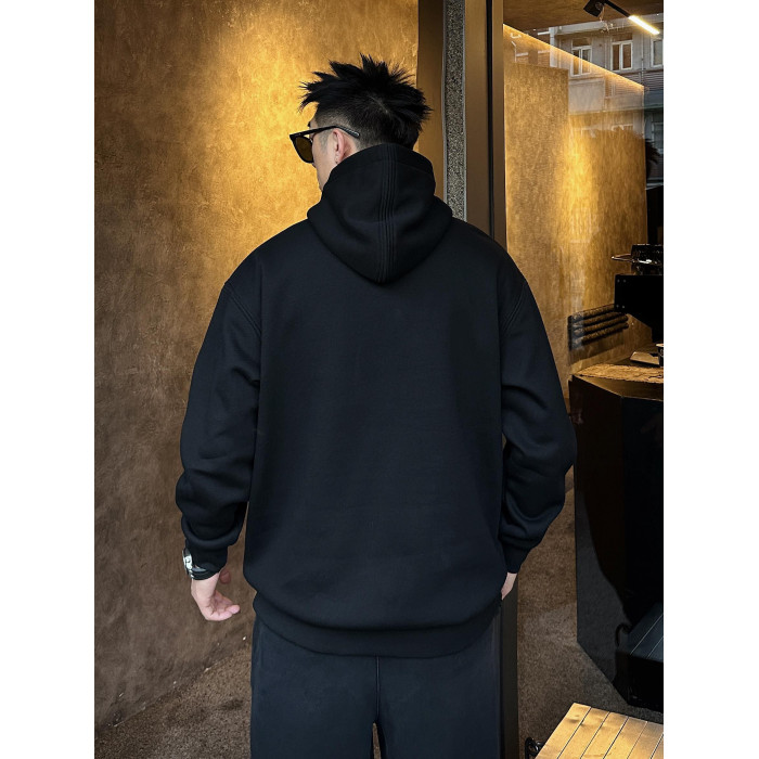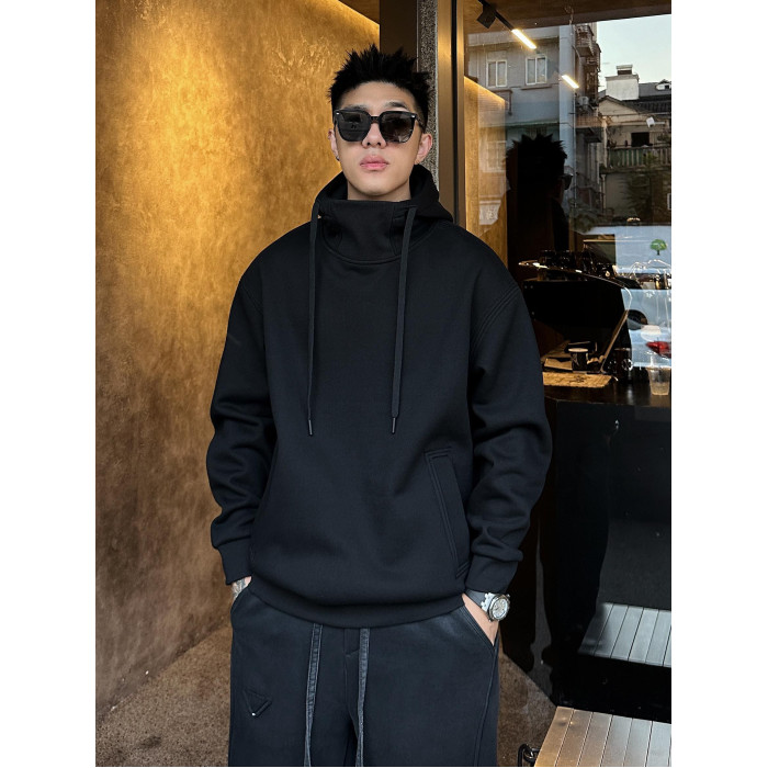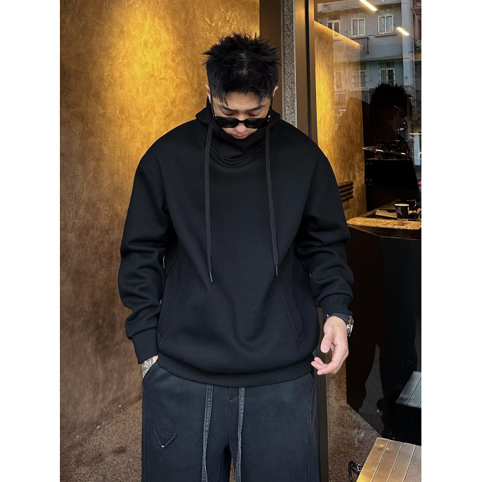 2025秋冬男士加絨衛衣美式重磅休閒連帽高領純色上衣寬松落肩加厚