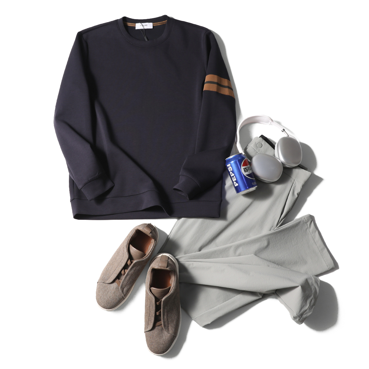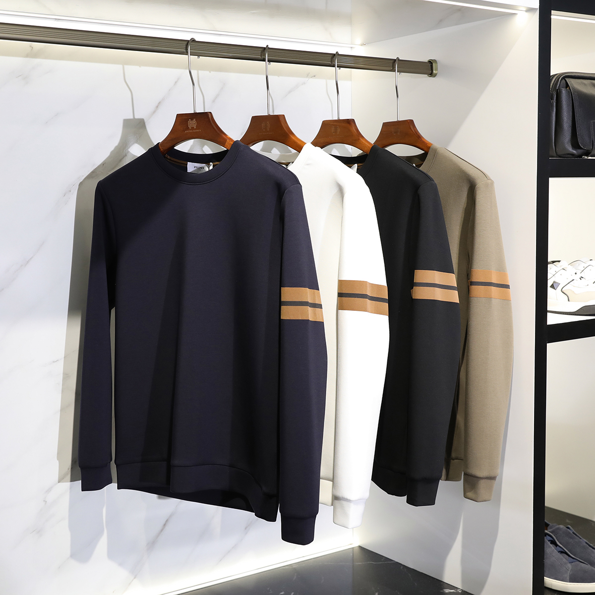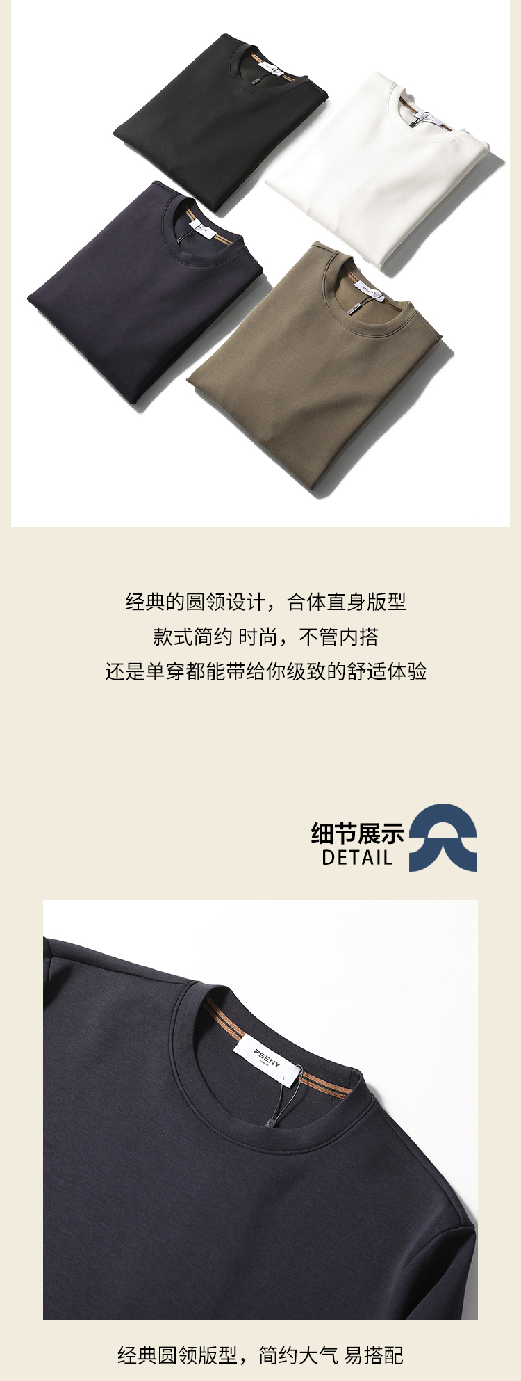 意式奢華2025春秋季新款戶外休閒空氣層圓領衛衣男寬松打底衫9250