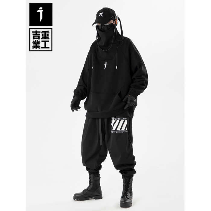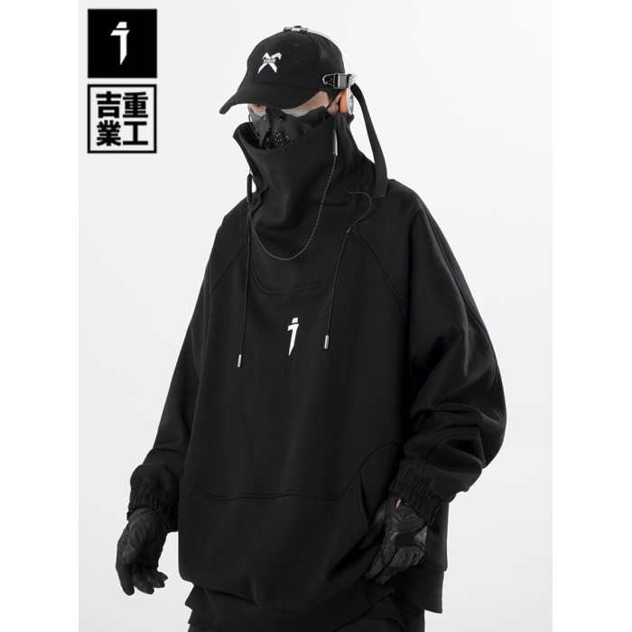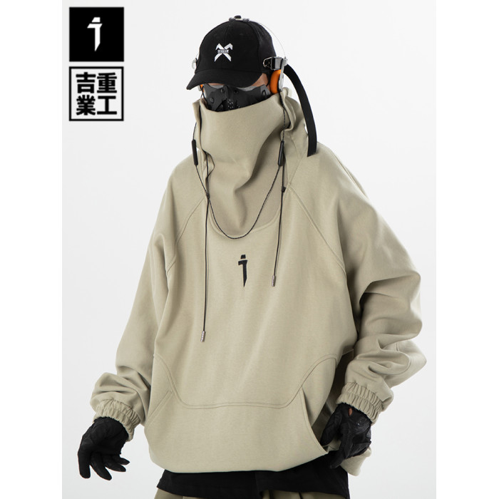 吉業重工秋季新款嘻哈潮牌機能高領機能衛衣男女寬松休閒套頭外套