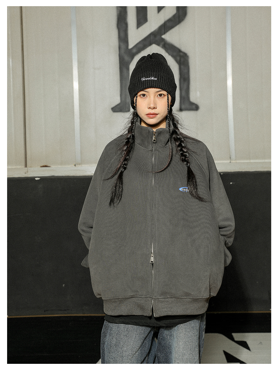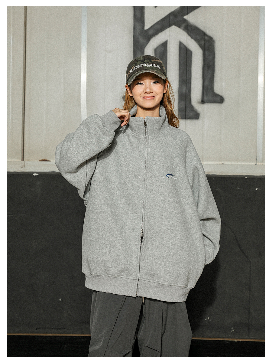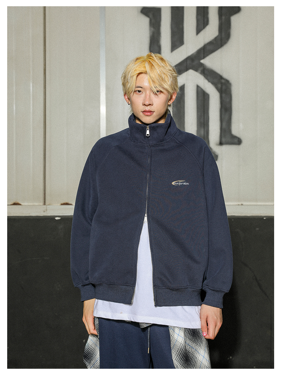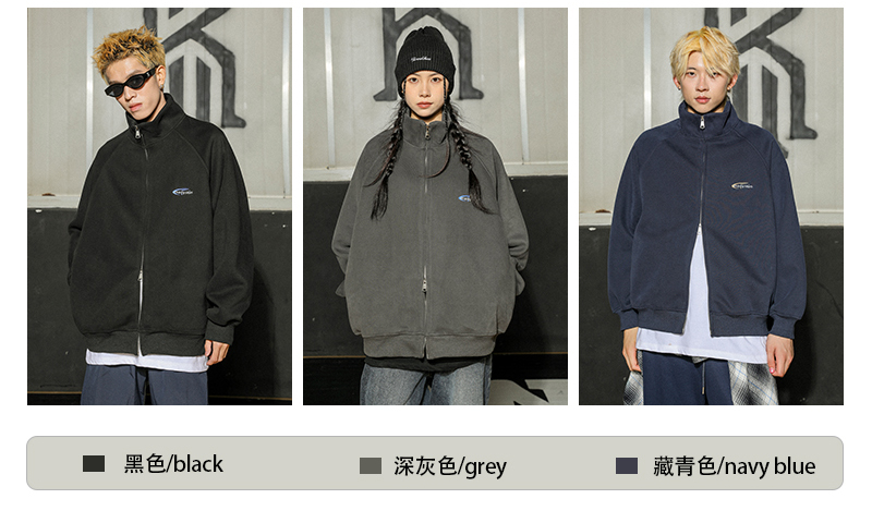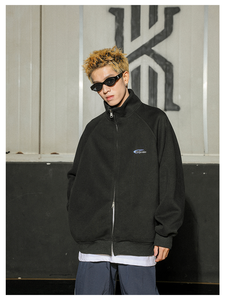 MANYSTON 美式高街拉鍊開衫衛衣春秋季潮牌400g重磅立領男生外套