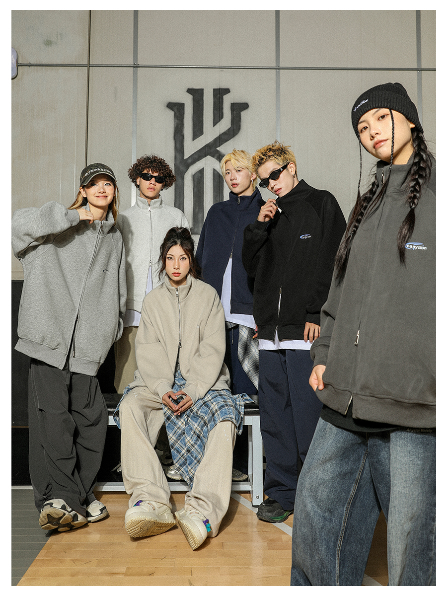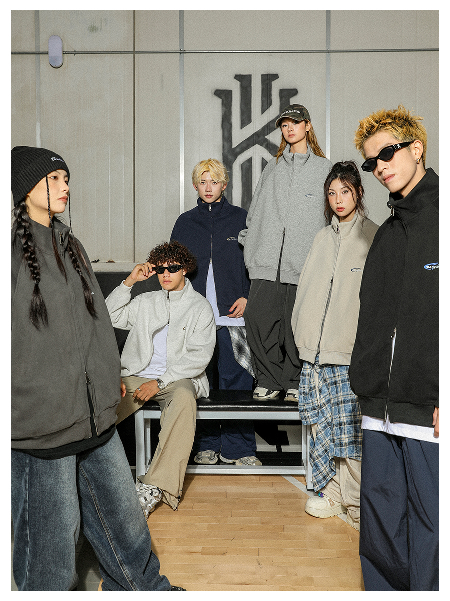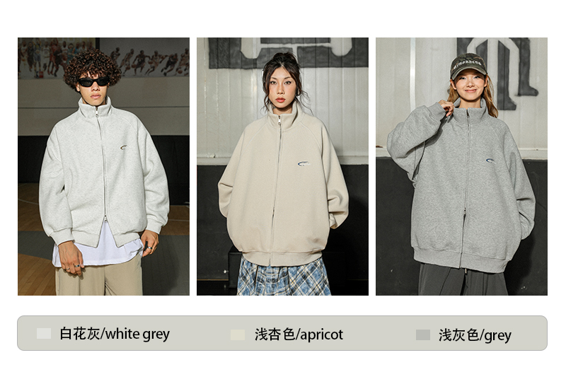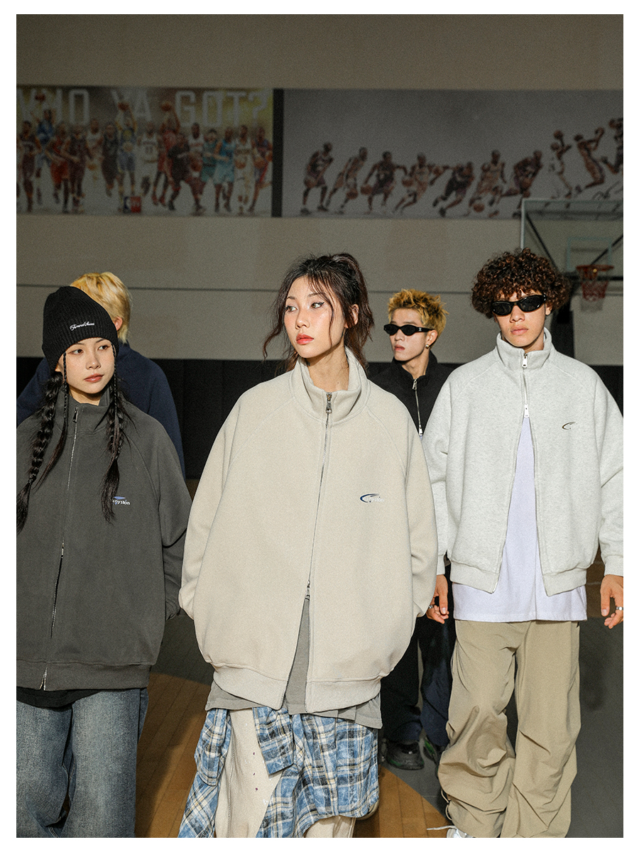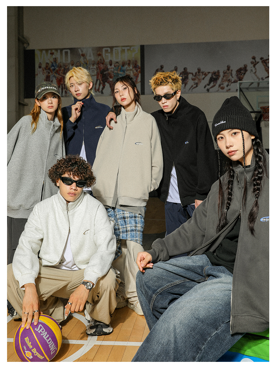 MANYSTON 美式高街拉鍊開衫衛衣春秋季潮牌400g重磅立領男生外套