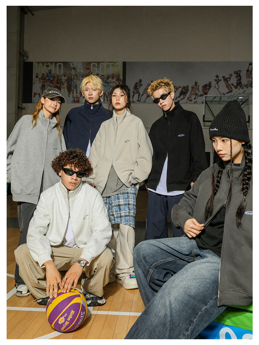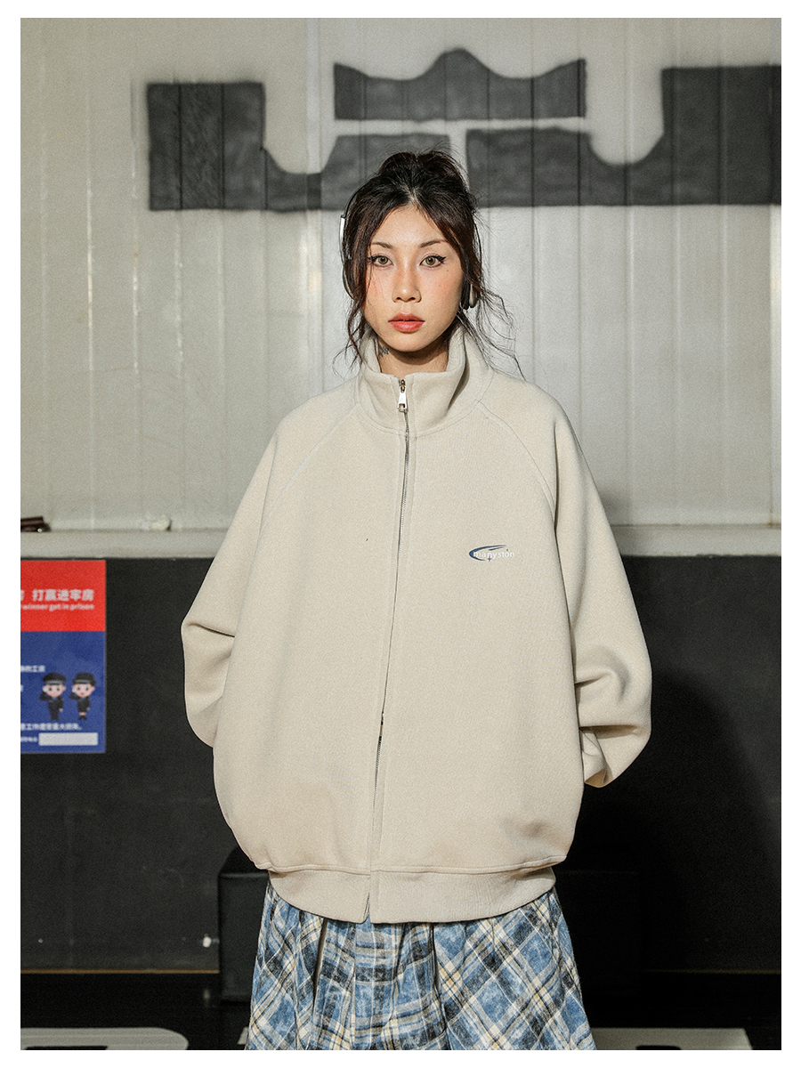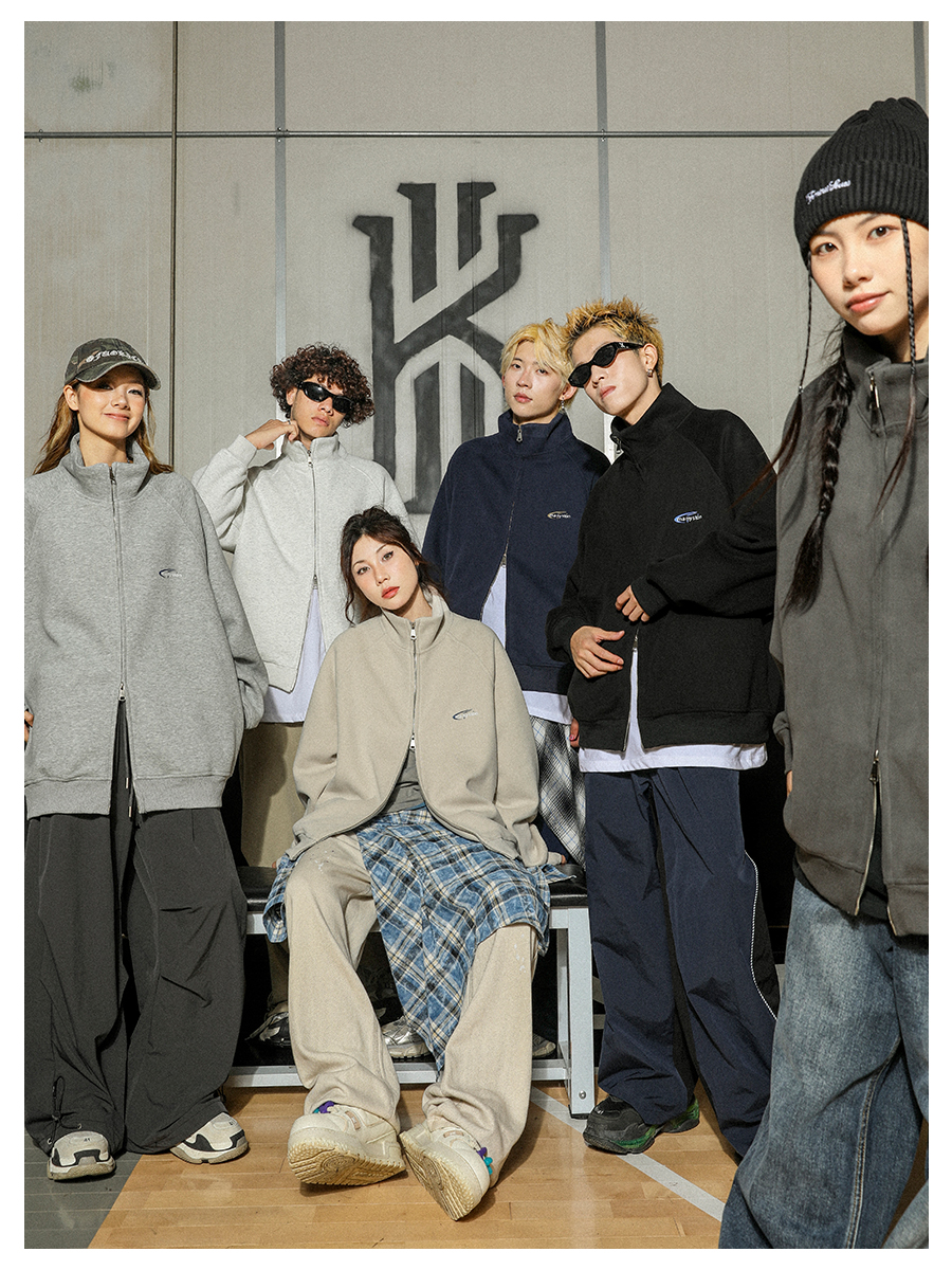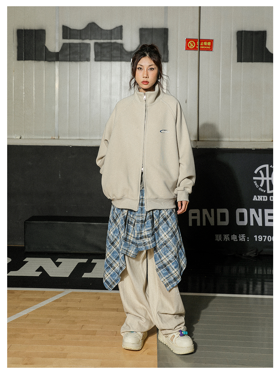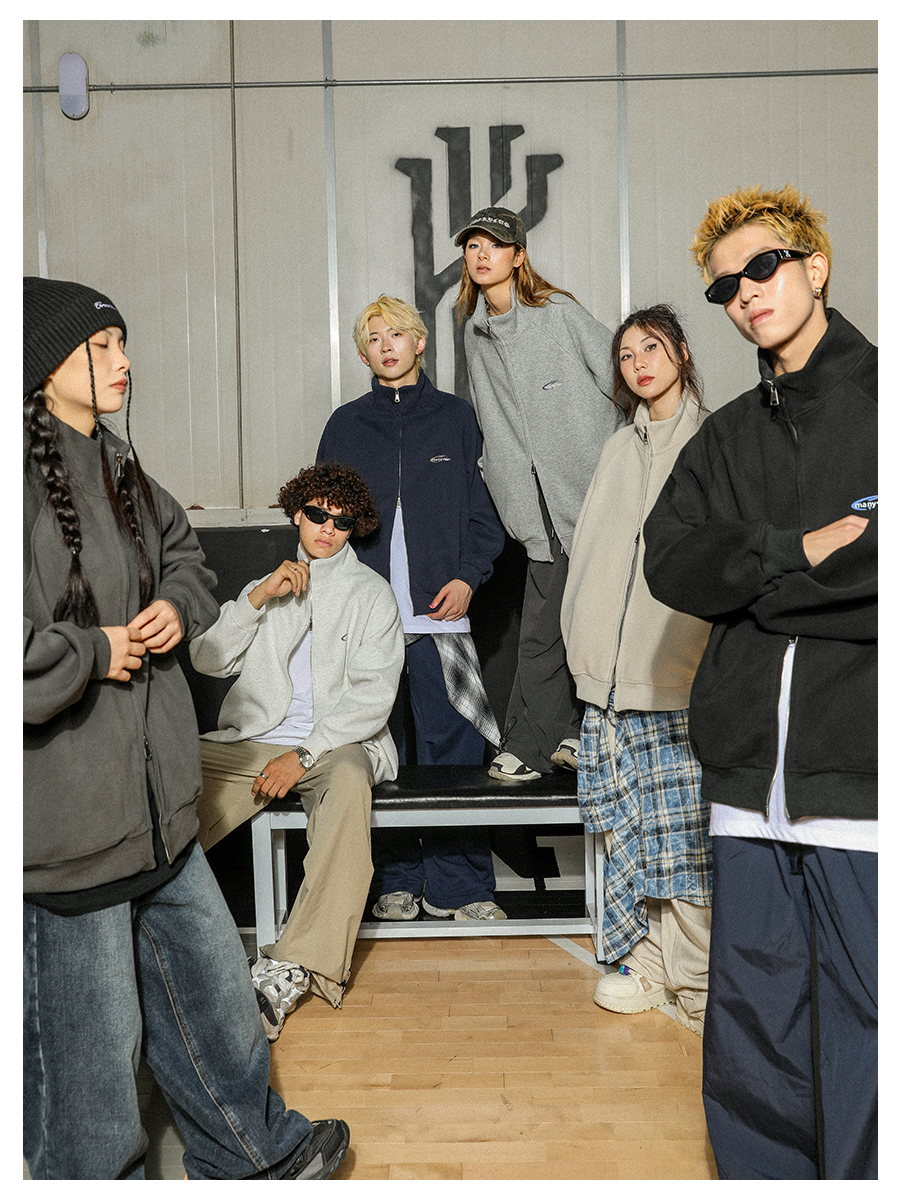 MANYSTON 美式高街拉鍊開衫衛衣春秋季潮牌400g重磅立領男生外套
