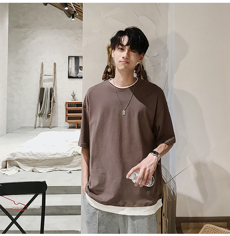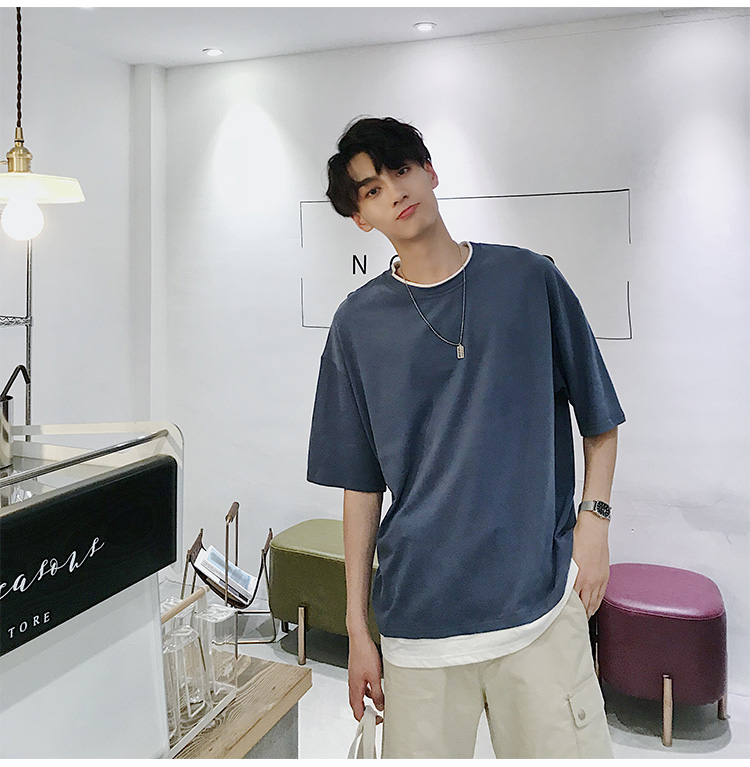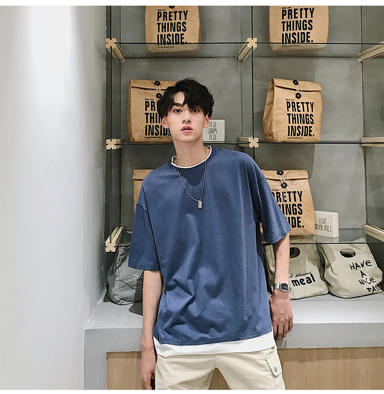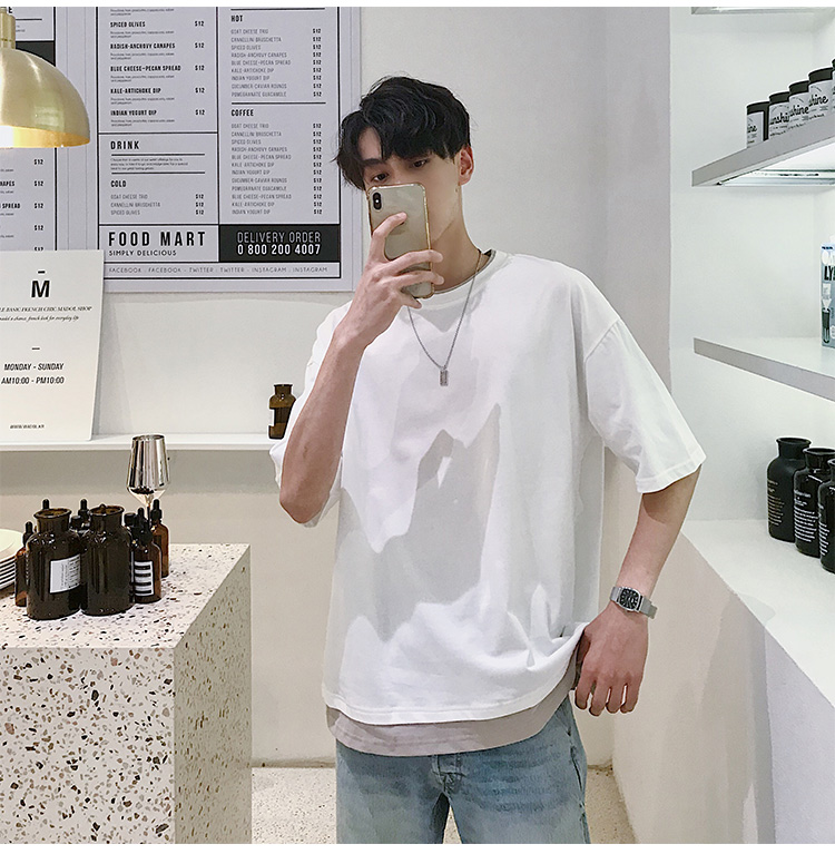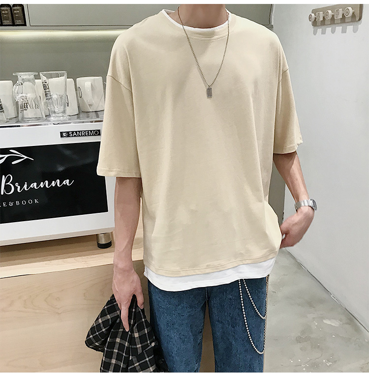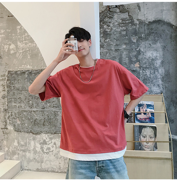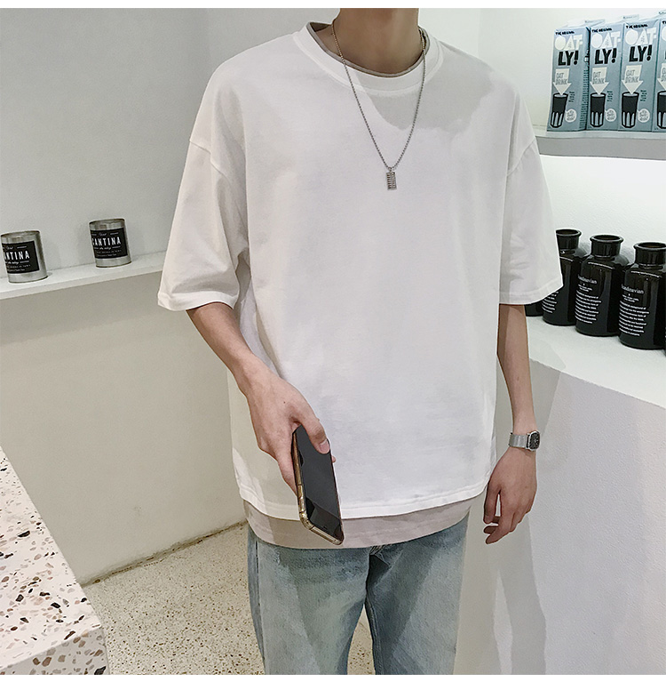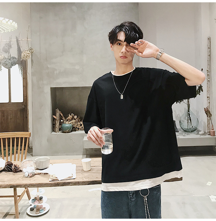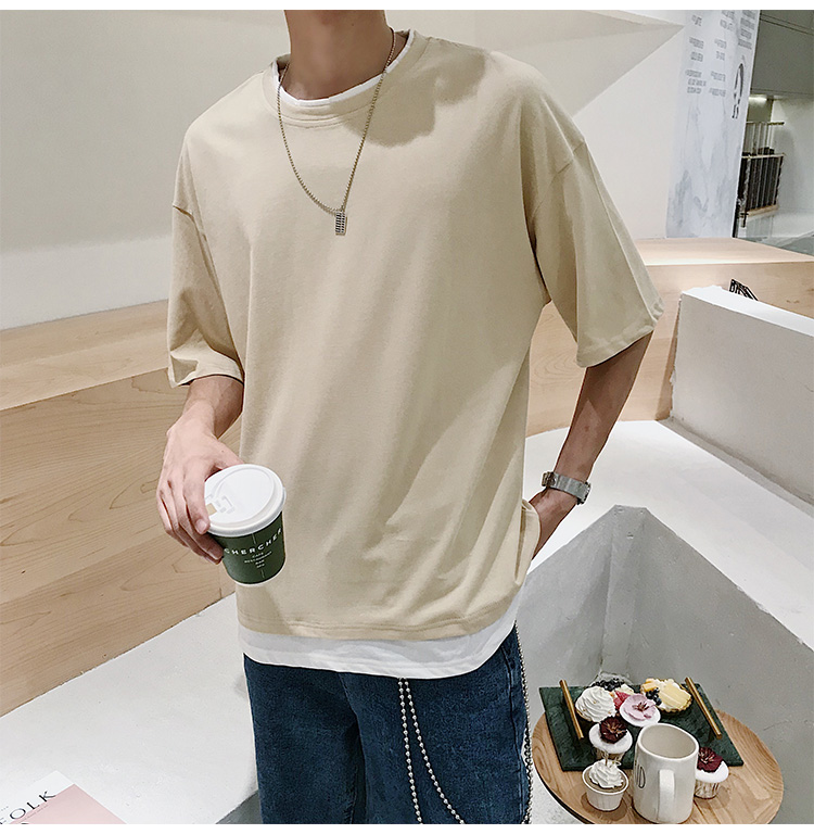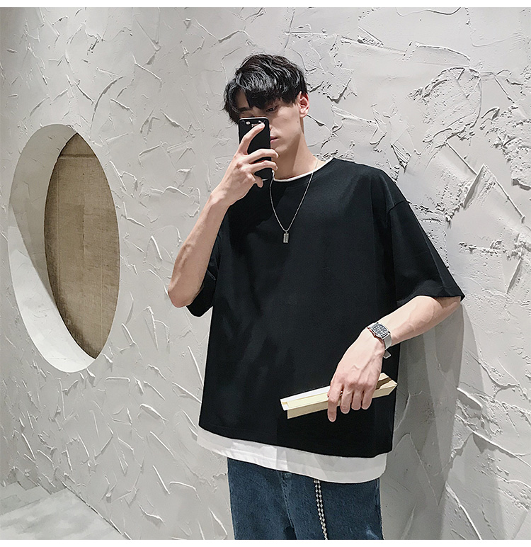 春夏季假兩件衛衣男短袖套頭港風bf寬松韓版潮流學生ins潮百搭T恤